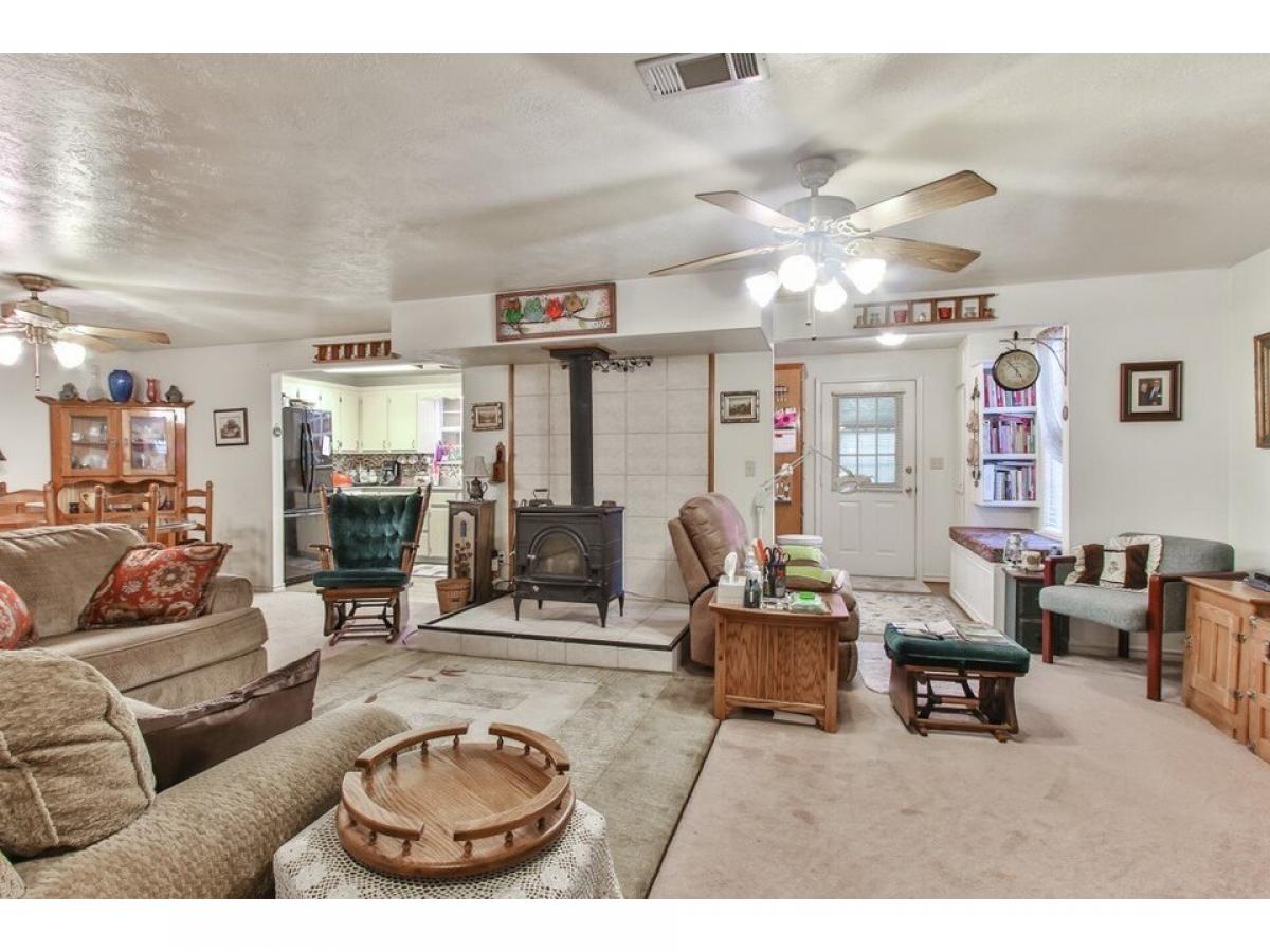 Unrestricted 27+ acres featuring a charming 2-bedroom 2-bathroom Ranch style home. Fully handicap accessible with an open concept floor plan and a unique antique furnace in the living room. Updated kitchen with granite countertops, custom backsplash and ample cabinet space! Split floor plan bedrooms, screened in back patio with ample storage space, front porch with fans and an expansive carport for additional storage and parking. Guest quarters off carport with wall of windows! Metal roof on both the home and the carport!