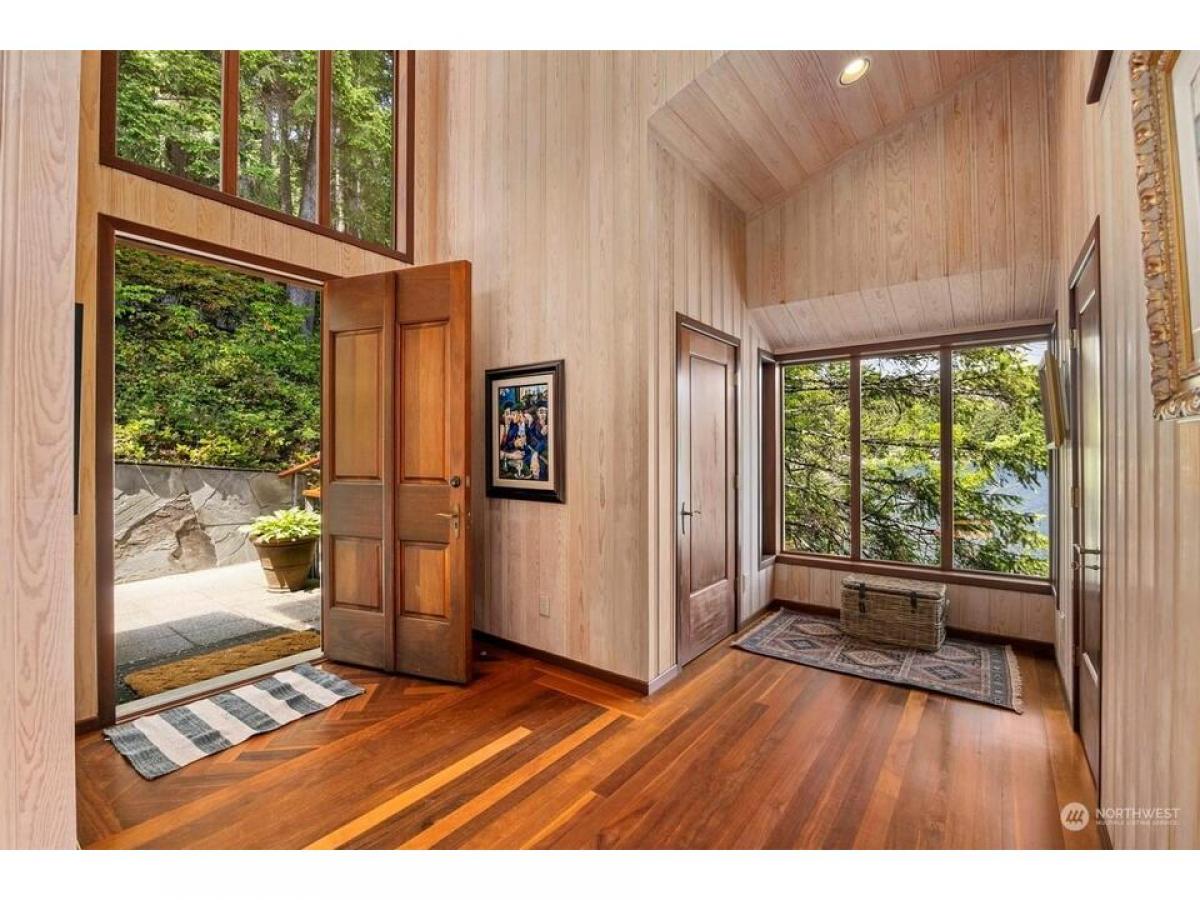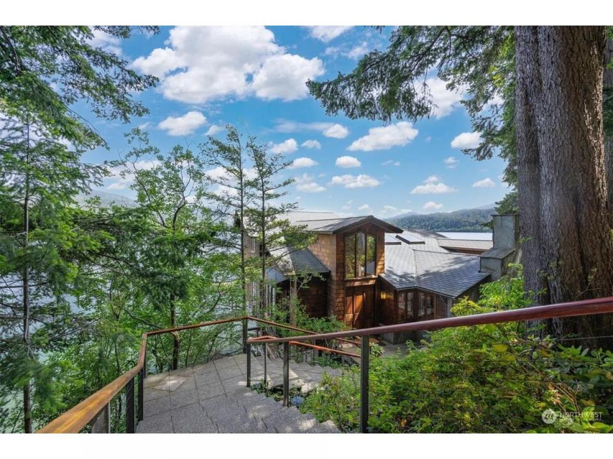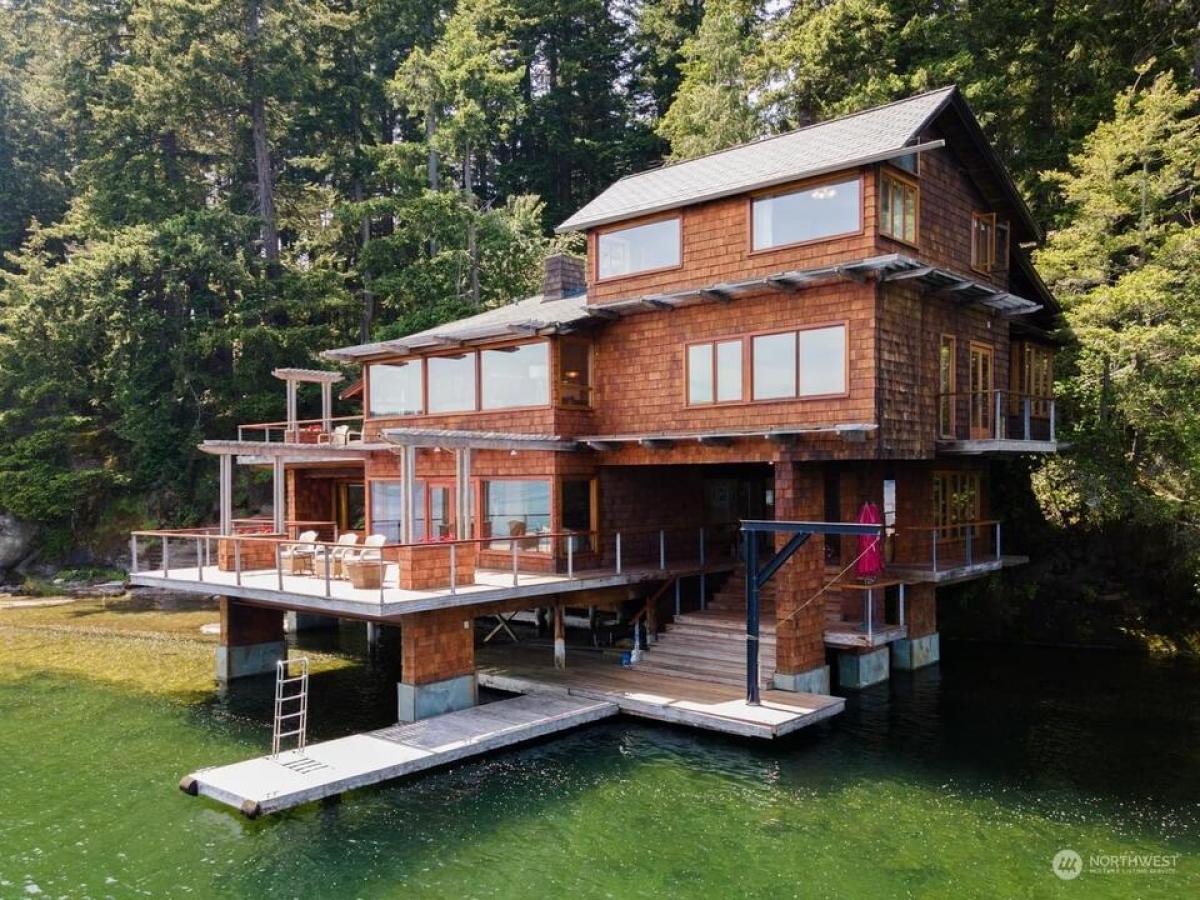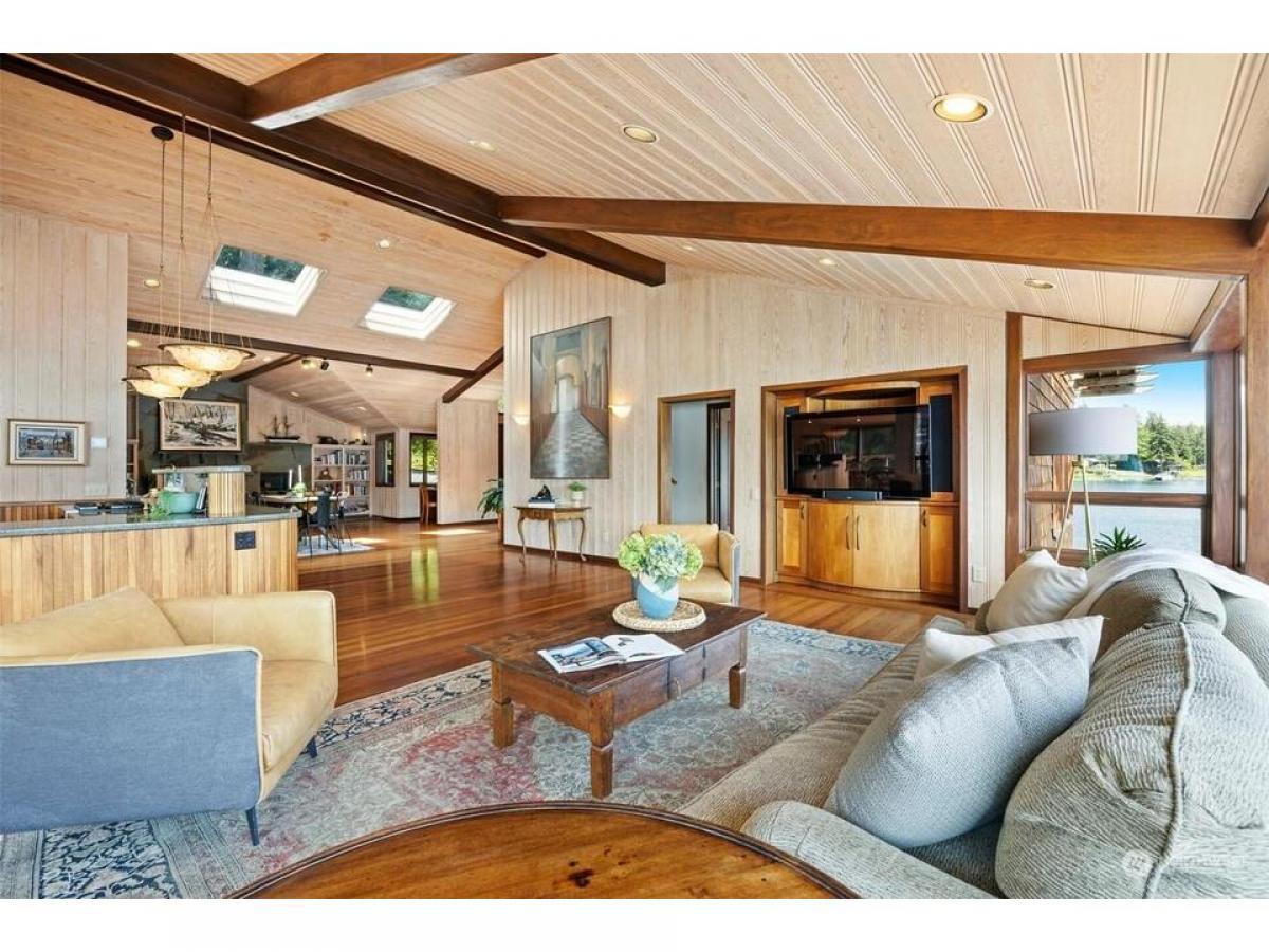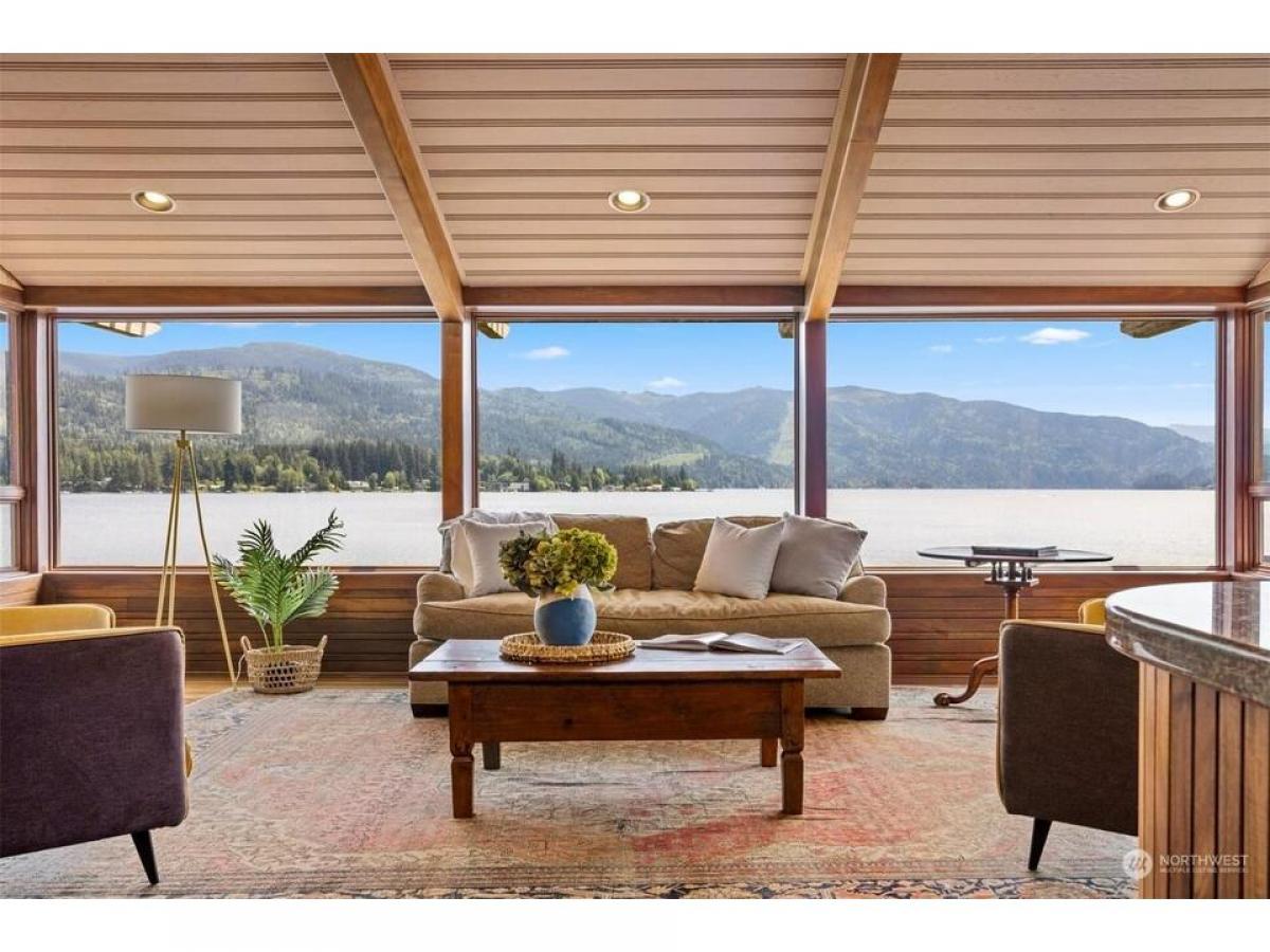 First time on the market, this architecturally designed gated Lake Whatcom estate suspended over the lake. Built in 1969 and remodeled since to enhance it structurally and aesthetically, this home has a clean and well-planned layout that allows for 180 degree views from nearly every room in the home. This one of a kind 3 bedroom, 3 bath expansive home features stunning workmanship and materials including bullet wood floors and purple heartwood decking from Guyana, clear ponderosa pine ceilings and walls, Honduran mahogany wood doors and cabinets, a fireplace surrounded by Pennsylvania bluestone and copper flashings on the exterior. Over 5000 sq ft of living space, multiple outdoor decks, and a private beach with 330' of no bank waterfront.