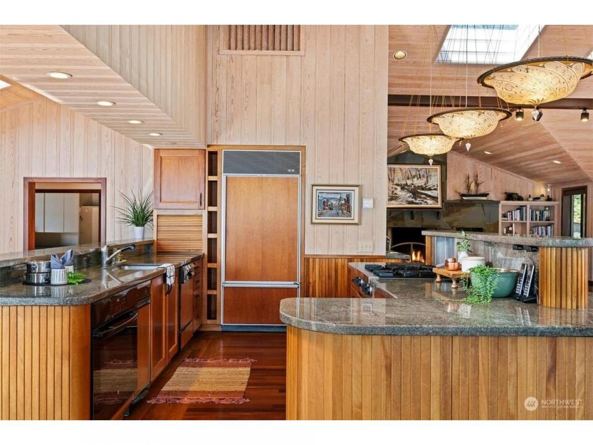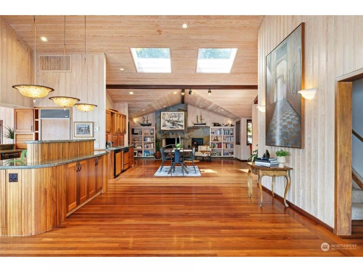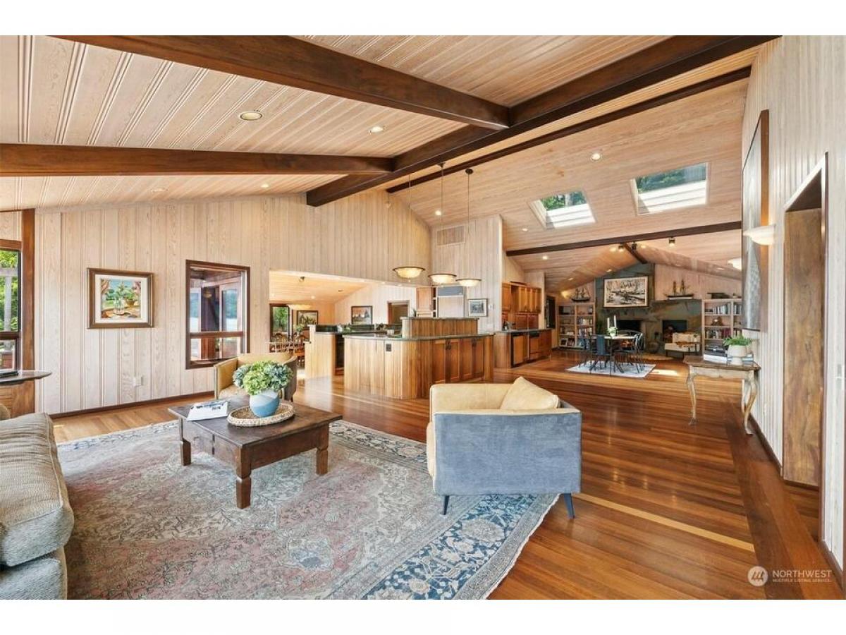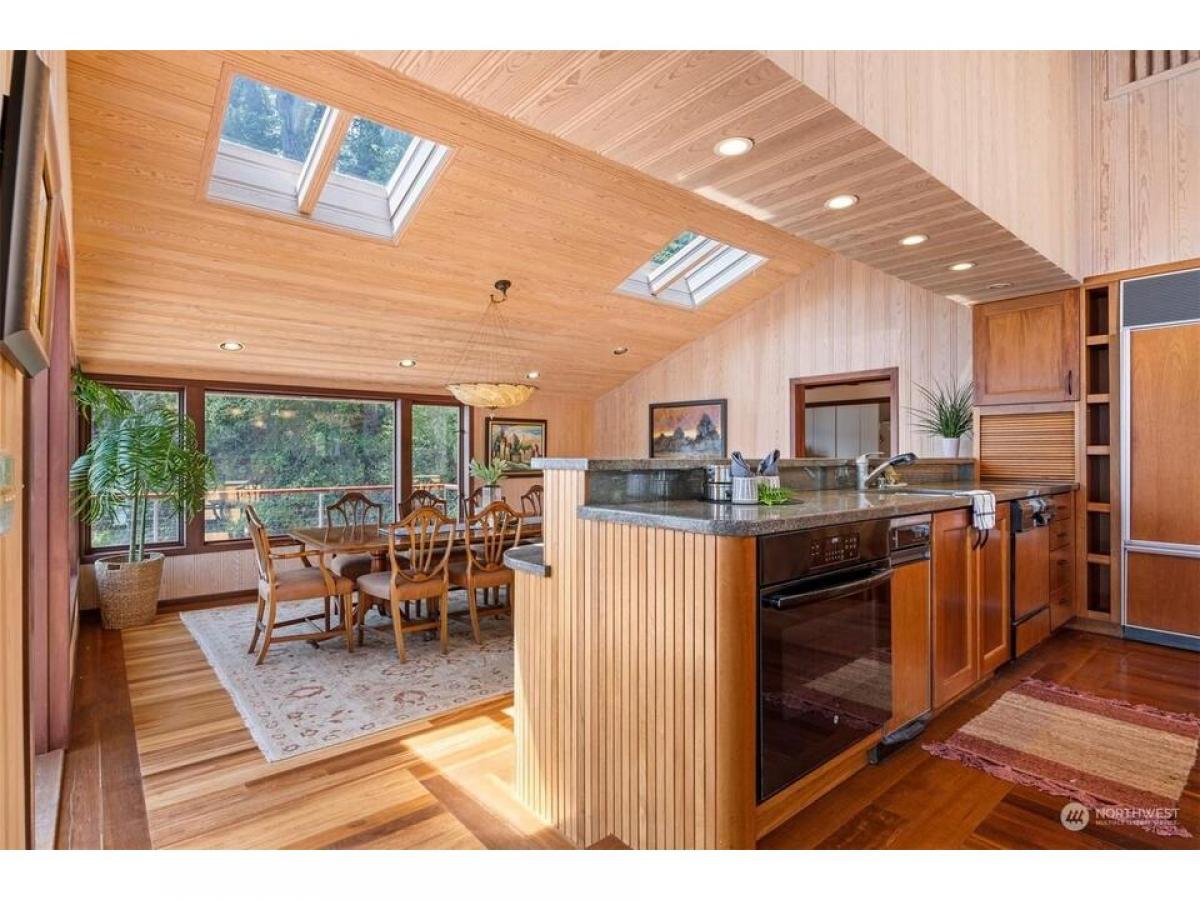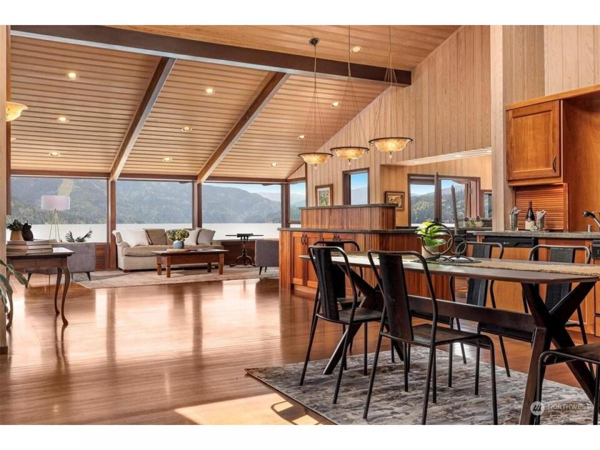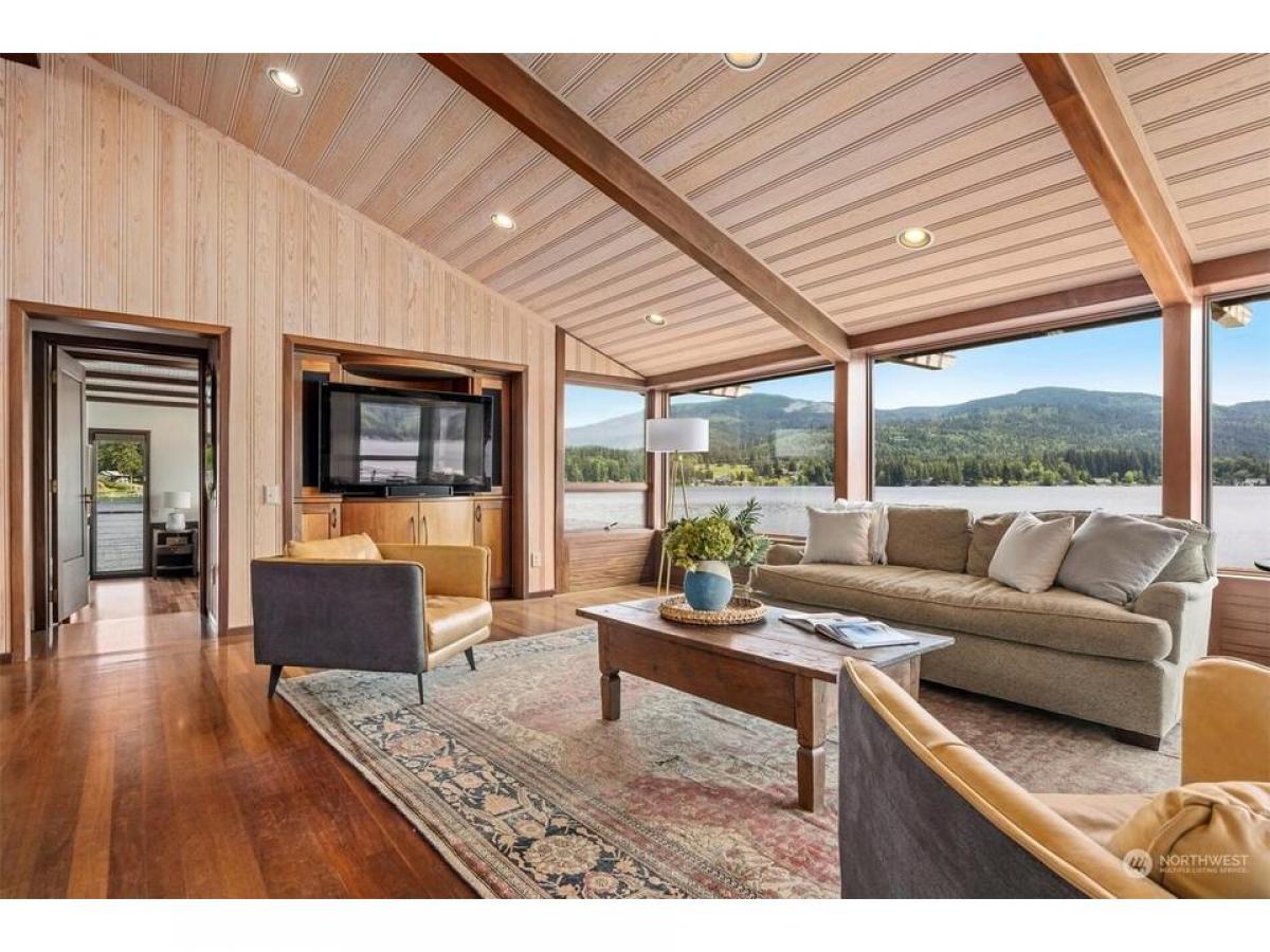 First time on the market, this architecturally designed gated Lake Whatcom estate suspended over the lake. Built in 1969 and remodeled since to enhance it structurally and aesthetically, this home has a clean and well-planned layout that allows for 180 degree views from nearly every room in the home. This one of a kind 3 bedroom, 3 bath expansive home features stunning workmanship and materials including bullet wood floors and purple heartwood decking from Guyana, clear ponderosa pine ceilings and walls, Honduran mahogany wood doors and cabinets, a fireplace surrounded by Pennsylvania bluestone and copper flashings on the exterior. Over 5000 sq ft of living space, multiple outdoor decks, and a private beach with 330' of no bank waterfront.