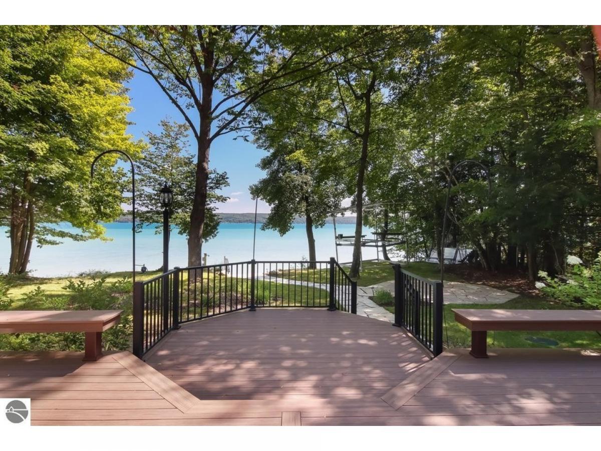 Spectacular Torch Lake home on 210' of frontage. Nearly 5000 sq ft. All 4 bedrooms have a private bath. Master suite includes a private elevator, two walk-in closets and a spacious attached reading room/office, perfect to watch the sunrise with a cup of coffee. Three fireplaces adorn the executive office, living room, and great room. Spacious kitchen overlooks a breakfast nook and the turquoise blue waters of Torch Lake. Beautiful combination of wood and stone accent the impressive architecture. Three car garage and wood shop. Close to award winning A-Ga-Ming golf course, Elk Rapids, and Charlevoix. Dock and hoist included in sale. Recent upgrades include interior paint, new electrical switches and outlets, 50 year shingles, a gorgeous low maintenance deck, and beautiful landscaping. New septic system installed in 2020. Generator included.