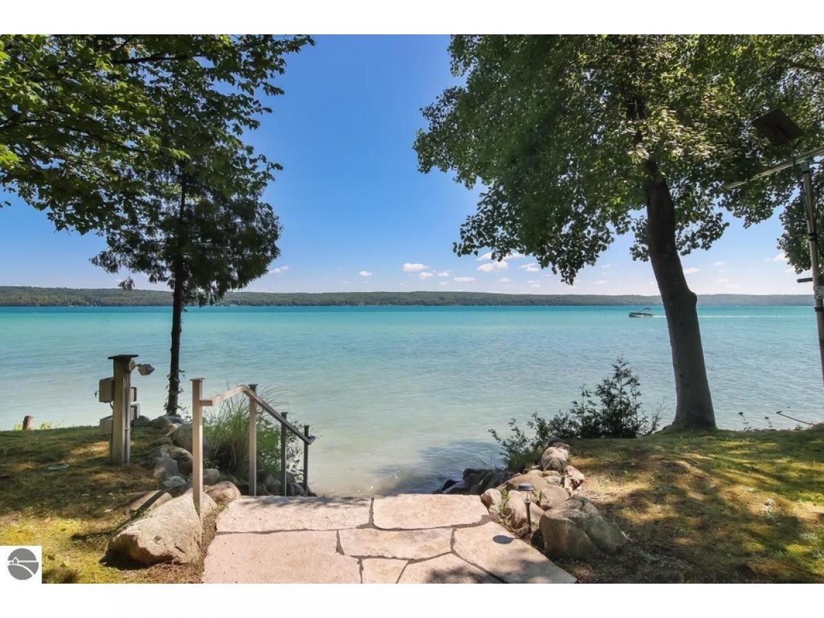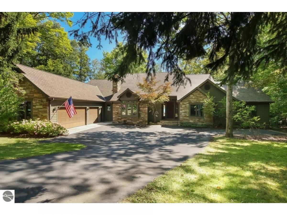 Spectacular Torch Lake home on 210' of frontage. Nearly 5000 sq ft. All 4 bedrooms have a private bath. Master suite includes a private elevator, two walk-in closets and a spacious attached reading room/office, perfect to watch the sunrise with a cup of coffee. Three fireplaces adorn the executive office, living room, and great room. Spacious kitchen overlooks a breakfast nook and the turquoise blue waters of Torch Lake. Beautiful combination of wood and stone accent the impressive architecture. Three car garage and wood shop. Close to award winning A-Ga-Ming golf course, Elk Rapids, and Charlevoix. Dock and hoist included in sale. Recent upgrades include interior paint, new electrical switches and outlets, 50 year shingles, a gorgeous low maintenance deck, and beautiful landscaping. New septic system installed in 2020. Generator included.
