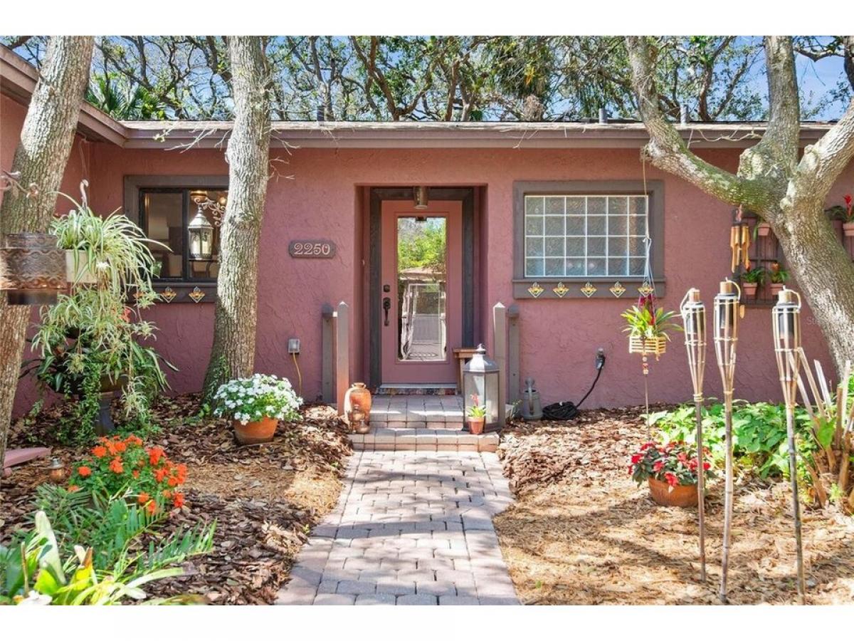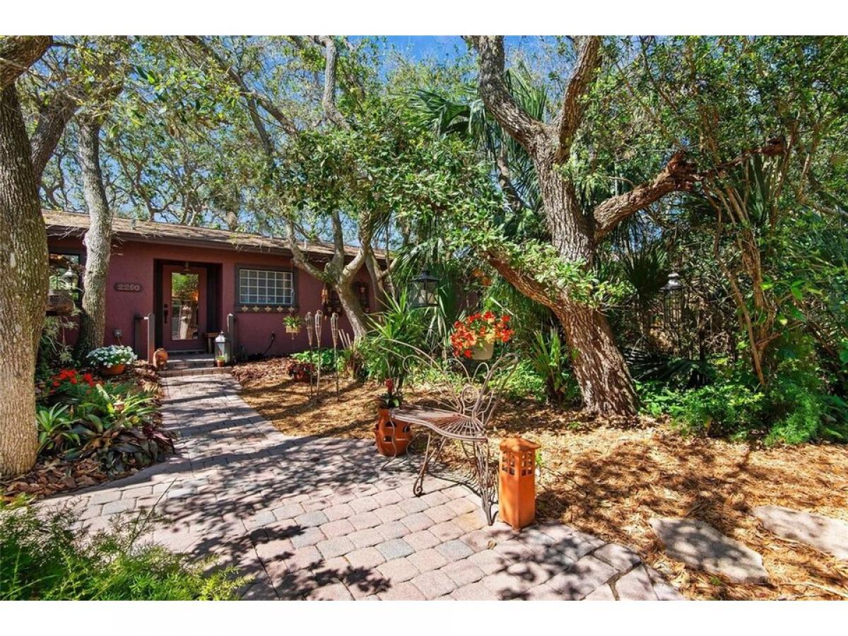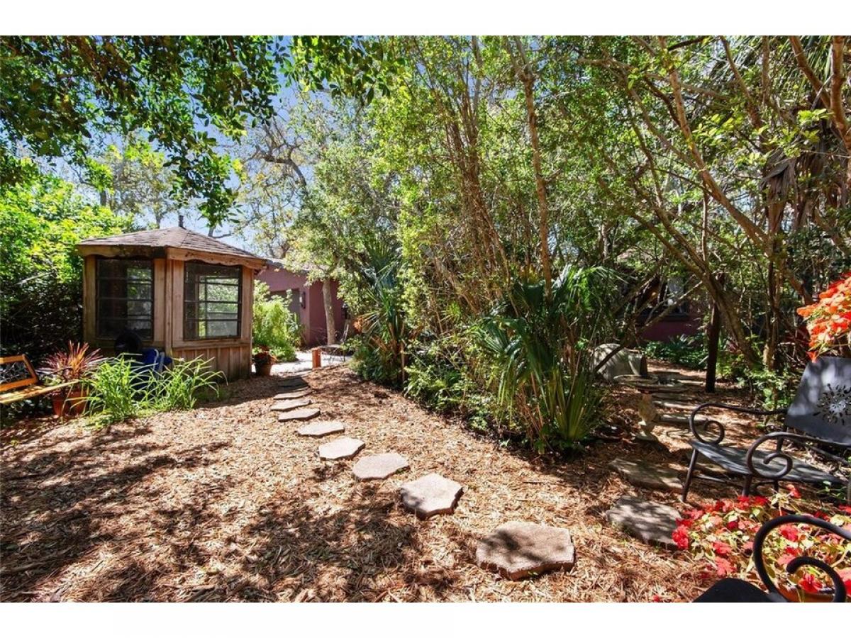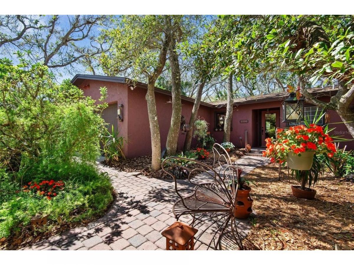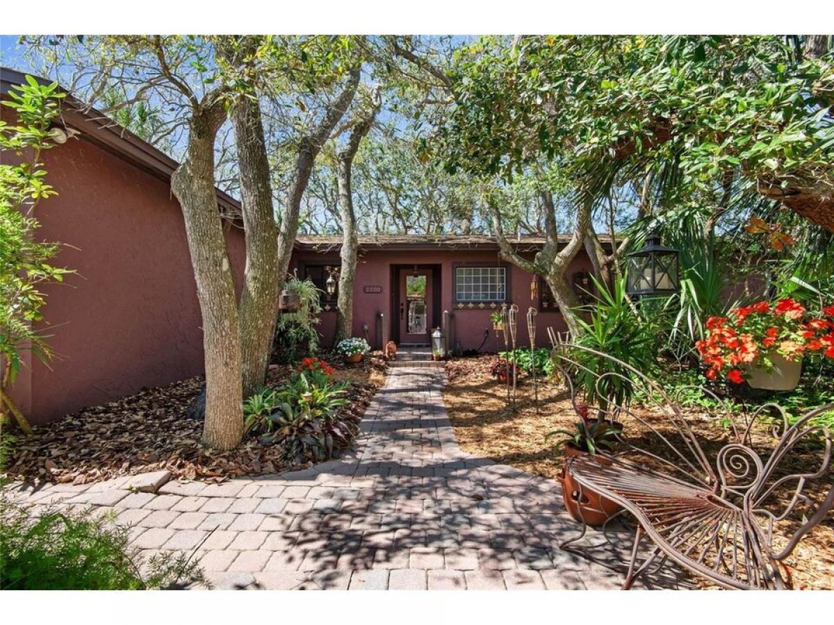 Dreaming of a private sanctuary in a park-like setting, with the sounds of waves crashing from the nearby ocean? This 3 bedroom, 2 bath home, only a two-block walk to the beach, can be yours! With pavers and paths meandering through a shaded oak canopy, brightened by flowering plants, you are led to secret nooks, private seating areas, and a small pondhellip; perfect settings for reading or meditation. This unique Florida property offers privacy and nature in the front and back yards, and has been owned and well-maintained by the same owners since 1982. Inside this comfortable home the outside comes indoors with views of the forest in every room, from the primary bedroom picture window to the kitchen window over the sink. You#039;ll also find knock-down ceilings, porcelain tile flooring (2018, 2023), crown molding, upgraded 5 frac12; inch baseboards, custom wood trim around the living room windows, and custom plaster walls that include a faux finish in the hallway. The open concept in the living room, dining room and kitchen exudes warmth and comfort. The kitchen has terracotta tile, updated appliances (2018, 2023) and a large peninsula island open to the living and dining rooms, so everyone can enjoy the conversation. The dining room boasts a brick-tile feature wall (2018), while the living room includes expansive double-pane windows (2018), a fireplace adorned with Mexican tiles, and two 8-foot sliding glass doors leading to the private walled patio with outdoor shower. One of the two guest bedrooms, designated as a den, has French doors with views of the back patio and forest. The Primary Suite has an adjoining ensuite bath with walk-in shower that is ADA accessible with bars and built-in tiled bench (2018), plus a large closet for extra storage. A portion of the oversized garage, which is heated and air-conditioned, was converted to a storage room and small home office, but can easily be transformed back to accommodate 2 cars and storage space. The home comes with a large-capacity Samsung washer and dryer (2018) and Florida Code-compliant fabric hurricane shutters custom-fitted to every window and door which one can install without assistance. Best of all is the location of this home, walking distance to the beach where you can take a swim, fish, surf, sunbathe and paddleboard! And you are just a quick golf cart ride to nearby restaurants, shops, wine bars, art gallery, farmer#039;s market, tennis/pickleball courts, nature preserves, the Flagler Beach Library, and Veteran#039;s Park hosting arts amp; craft shows, downtown holiday events, and monthly First Friday Celebrations. A short drive to St. Augustine and Daytona Beach provide expanded offerings for shopping, dining, and fun! Don#039;t miss out on this great property... Schedule your showing Today!