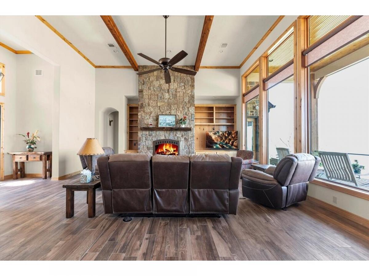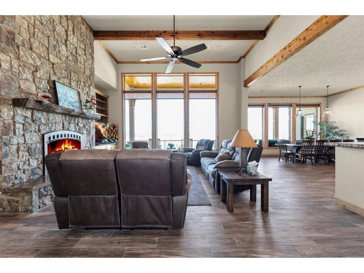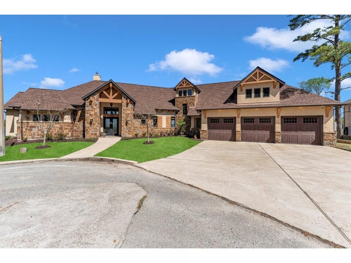 Enjoy the best of waterfront living in this golf-loverrsquo;s paradise! Stunning waterfront property offers open water views, a heated pool amp; spa, a fully equipped summer kitchen + a private boathouse w/2 boat lifts, 2 jet ski lifts, a fish cleaning station amp; gear storage. Inside, high-end finishes shine w/custom cabinetry amp; built-ins, soaring wood-beamed ceilings w/chic lighting amp; fans, oversized windows amp; a striking stone gas-log fireplace. Open dining area flows into the family room amp; chefrsquo;s island kitchen w/granite countertops, stone backsplash w/under-cabinet lighting, SS appliances, a butlerrsquo;s pantry + a walk-in pantry. Thoughtful layout offers a mud room, study, 2 game rooms (1-up/1-down), 4 guest suites w/walk-in closets amp; luxe ensuites (2-up/2-down) including a posh ownerrsquo;s retreat offers a spa-like bath amp; dual custom closets. 4-car tandem garage. Adj lot not included in sq/ft but will be conveyed w/this sale. Amenities include golf, park, pavilion amp; boat ramp.
