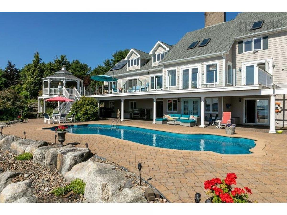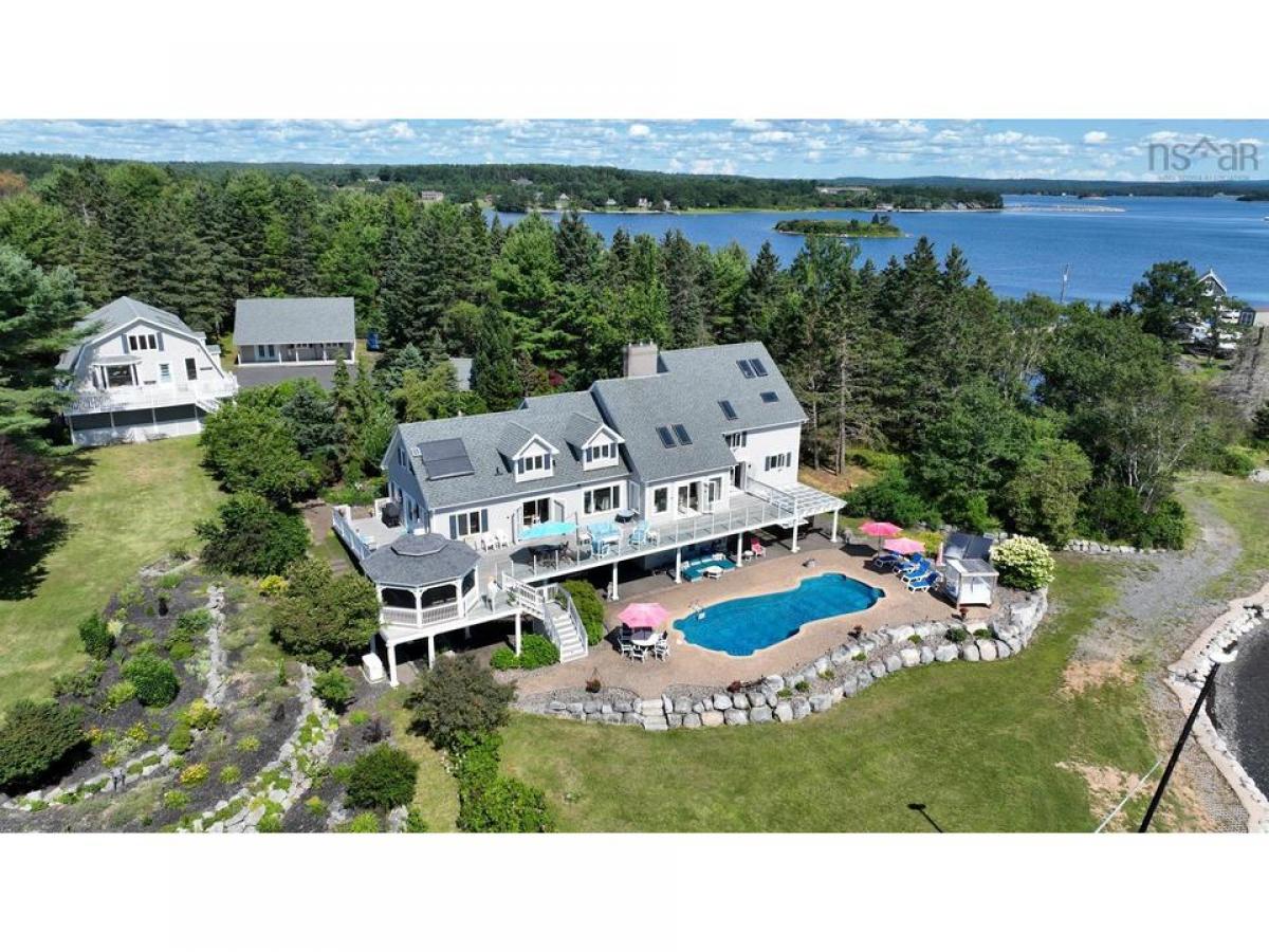 SCALLOP BAY: SEASIDE FAMILY RETREAT ~ NEXT TO FAMOUS OAK ISLAND One's own ocean playground in a boating mecca! Total privacy on almost 6 acres, close to both Chester and Mahone Bay amenities. Imagine living beside the world famous Oak Island! Phenomenal ocean views of numerous Mahone Bay islands, over 1100 feet of waterfront ideal for sailing, swimming and kayaking, 100â wharf, 3 floating docks, boathouse, and 2 moorings. This warm, inviting Coastal Country, light filled, solidly built, open concept +6000 sq. ft. post and beam home features include five bedrooms all with ensuites, in floor heating, plus a separate, spacious 2 bedroom fully serviced apartment for guests or extended family. There is something for every member of the family. Salt water generated ocean side pool with extensive paver stone patio, large wrap around exotic Brazilian Ipe decking for entertaining, luxurious hot tub under a pergola, and spacious screened gazebo for moonlight dining. Colourful gardens surround three cascading ponds, there is a magical pine forest to contemplate nature or watch for spritely fairies. Includes a peninsula with 280 degree views, gazebo for special family events and wedding photos with close up views of Oak Island. There is a triple car garage, 26 x 36 multi-use building that could be a yoga or exercise studio, additional living space or the ultimate workshop, plus a cute potting or art studio building nestled in the garden. The ultimate family retreat for the discerning buyer. Lunenburg County is exempt from the foreign buyer ban at the time of this listing.