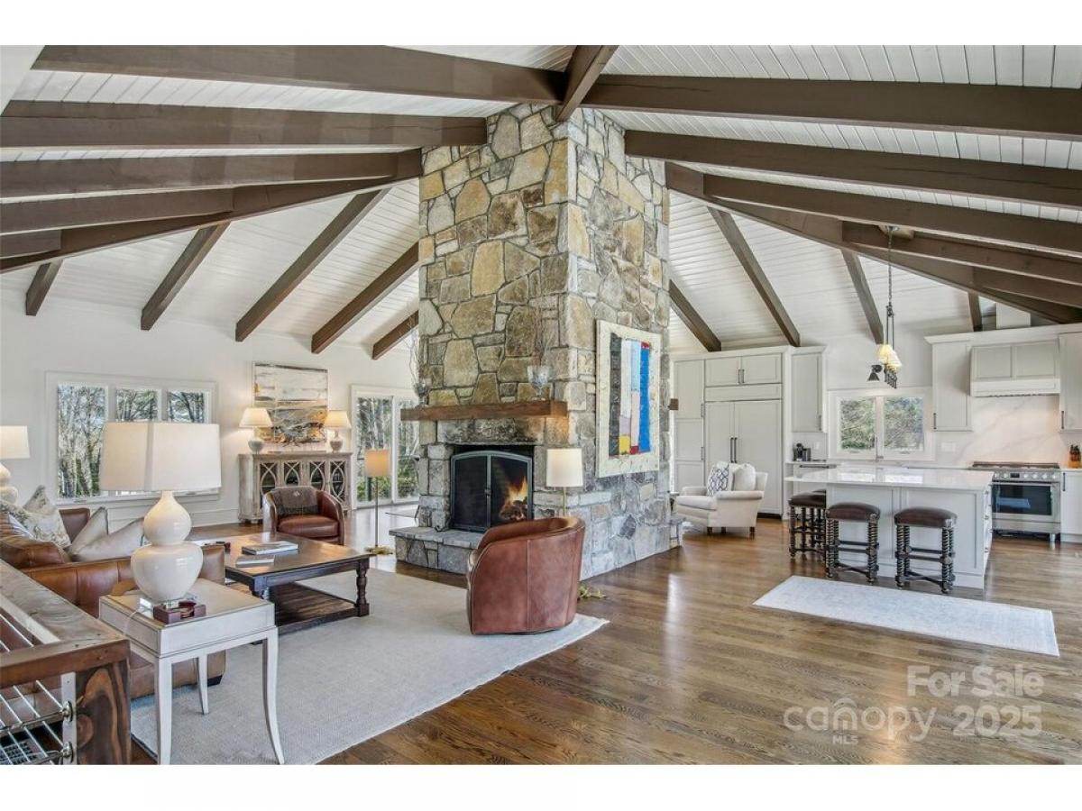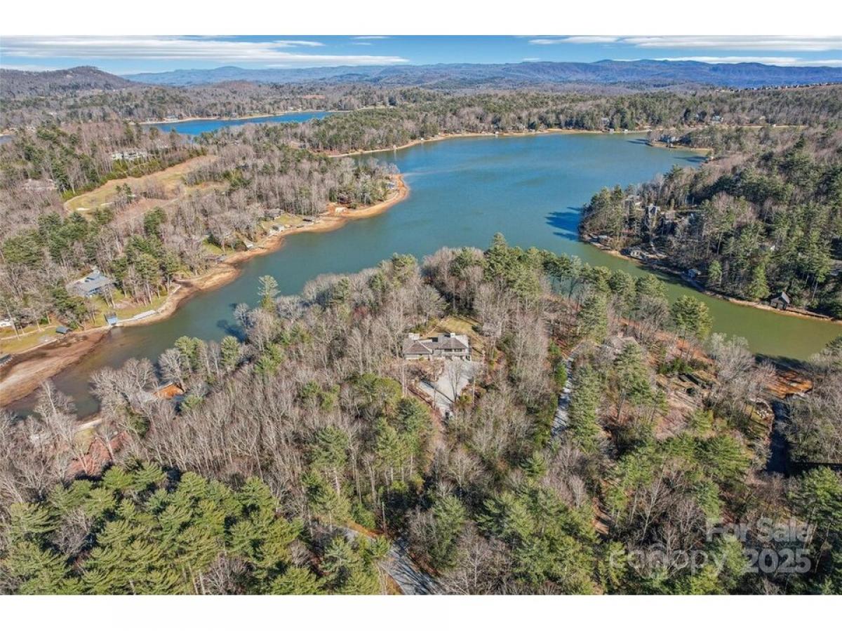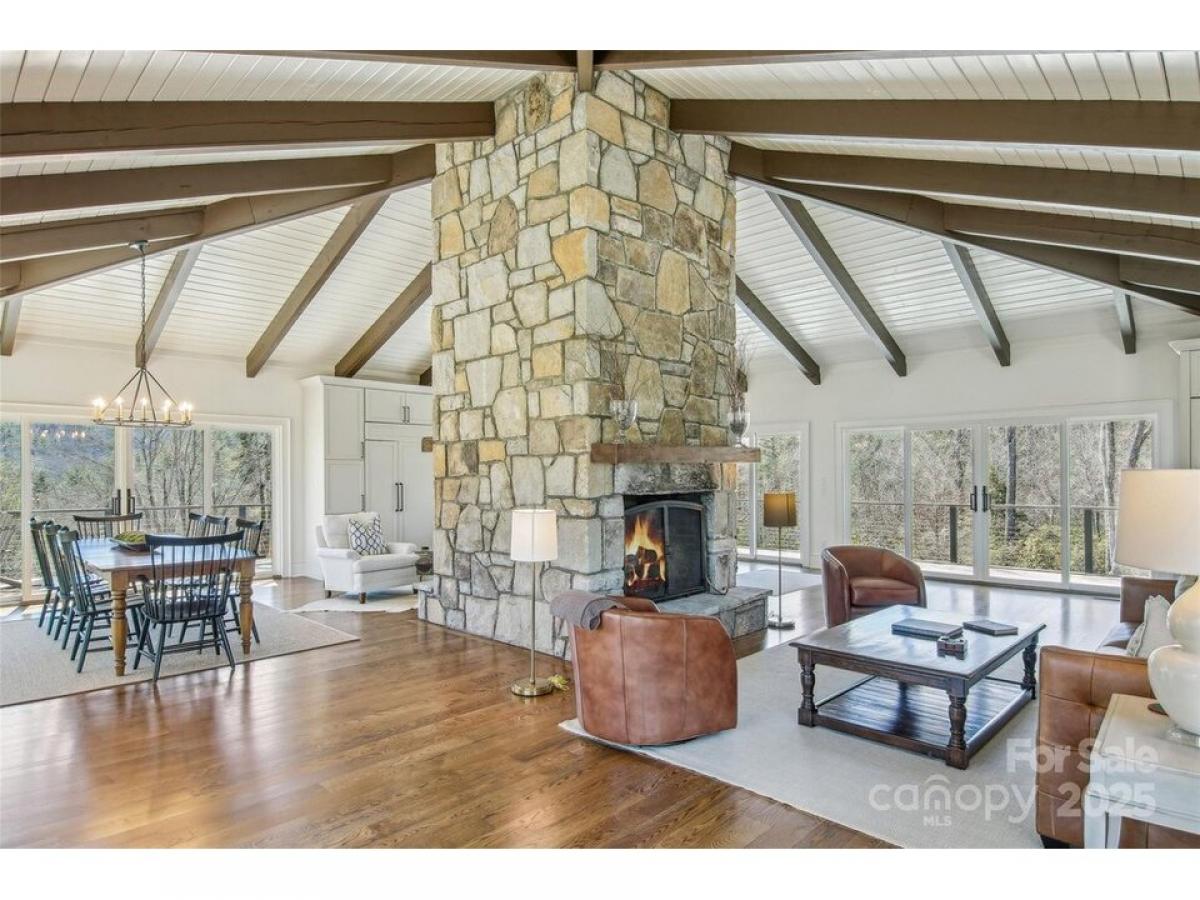 Exquisite estate-like property in Lake Toxaway Estates on over 3 acres with extensive renovations, antique cabin, and lake access. Discover this unique property in a beautiful setting nestled on a large and private lot with lawn, exceptional boulder work and views to Lake Toxaway and Toxaway Mountain. The interior of the home boasts an open and inviting floor plan with double-sided stone fireplace, upscale kitchen and light-filled dining area that overlooks the lawn and lake. A private primary suite features separate sitting area with fireplace and its own porch, ideal for taking in the serene setting. Each guest room features an en-suite bath. The lower level has been finished and renovated to feature an additional kitchenette and laundry room with bonus room and full bath. Outside you will discover an antique cabin with kitchen, full bath and wood burning fireplace, perfect for guests or your own escape. This is a unique opportunity to own a one-of-a-kind home in Lake Toxaway.