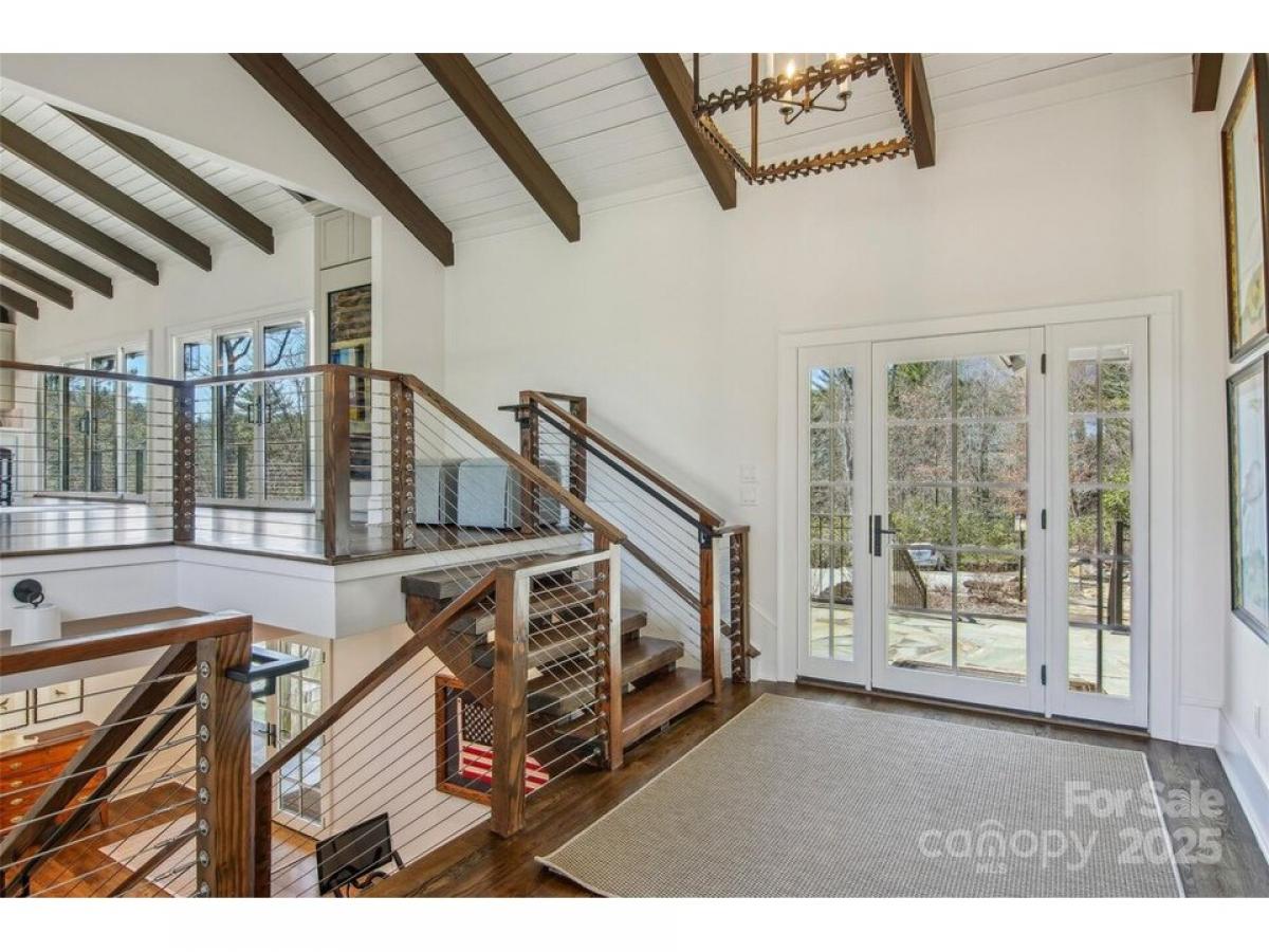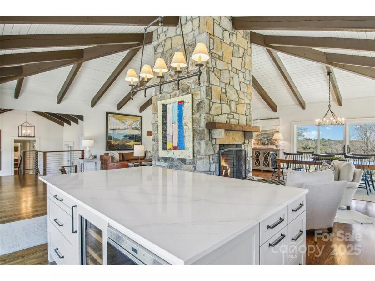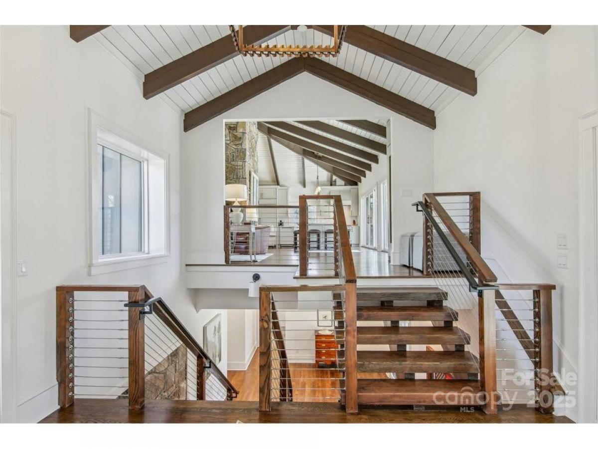 Exquisite estate-like property in Lake Toxaway Estates on over 3 acres with extensive renovations, antique cabin, and lake access. Discover this unique property in a beautiful setting nestled on a large and private lot with lawn, exceptional boulder work and views to Lake Toxaway and Toxaway Mountain. The interior of the home boasts an open and inviting floor plan with double-sided stone fireplace, upscale kitchen and light-filled dining area that overlooks the lawn and lake. A private primary suite features separate sitting area with fireplace and its own porch, ideal for taking in the serene setting. Each guest room features an en-suite bath. The lower level has been finished and renovated to feature an additional kitchenette and laundry room with bonus room and full bath. Outside you will discover an antique cabin with kitchen, full bath and wood burning fireplace, perfect for guests or your own escape. This is a unique opportunity to own a one-of-a-kind home in Lake Toxaway.