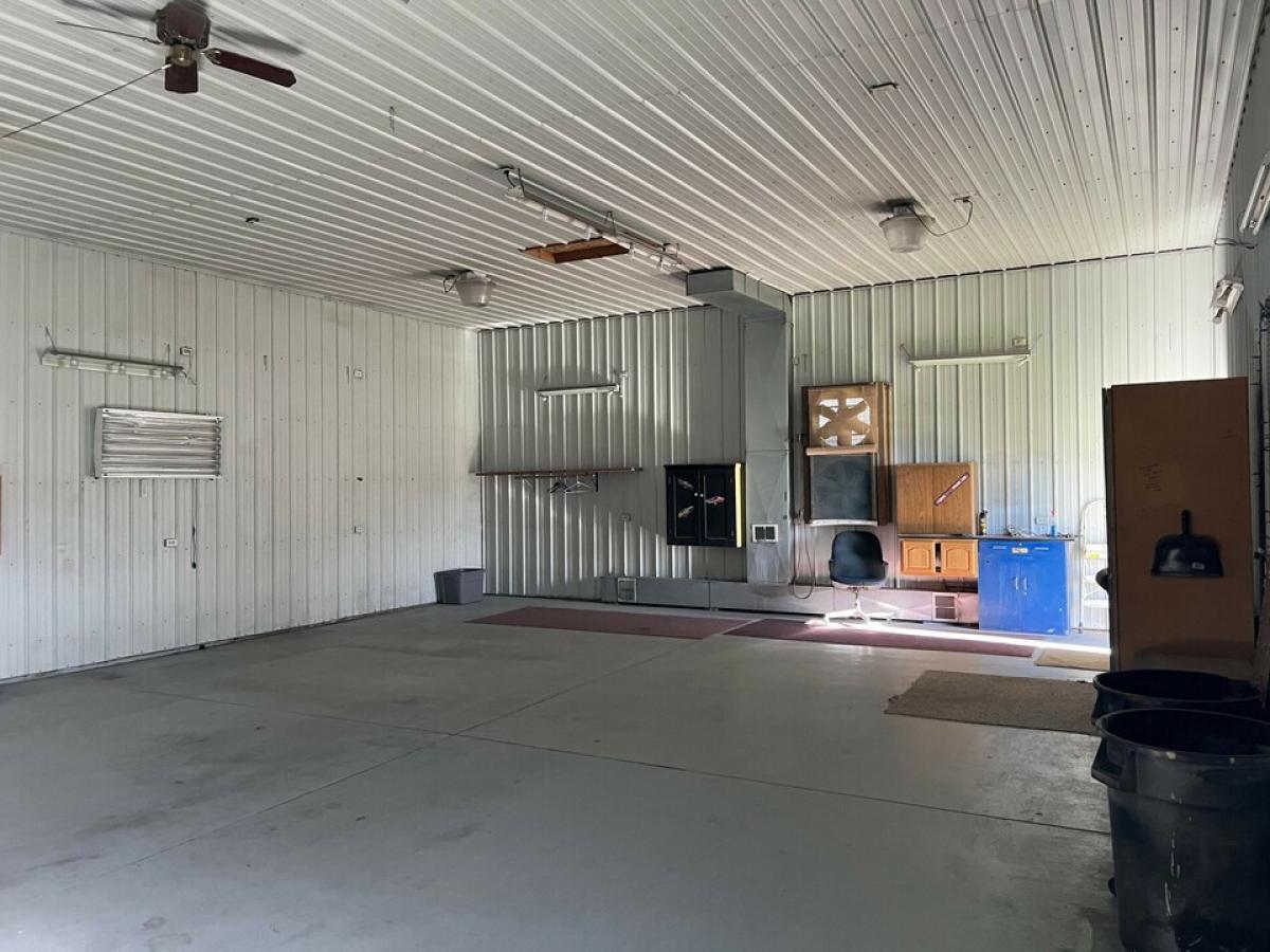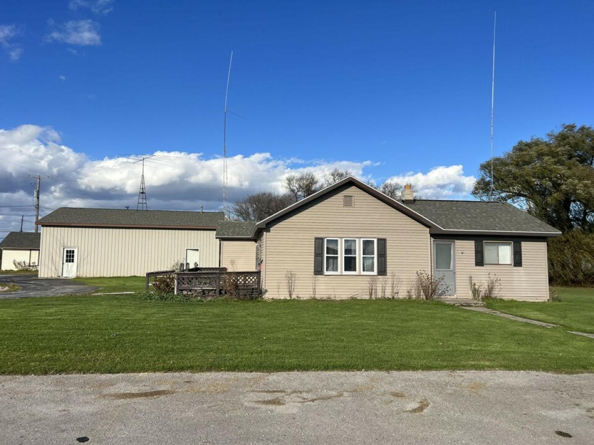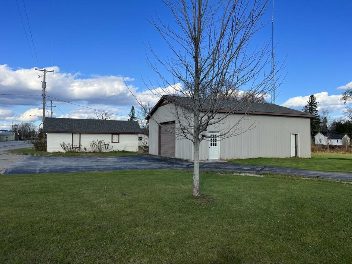 Residential home located in town zoned commercial, many opportunities here. Ranch style home 3 bed, 1 bath with potentially a second bath. Awesome heated pole barn, with open floorplan and workspace, formally used as a auto repair shop. There is another building that was used for storage, potential is there, has half bath and open floor plan. Large back yard almost to the fence line of the township ball diamond/park. Circle paved drive and newer roof, well, septic and drain field, home is move in ready, and handyman's dream garage.