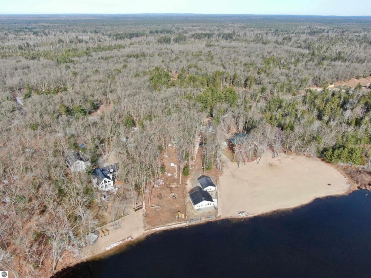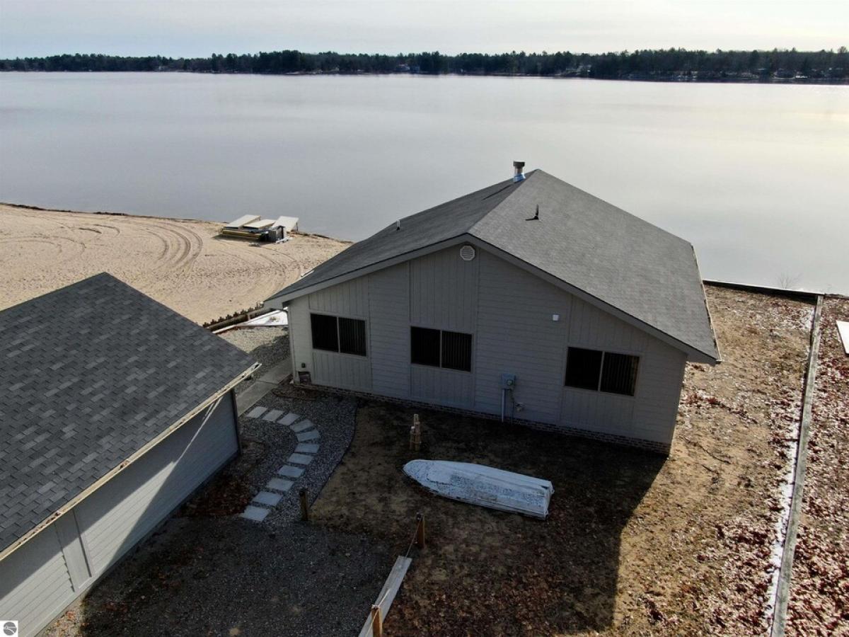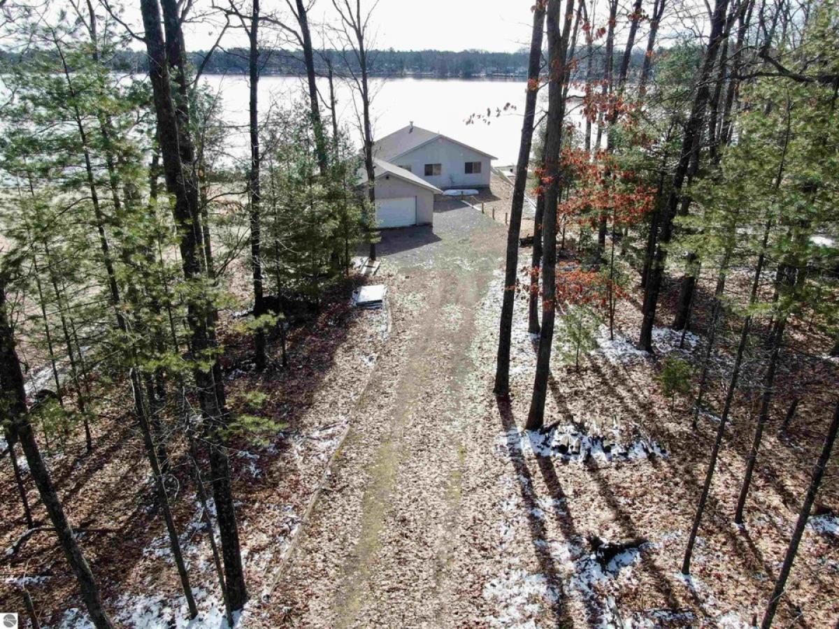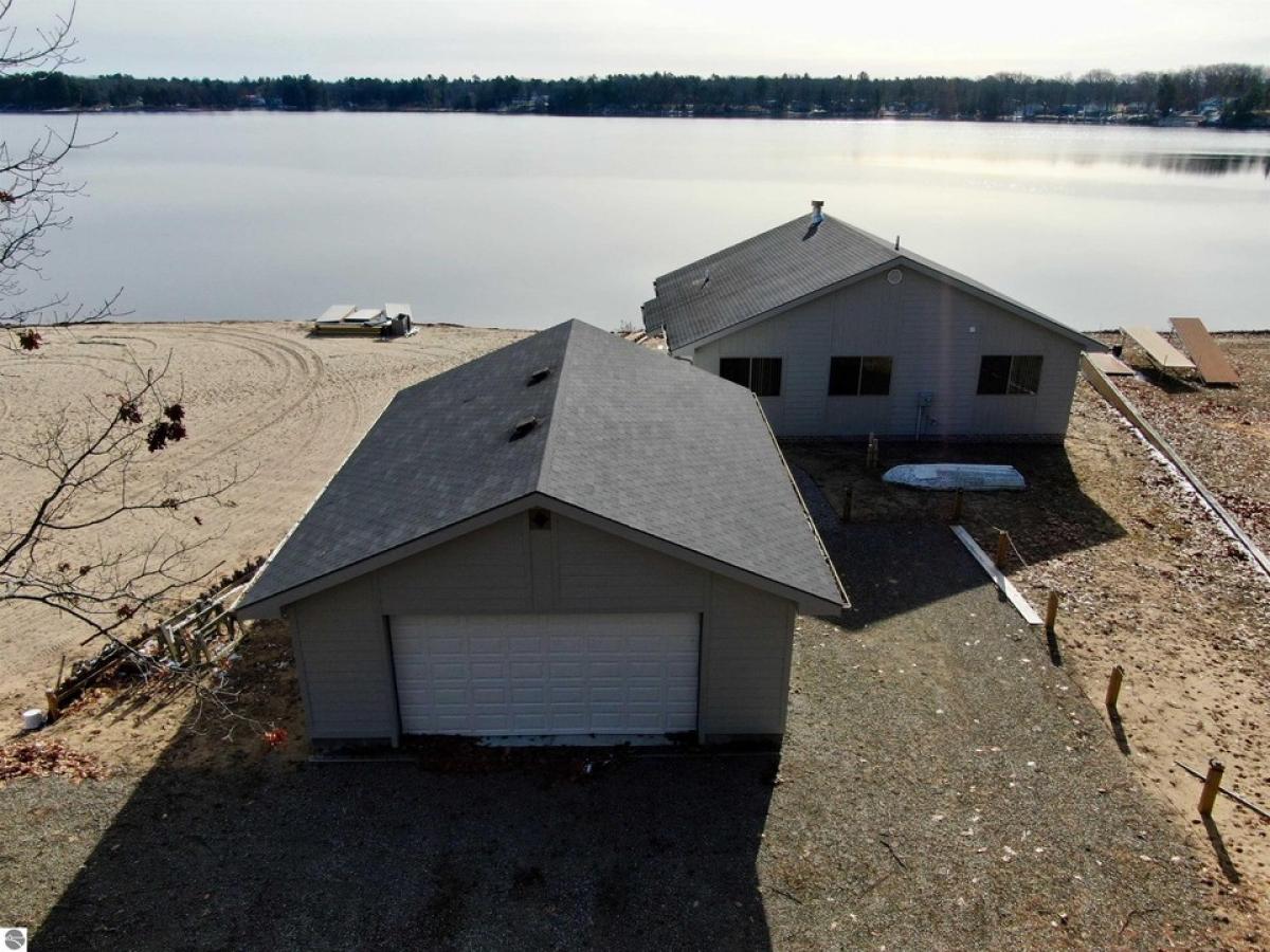 A beautifully wooded setting awaits with this property! Secluded along the shores of Indian Lake, this recently built home offers 60' of frontage and almost an acre of land in total! The home features two bedrooms, one bath, kitchen/dining and living area w/ a two way fireplace separating them and both rooms offering a fantastic view of the water, large laundry room, & electric heat. For storage, there is a 2 car detached garage w/ workshop room. Located not far from the Tawases, M-55, etc!