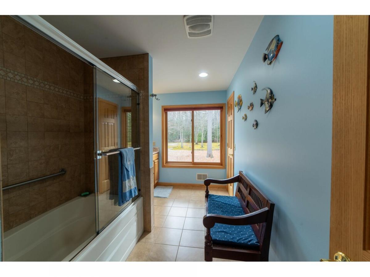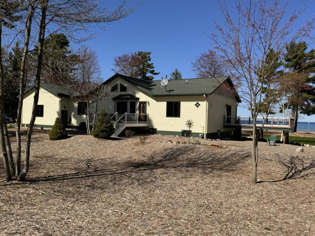 SPECTACULAR VIEWS OF LAKE HURON OUT THE SORING CUSTOM MARVIN WINDOWS FROM THE GREAT ROOM, AND BEDROOMS IS ONLY THE BEGINNING OF ALL OF THE CUSTOM TOUCHES OF THIS EXQUISITE HOME. We have an open floor plan with a vaulted tongue and groove pine ceiling lending a warm cottage feeling. Beautiful 3 / 4'' hardwood floors add to the charm of this cozy custom home. The fireplace is split between the living room and master bedroom. The kitchen features solid oak cabinets, with open views of the lake. Step out onto a maintenance free deck from the master bedroom for that morning coffee listening to the waves crash the sandy shoreline. Just a quick walk across the street to a gorgeous beach area. The bathrooms have heated floors upstairs for those cold winter nights. We have solid oak 36'' doors