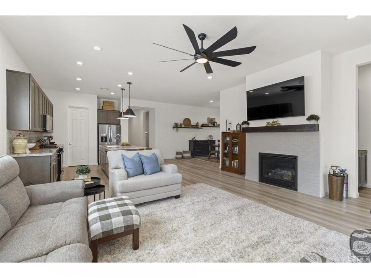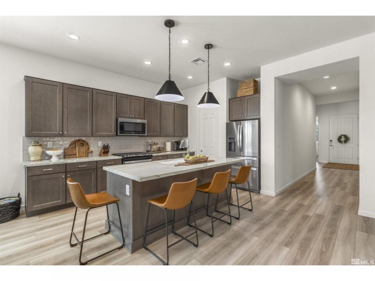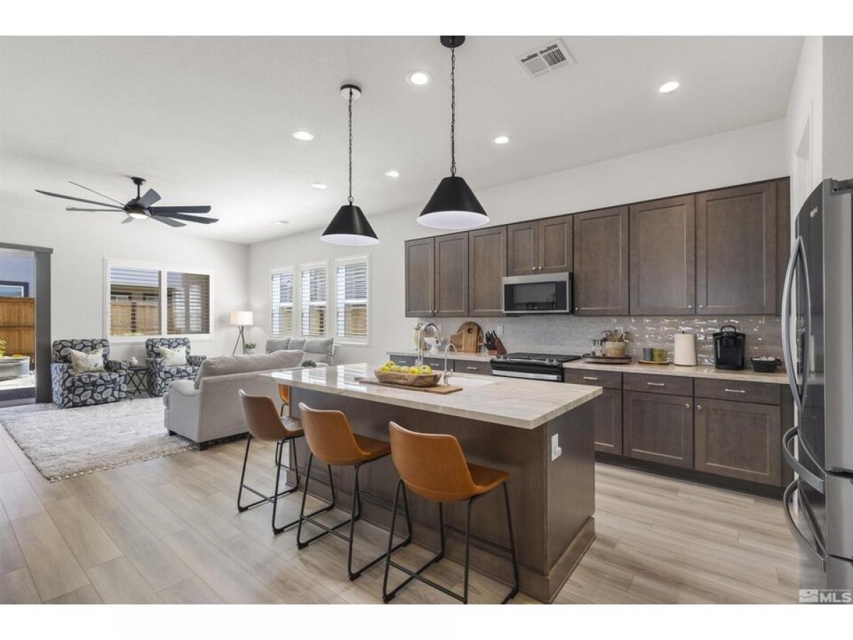 Welcome to this stunning, well appointed home in a 55+ community! The inviting open concept living, kitchen, and dining areas are bright and spacious to create the perfect place for entertaining. The split floor plan ensures privacy when hosting guests. The beautifully upgraded kitchen boasts soft close drawers, upgraded quartz countertops and cabinetry with elegant pendant lights over the island.