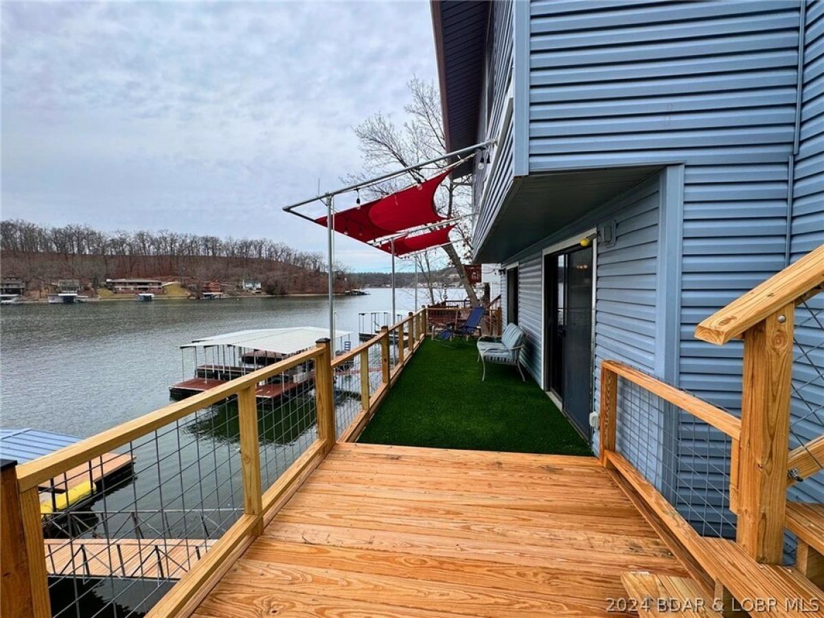 What are you waiting for......This lakefront home checks all the boxes….. Great Cove Location w/deep water year round, plenty of parking (newer concrete parking pad holds 3-4 cars), Multiple decks to appreciate the view or just relax-ready for countless bbq's and perfect for entertaining, 2 well dock w/attached swim platform (dock electrical recently updated), 3 bedrooms, open living room/kitchen area, furnished and more! This home would be an amazing vacation rental, if desired! Located in a great cove with main channel view of the 1 MM of the Big Niangua just a short boat ride to multiple popular waterfront establishments and a short drive into town! A prime location. Summer is Here .... Let the FUN Begin! Deep Water * Great View * New Decks * Nice Parking Area * 2 well dock * storage under house * Vinyl Siding * 3 Bedrooms * 2 bathrooms * Cove Location * Nice Neighborhood ...... what more do you need!
