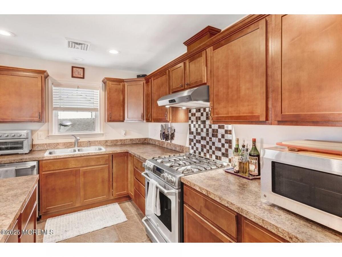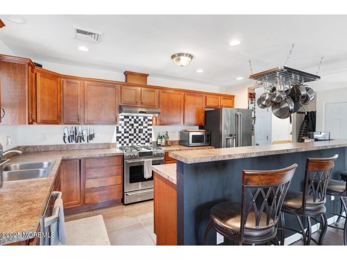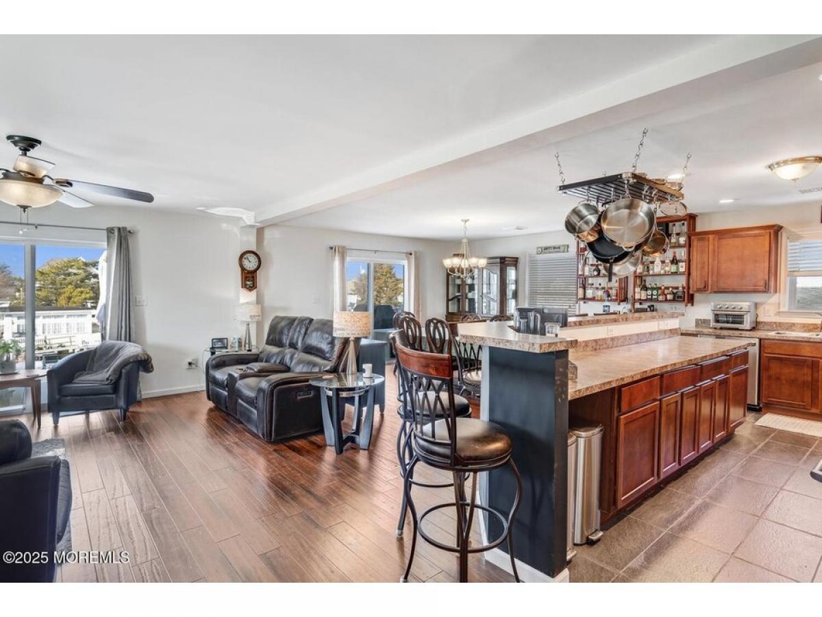 Imagine the endless possibilities with this pristine waterfront home, just 10 years young, located on the Isle of Mystic in the Great 08087. This spacious three-story residence offers tremendous potential. The main living area, situated on the second floor, features an open floor plan that includes a large kitchen, complete with ample countertop space, upgraded cabinets, stainless steel appliances, and a bar seating areamdash;perfect for any cooking enthusiast! The living room is airy and filled with natural light, and it is open to the dining area, which is complemented by a built-in bar area, making this home ideal for entertaining. The beautiful, expansive deck off the dining area provides stunning views of the water and sunsets and is equipped with a Weber natural gas grill. Additionally, there is a convenient half bathroom with a toilet and urinal, a laundry room, and a luxurious primary suite that offers plenty of closet space, along with a large full bathroom featuring a stand-up shower. This home is being sold completely furnished, so you can move right in and enjoy waterfront living. On the third floor, you#039;ll discover a blank canvas. Currently set up as a bedroom and office with built-in bookshelves, this space is prepped to accommodate three additional bedrooms and another full bathroom, awaiting your personal touch. The first floor consists of a completely open and heated garage that is air-conditioned and can accommodate up to four cars, plus all your waterfront living essentials. A Tesla charging station is also available. This home is not only visually appealing but also boasts a safe and robust construction. The owners ensured that only the highest quality, efficient, and virtually maintenance-free materials were used in its construction. The vinyl-fenced backyard features a paver patio and a built-in fire pit, enhancing the outdoor experience. With garage doors at the front and rear of the home, there#039;s plenty of space for your water toys making it a perfect place for fun in the sun! Just minutes to the Great Bay, make this your summer forever home today!