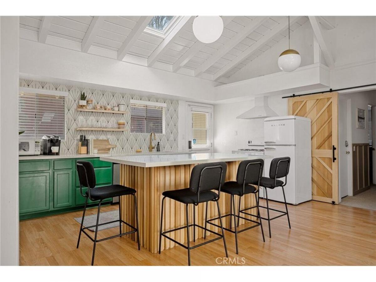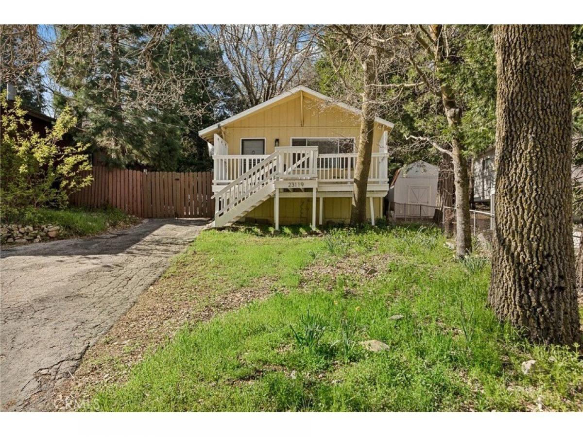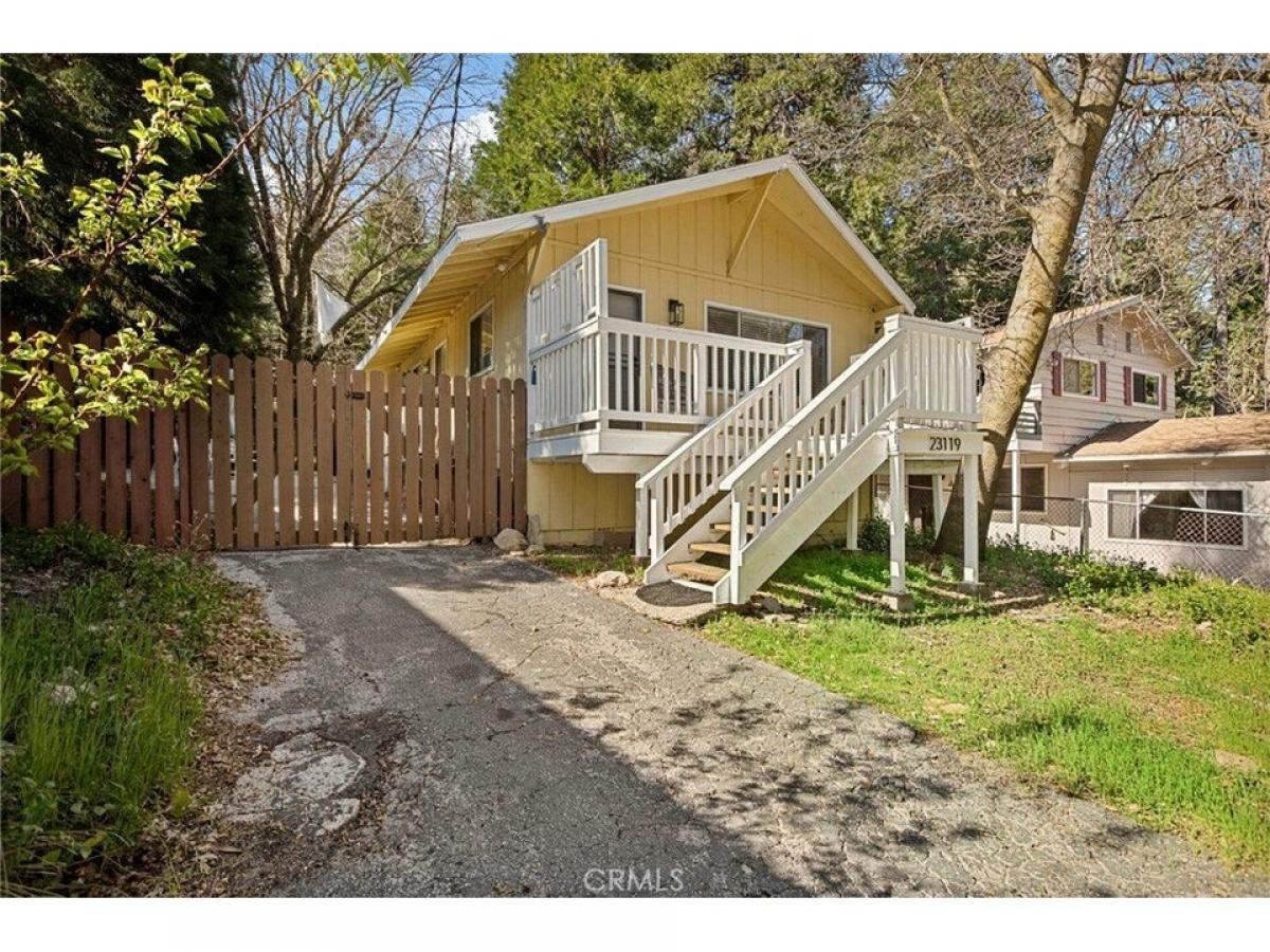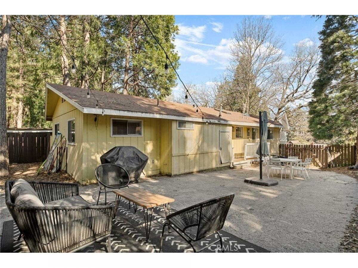 All one level living that backs up to acres of National Forest. This adorable Valley of Enchantment home has been remodeled and boasts all one level living with 2 bedrooms, 2 bathrooms and central A/C. The space is so well equipped, with a charming front deck, to a large living room, a large kitchen and dining area with vaulted ceilings, skylights, fireplace and laundry closet. The back yard is fully fenced and has an incredible amount of space to work with, you could fit a boat, a trailer, off road vehicles, and more. There is even a gate that leads you out to the National Forest where you can enjoy strolling through nature. The home is currently a successful Airbnb and has been styled and curated to welcome all! The long driveway allows for ample parking. Located not far from Downtown Crestline, Lake Gregory and heart rock trail and , this home will captivate you as soon as you pull in the driveway. Home is being sold furnished minus sellers personals. Don#039;t pass this one up.