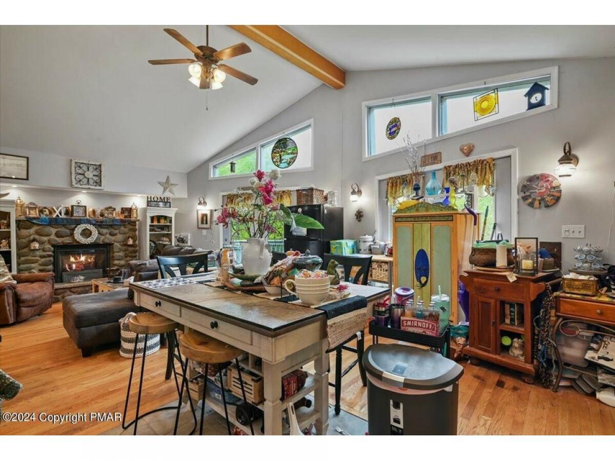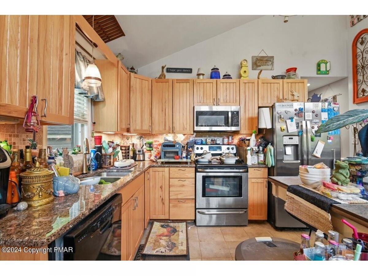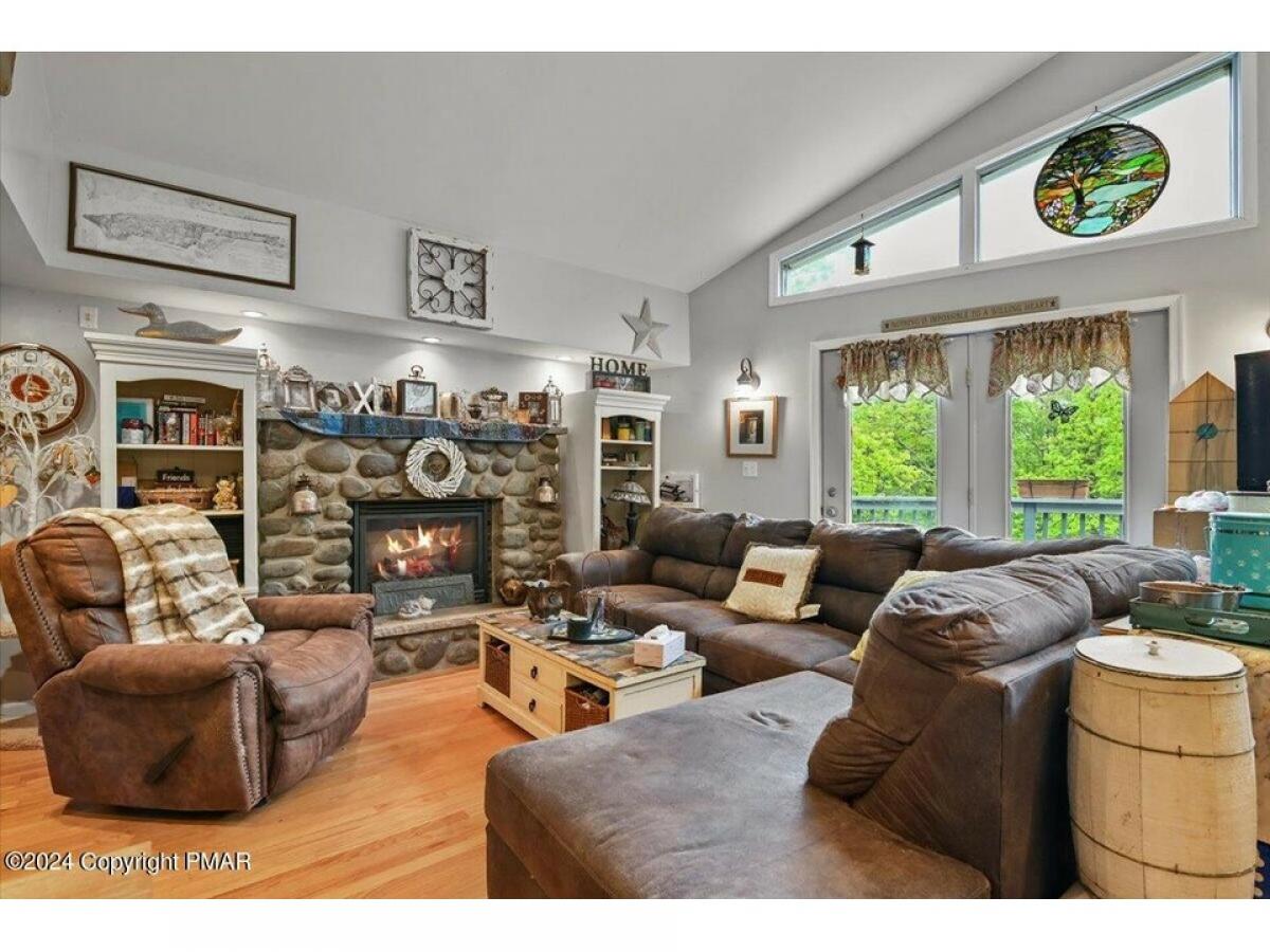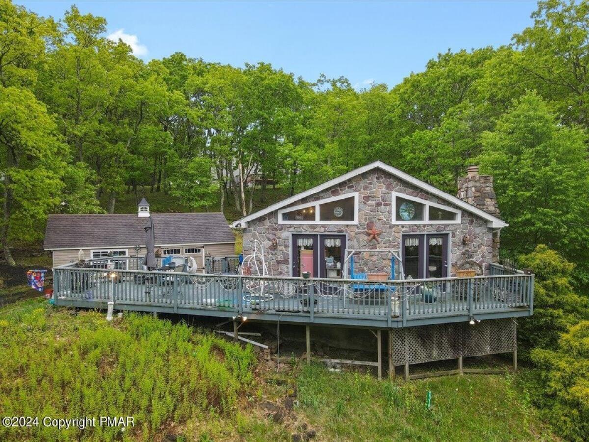 Improved Selling Price! Welcome Home to this Stone Front, A Frame Ranch, situated on over a private feeling acre, with beautiful views from the inside and out, wherever you happen to look. Some special features of this spacious feeling 2 bedroom, 2 bath home include: a 1 Car Detached Garage with custom shelving great for storage, a large outdoor shed perfect for parties or relaxing, a sweet kitchen with a deep double sink, touch faucet, a custom center island and a pantry closet, a MBR, with a huge walk in closet and easy access to a large deck and fenced in yard, a cobblestone gas propane fireplace, and a heat pump to keep you comfortably warm in the winter and cool throughout the summer. This home is filled with many recent upgrades throughout. 4 miles to Rt 80,
