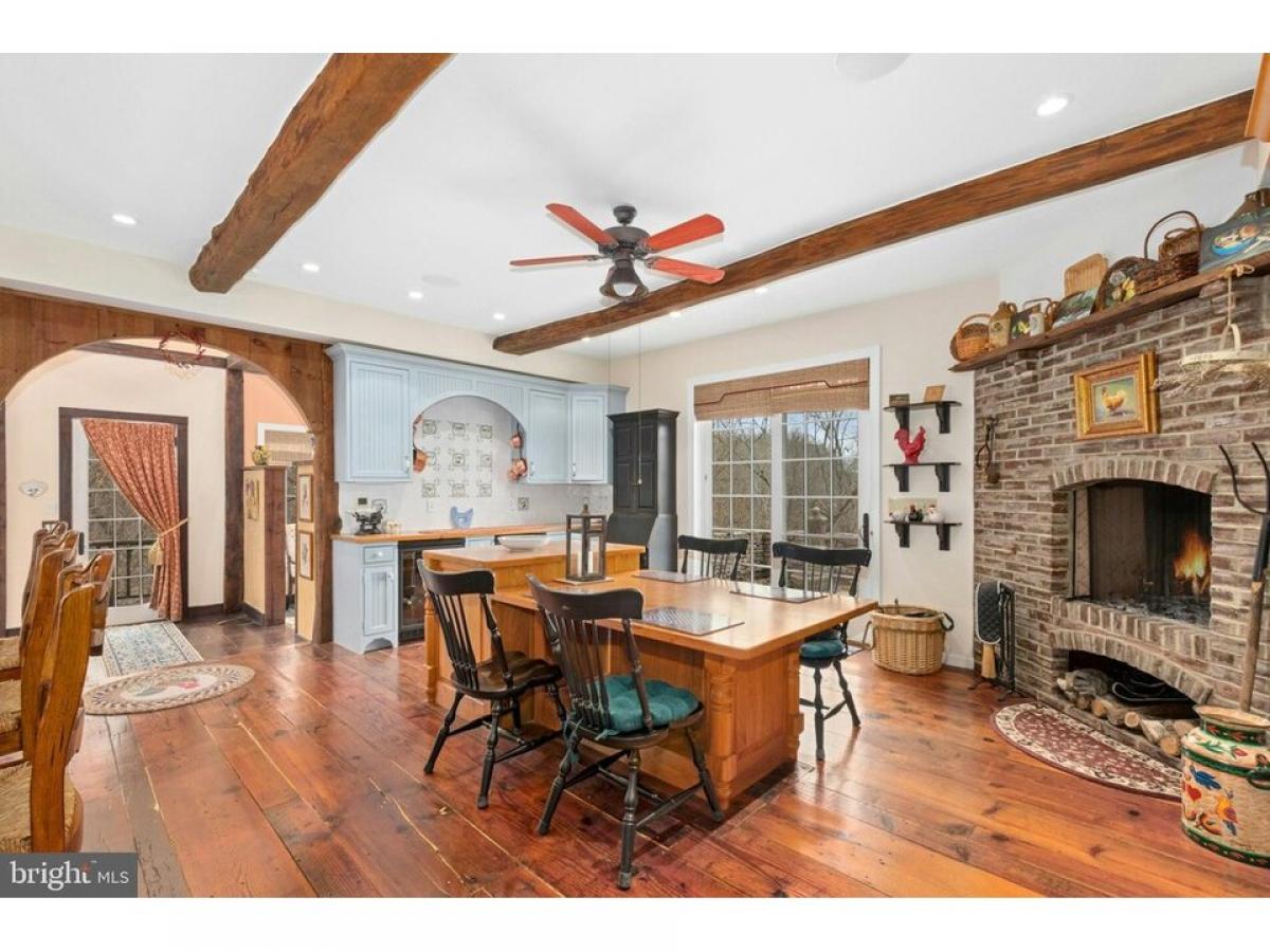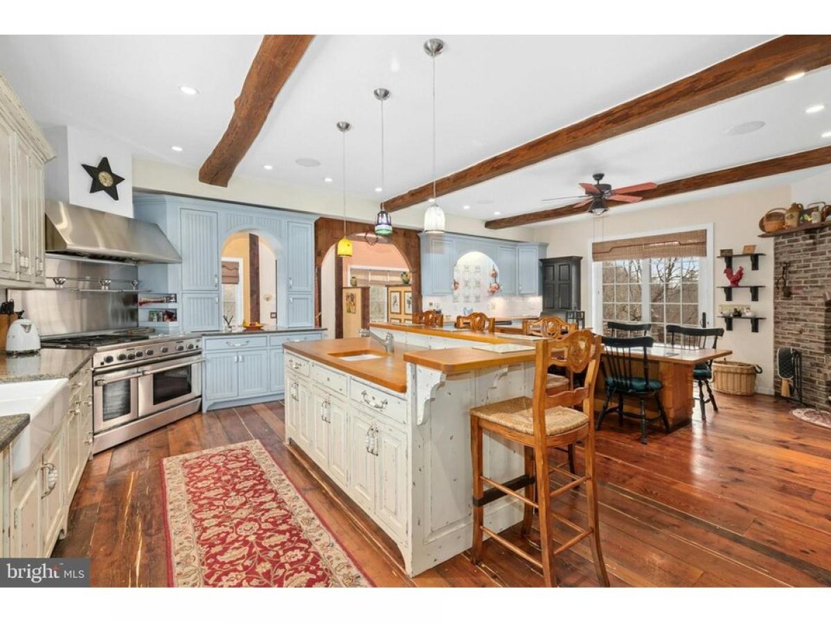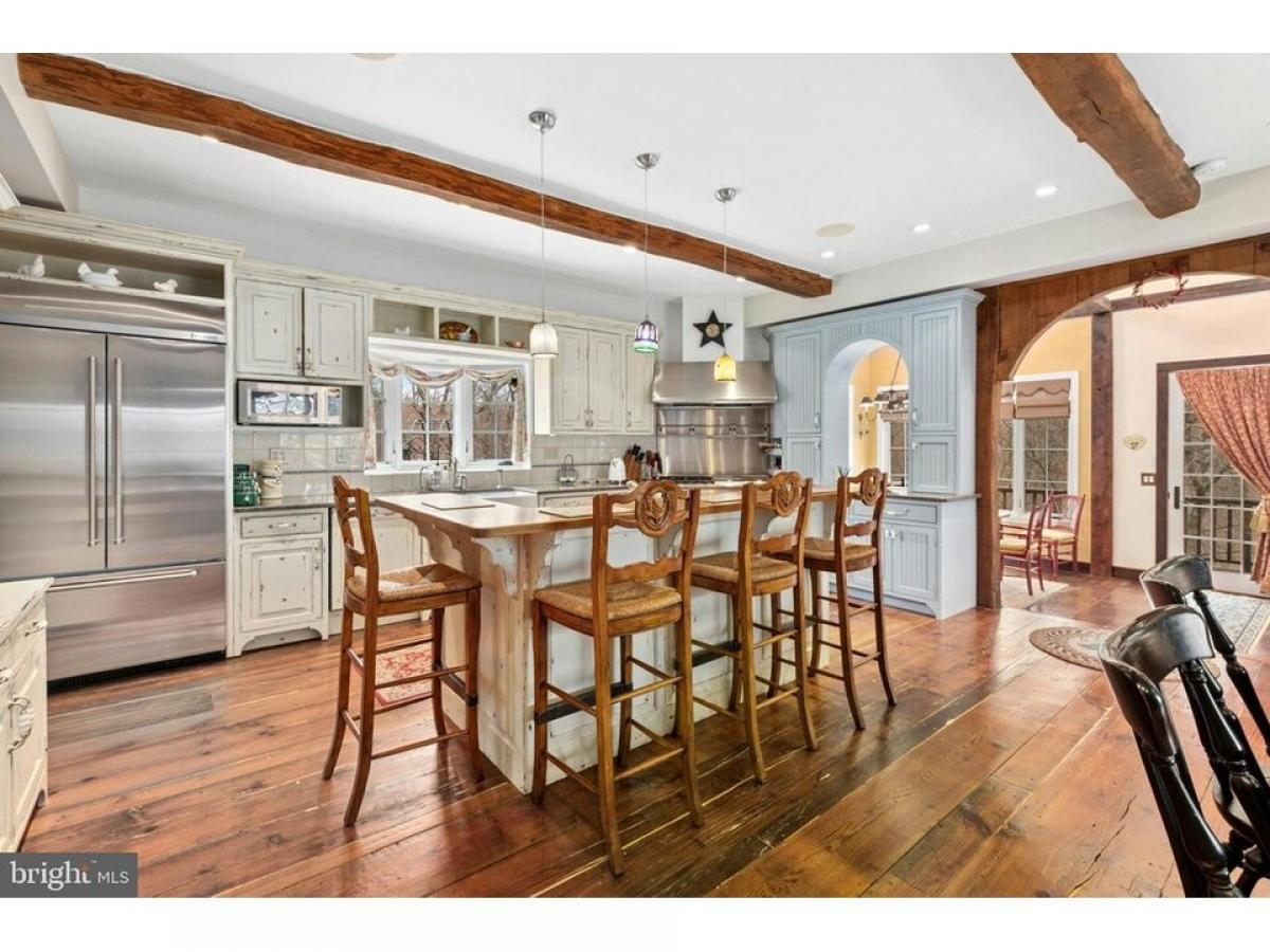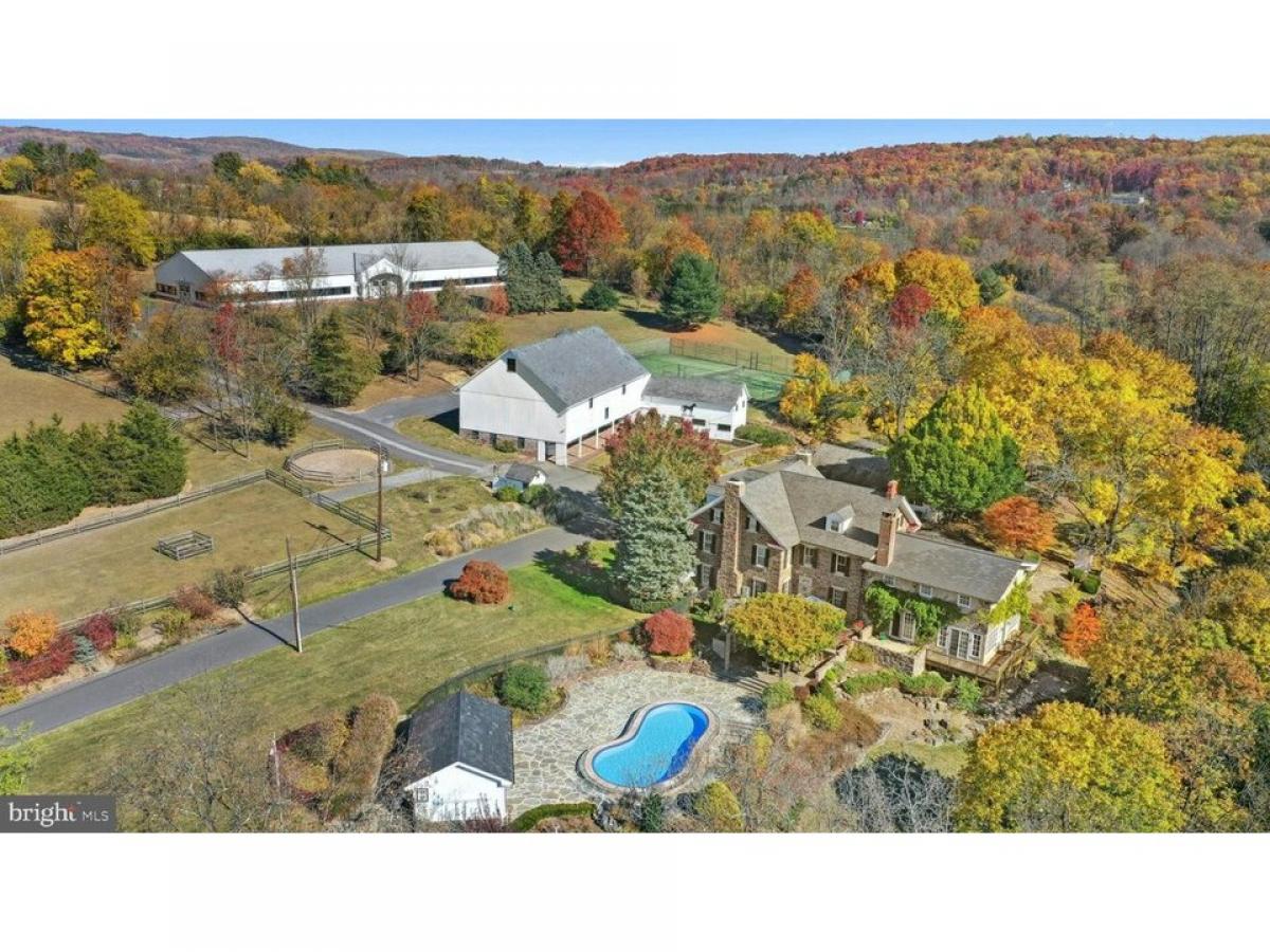 Situated amidst pastures, meadows, and hundreds of acres of preserved land, Molasses Creek Farm blends the renowned beauty of the Bucks County countryside with stunning modern enhancements. The expansive 58 acre property, set along a quiet rural road, is marked by the convergence of two pristine creeks. Built by a Revolutionary War colonel in 1795, the stone farmhouse boasts original wood floors, deep window sills, period moldings and impressive ceiling heights. The formal entry hall opens to a spacious living room, with a marble fireplace and built-ins, as well as a family room with a wood stove and surround sound entertainment. Designed with entertaining in mind, the large dining room offers built-in storage and access to the butlerrsquo;s pantry. The kitchen is a chefrsquo;s dream, with antiqued cabinetry, stainless appliances, granite and butcher block countertops, and a brick wood-burning fireplace as the focal point. The perfectly poised breakfast and sitting rooms extend this remarkable gathering space, offering superb views of the sparkling pool, wisteria covered pergola, outdoor entertaining kitchen, and terraced garden. Modern luxuries are found in bright and inviting bedrooms including a soothing primary bedroom suite with dual custom walk-in closets, laundry, full sauna and sun porch bathed in warm natural light. The en suite bath includes dual vanities, a claw foot tub, and spa shower. A second suite is on this floor, as well as two additional large bedrooms that share a hall bath. The finished third floor is an unexpected delight, with a wide sitting room, two large bedrooms, and a hall bath.The lower level includes a wine cellar along with a tasting room. State of the art equine facilities include the restored original bank barn from 1803. The tiled silo has been meticulously renovated to form the feed room. Five large stalls are fitted with metal kick plates and rubber mats, and the aisle and wash area is floored in stylish brick pavers.The heated tack room has ample space above with endless possibilities. There are five fenced pastures and a round pen. The 80rsquo; x 200rsquo; indoor riding arena built in 2010 has been designed to match the elegant style of the house and barn, with state of the art footing and screened windows on all sides to bring in the light and breezes. Lovely gardens encircle the house, pool and outside kitchen with perennial beds featuring roses, echinacea, rudbeckia, hostas, lavender, clematis, geraniums and lilies which intermingle with hollies, yews and hydrangeas. In the rose garden stands a sundial that was custom made in England. The farmerrsquo;s milk house and carriage house with antique cobblestone courtyard stand proudly as reminders of days gone by. A synthetic turf tennis court is tucked into the hillside and a variety of plum, pear, apple and crabapple trees invite one to stroll through the orchard. The entire property is solarized with the panels discreetly hidden from view, another illustration of the harmonious blend of old and new at Molasses Creek Farm. For more than 200 years passersby have admired this graceful residence and picturesque farm located just 90 minutes from Manhattan and an hour from Philadelphia. The charming shops, innovative restaurants and cultural events of the Delaware River villages are a short drive from Molasses Creek Farm.