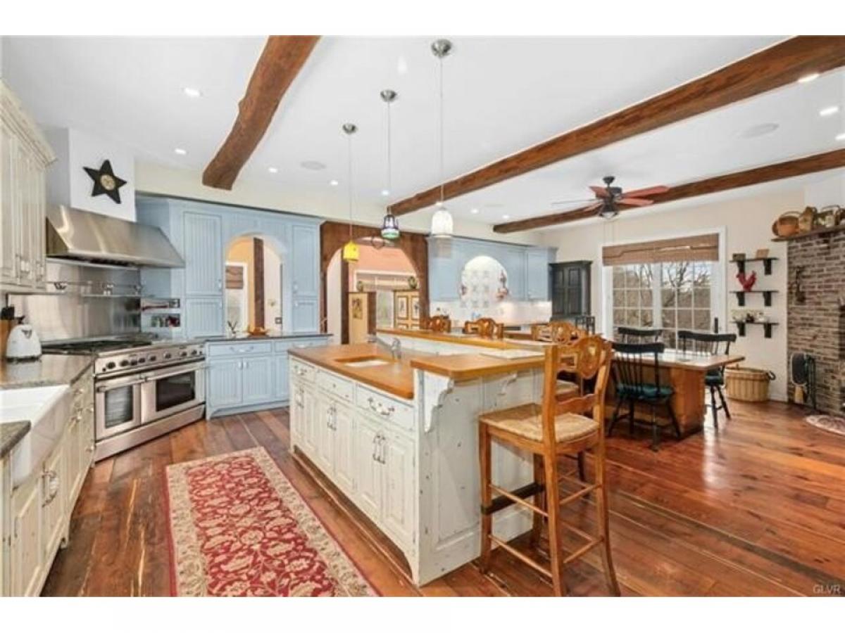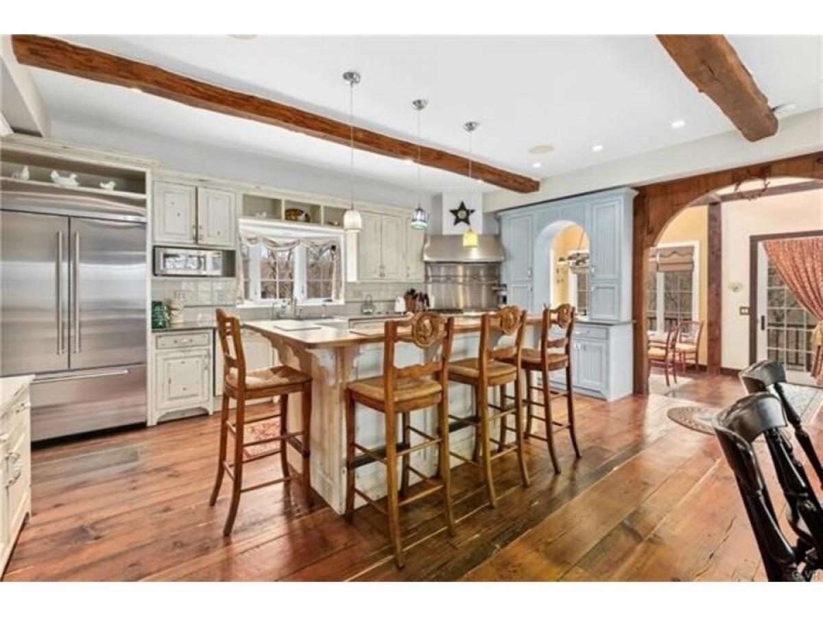 Situated amidst pastures, meadows, and hundreds of acres of preserved land, Molasses Creek Farm blends the renowned beauty of the Bucks County countryside with stunning modern enhancements. The expansive 58 acre property, set along a quiet rural road, is marked by the convergence of two pristine creeks. Built by a Revolutionary War colonel in 1795, the stone farmhouse boasts original wood floors, deep window sills, period moldings and impressive ceiling heights. With 6 bedrooms and 4.5 baths on the upper floors, the windows take advantage of the bucolic surroundings, offering views of the sparkling pool, wisteria covered pergola, outdoor entertaining kitchen, terraced garden, restored bank barn and indoor riding arena. State of the art equine facilities include the restored original bank barn from 1803. There are five fenced pastures and a round pen. The 80rsquo; x 200rsquo; indoor riding arena built in 2010 has been designed to match the elegant style of the house and barn. For more than 200 years passersby have admired this graceful residence and picturesque farm located just 90 minutes from Manhattan and an hour from Philadelphia. The charming shops, innovative restaurants and cultural events of the Delaware River villages are a short drive away.