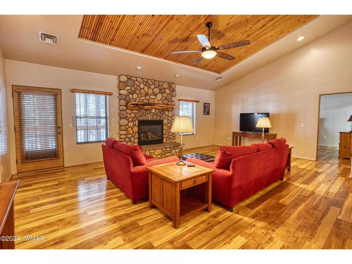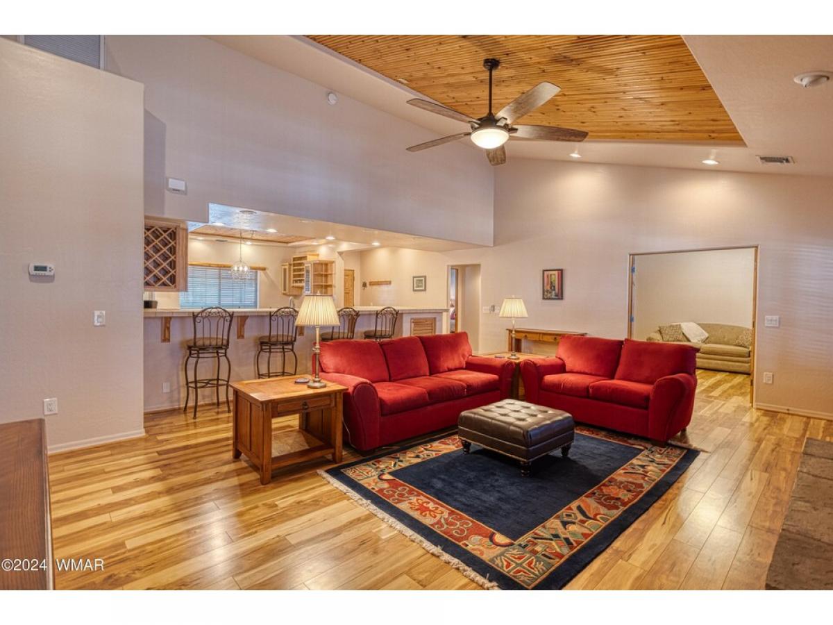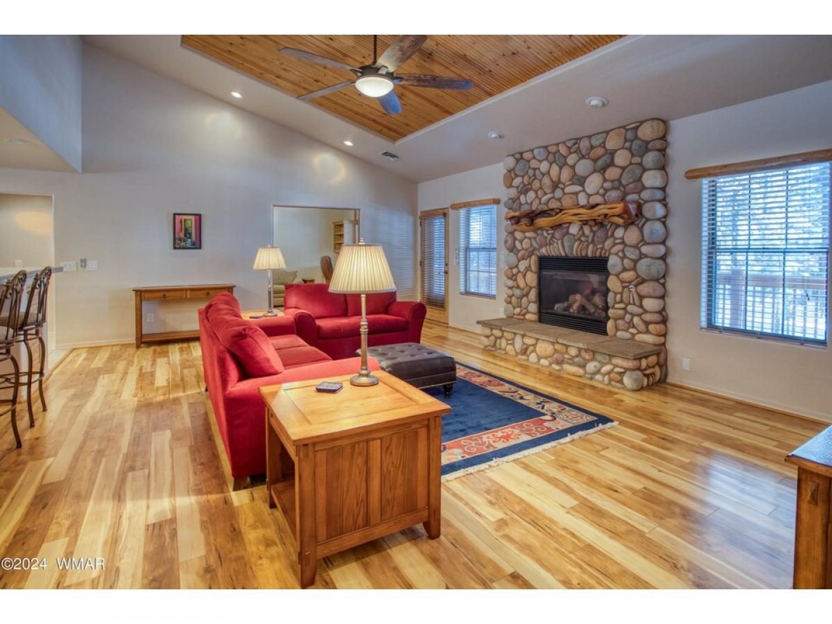 GREAT LOCATION in Pinetop Country Club. FURNISHED townhome tucked back overlooking the common area w/ tons of tall Ponderosa Pine trees. True pride of ownership in this 3 bed - 2 bath home. You are greeted with a entry that opens into a large great room, open concept, vaulted ceilings with bamboo accent, gas fireplace, huge kitchen with tons of cabinets & counterspace + stainless steel appliances. This home has a split bedroom floor plan. There is a large pantry w/ a lovely laundry room with wonderful space to work. The Master/Primary overlooks the tall pine trees with amazing privacy. The closet is huge and the bath has lots of space with 2 vanities. The 2 other bedrooms, one has a desk with a fold out couch plus a fold out twin bed. The deck is incredibly spacious - READ MORE
