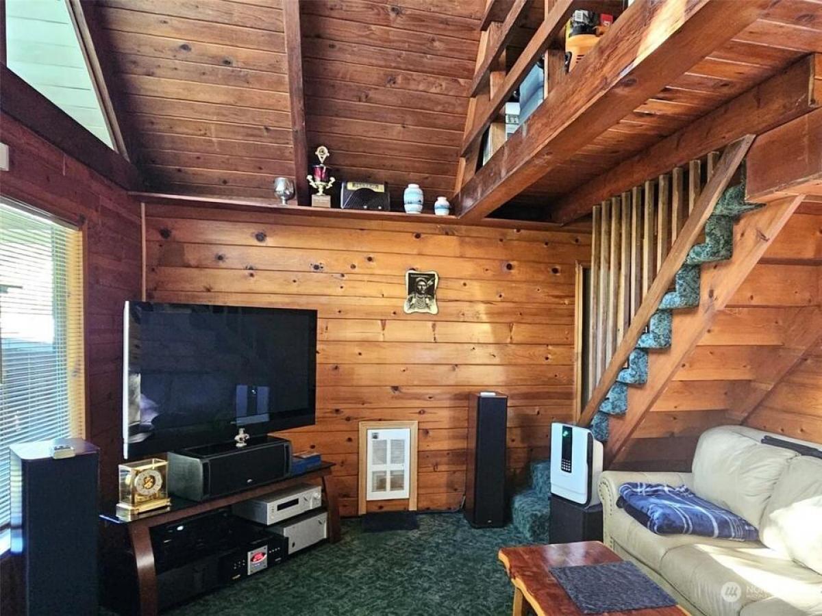 Beautiful river front property with cabin style home. Cozy one bedroom with upper loft with gorgeous views of the river. Mostly private setting with large level half acre parcel. Approximately 85 feet of river frontage. Open concept living area with high vaulted ceiling. Kitchen is right off of living room with has small eating area. Full wall of windows for great views of the river and property. Covered porch/deck in the rear off of the living room. Spacious level yard with fire pit area for outdoor entertaining or just enjoying the view. Matching outbuilding for storage and plenty of space for parking or RV parking. Great river access for entertaining or just to relax and listen to the water.