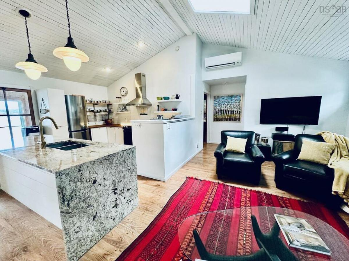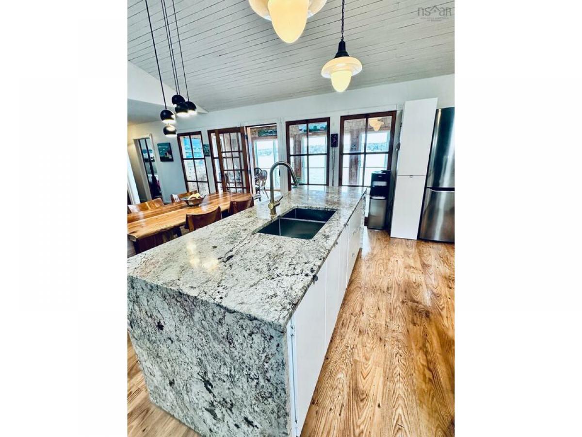 WATERFRONT - OPEN HOUSE 26 MAY 2-4 pm. Welcome to your serene oasis nestled along the picturesque shores of the tranquil LaHave river. This stunning waterfront property offers a truly harmonious blend of natural beauty, character and modern luxury. Imagine waking up everyday to the breathtaking views of the water and the sounds of nature. With an open layout and comfortable, airy feel, the living space is perfect for relaxation and entertainment with a large stone wood fireplace, large granite waterfall countertop island and high ceilings, this property invites you to enjoy peaceful moments by the water's edge or host gatherings in the most beautiful setting year-round. The main floor features an open concept kitchen, dining and the living room, a beautiful sunroom with multiple patio doors and expansive windows that frame the panoramic water vistas. There are 2 bedrooms and an office, 2 full bathrooms, great mudroom, a powder room and a single garage. Lower level provides a large bedroom, 2 storage areas and an additional single garage with a concrete ramp for boaters to store equipment and access the water. Whether you seek a peaceful retreat or a place to create lasting memories with loved ones, this riverfront paradise offers the ultimate escape.