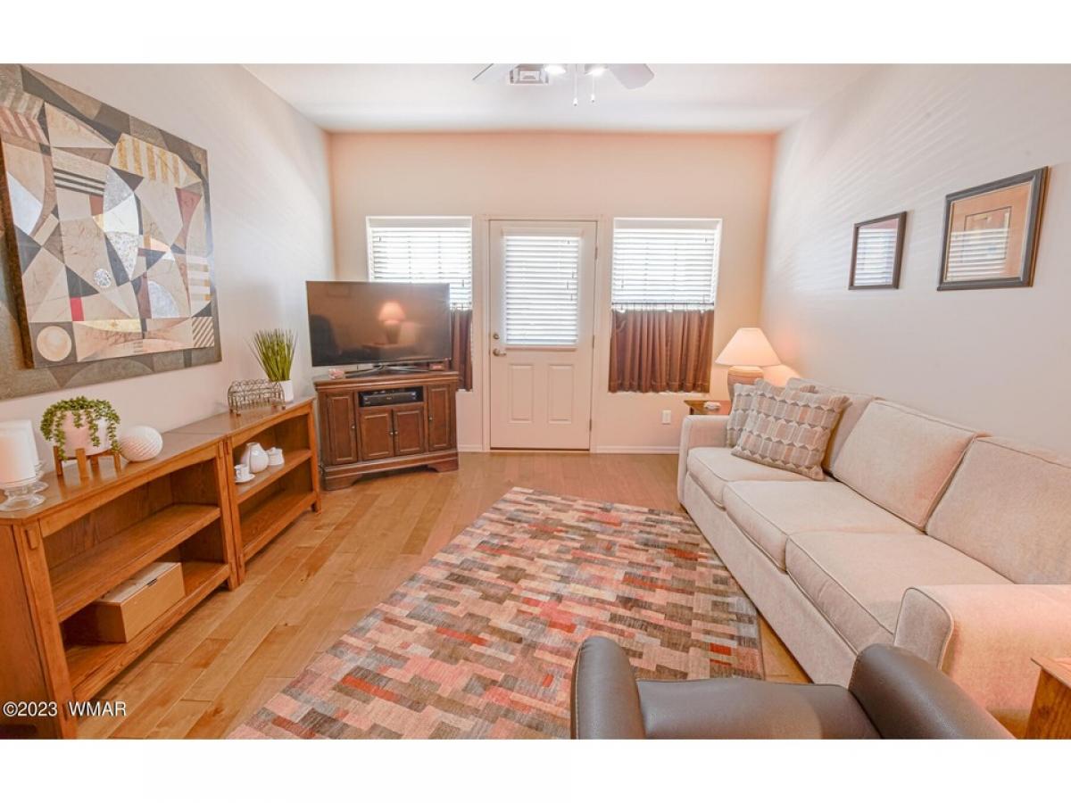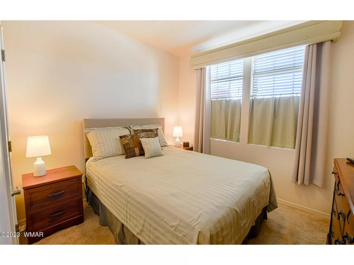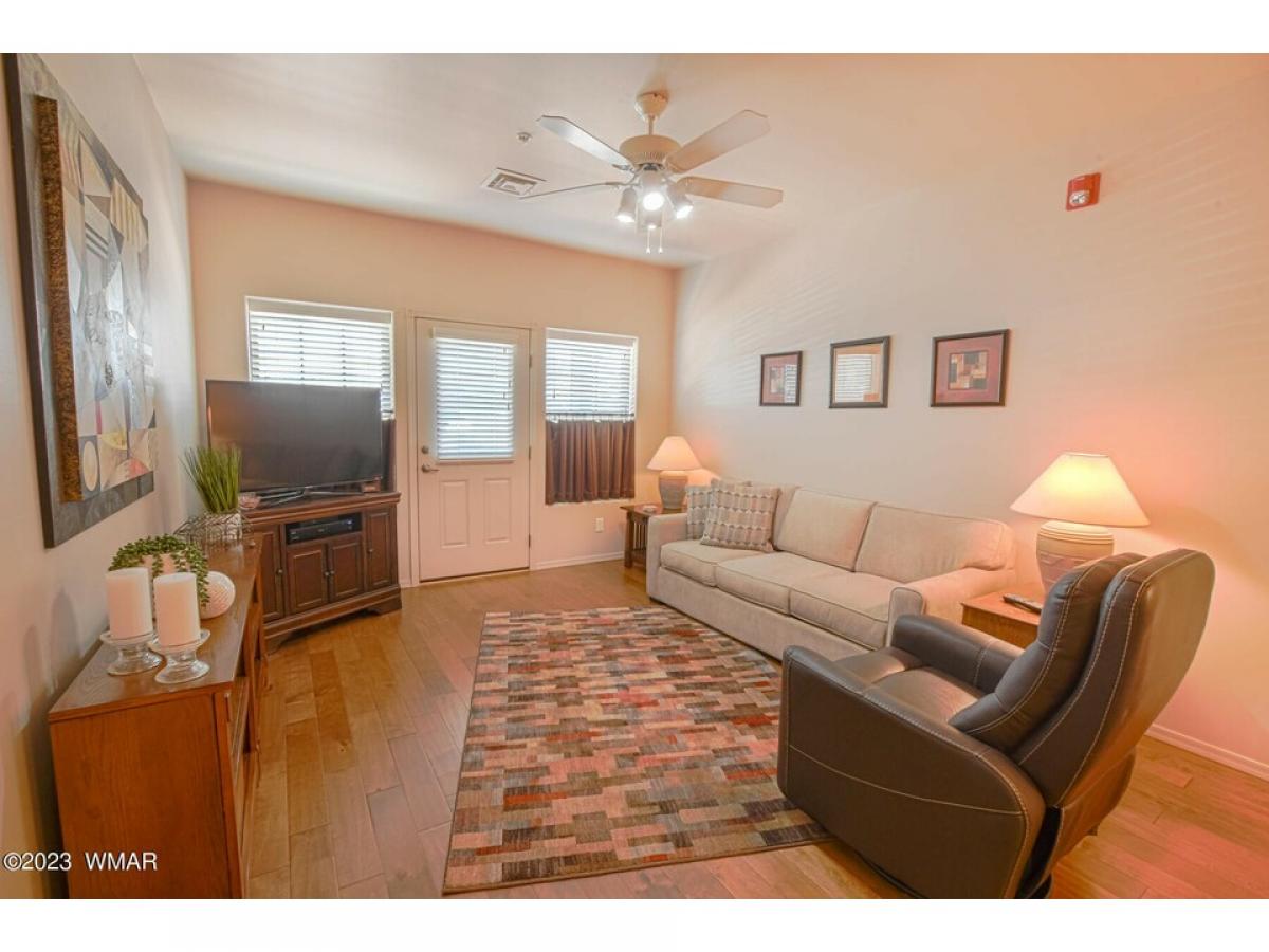 CONVENTIONAL FINANCING available on this 2 bd/1 ba. Ask for details! Get out of the heat and into the pines! Relax on the porch and watch beautiful sunsets. This spacious, immaculate condo is quiet and well-kept. Located on the ground level with no stairs. It is a turnkey furnished home that can be seasonal or full-time for affordable living. Only one owner. Join the lovely Overgaard community, many amenities built into the famous Bison Ranch. A catch and release pond, tennis, volleyball, playground, walking paths with greenbelts, professionally maintained for your enjoyment. Restaurants, general store, hair salons & shops with an old-west feel that adds to area's charm. Now you can find financing and get moved in quickly to beat the heat.