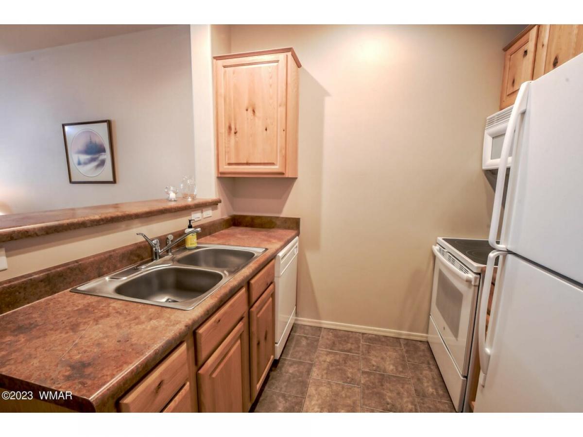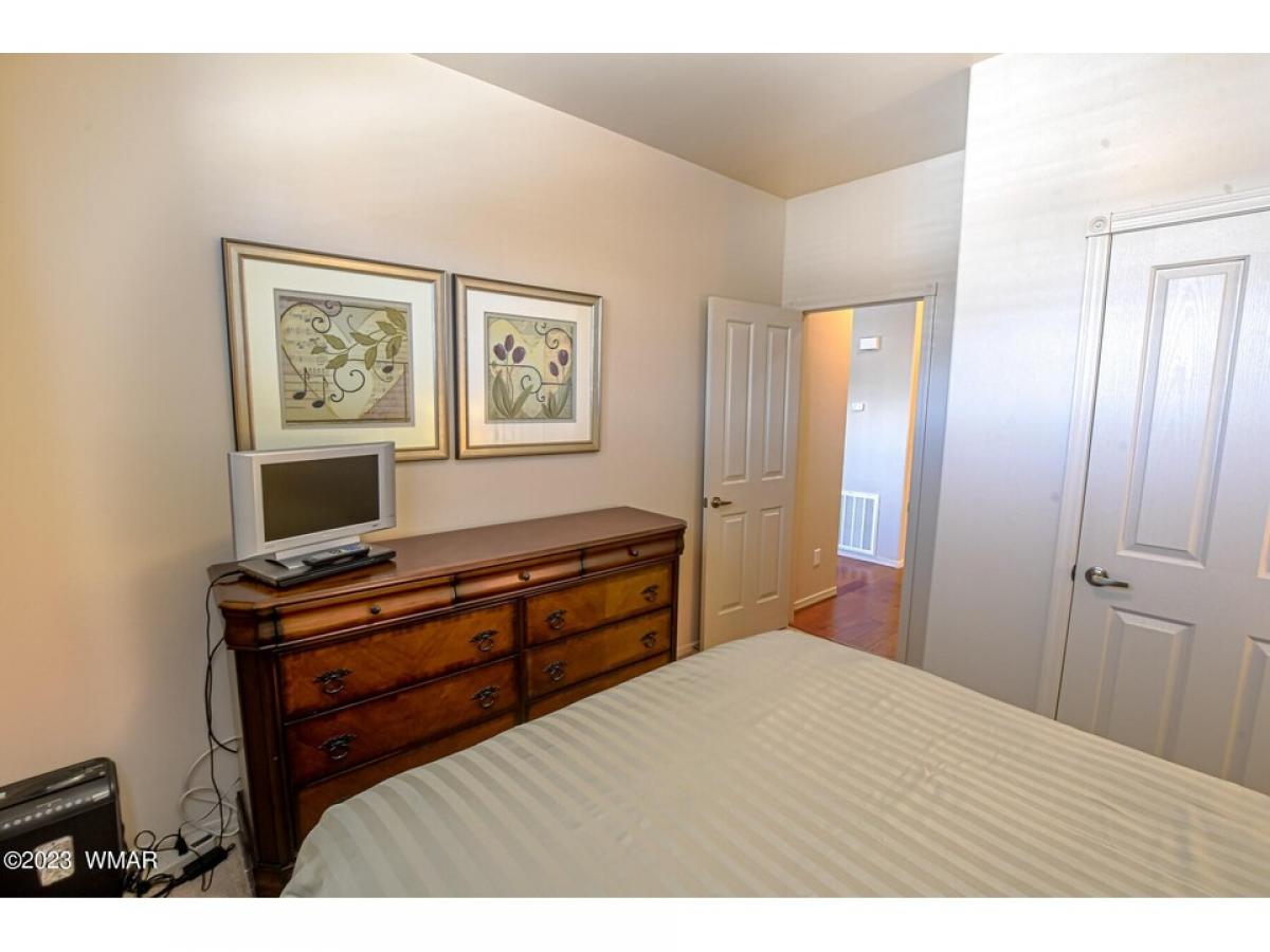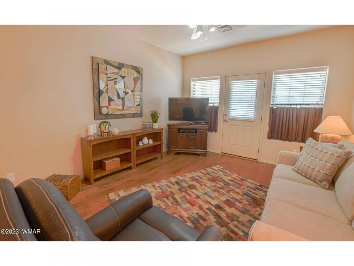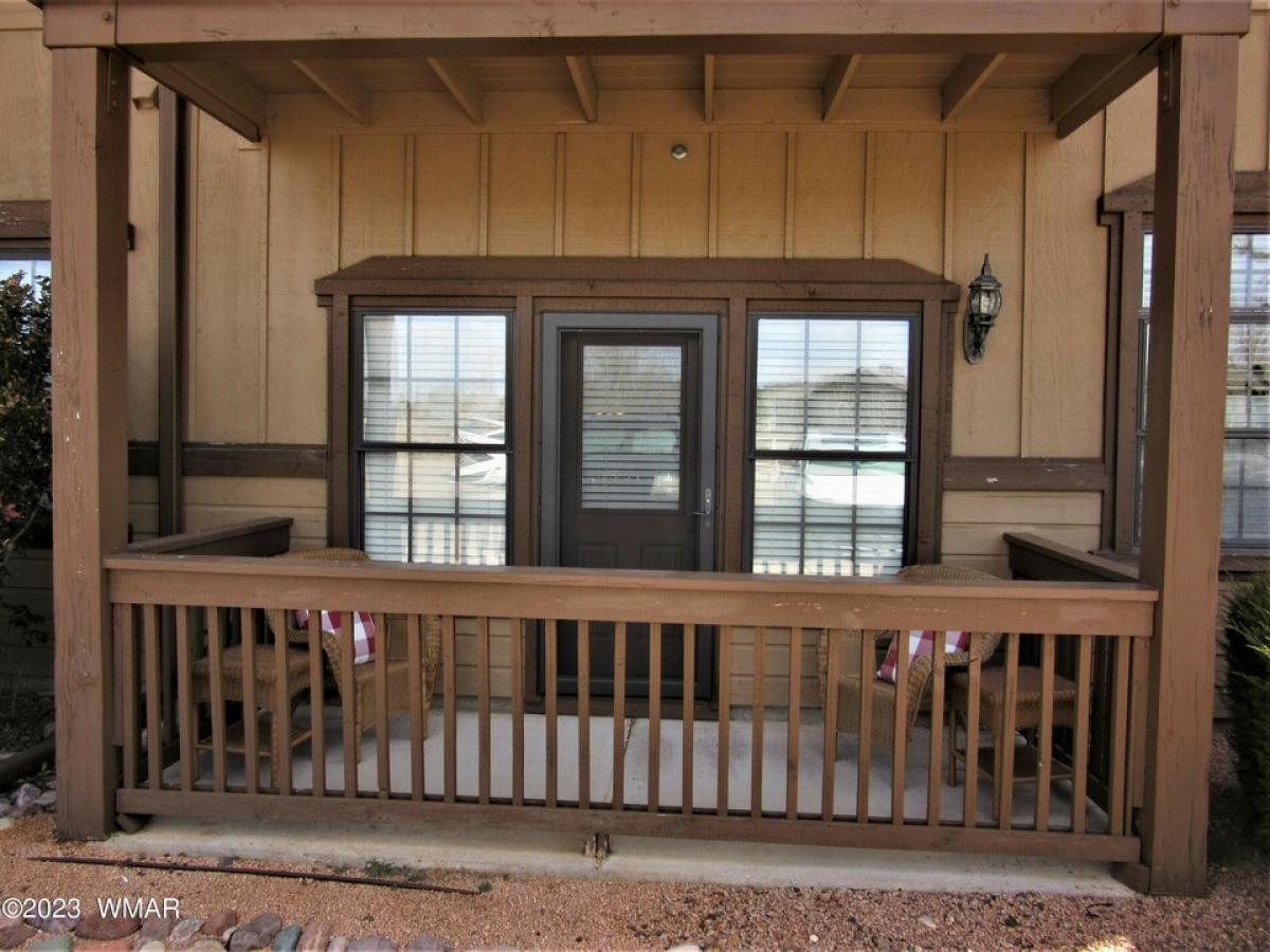 CONVENTIONAL FINANCING available on this 2 bd/1 ba. Ask for details! Get out of the heat and into the pines! Relax on the porch and watch beautiful sunsets. This spacious, immaculate condo is quiet and well-kept. Located on the ground level with no stairs. It is a turnkey furnished home that can be seasonal or full-time for affordable living. Only one owner. Join the lovely Overgaard community, many amenities built into the famous Bison Ranch. A catch and release pond, tennis, volleyball, playground, walking paths with greenbelts, professionally maintained for your enjoyment. Restaurants, general store, hair salons & shops with an old-west feel that adds to area's charm. Now you can find financing and get moved in quickly to beat the heat.
