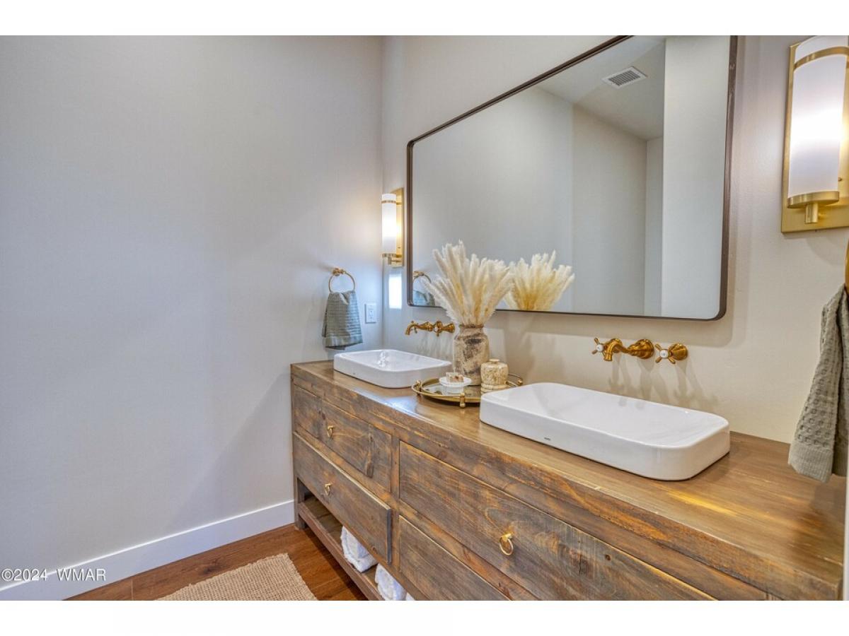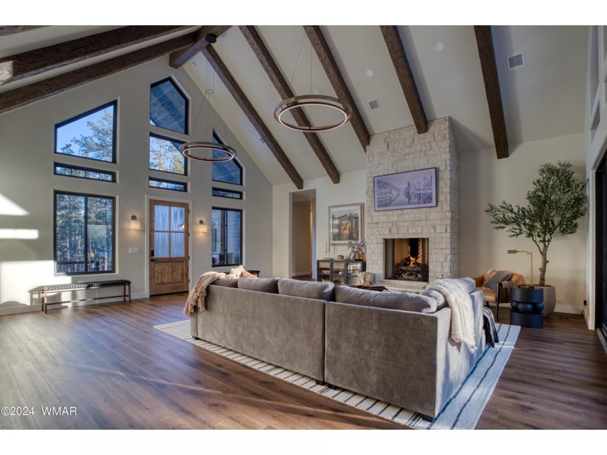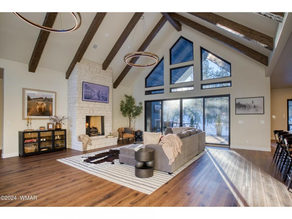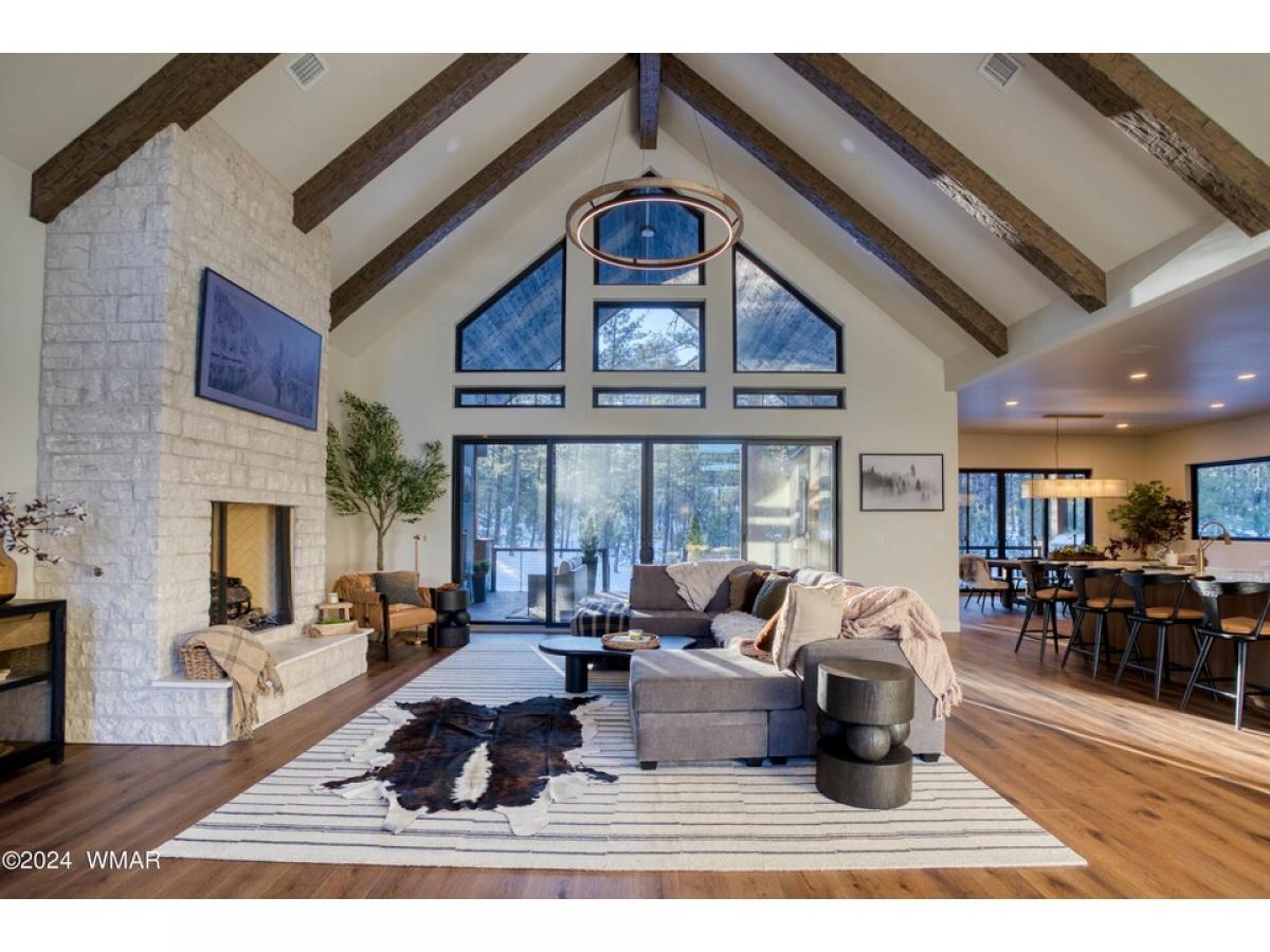 Luxury living at its finest! This 5703 Sq Ft, meticulously built Dean Allen home was finished in 2023.Throughout the home are exquisite details that blend the elevated mountain cabin design withorganic modern touches. This 5-bedroom masterpiece is nestled in a quiet back corner of the highly desirable Torreon golf community. Located at the end of a cul-de-sac and backing national forest, you are tucked away amongst the majestic ponderosa forest of the cool White Mountains. Entering the open floor plan, you will indulge in the natural light flooding in through the expansive widows. The magnificent floor to ceiling stone fireplace anchors the great room and compliments the wood beams adorning the stunning vaulted ceilings. The breathtaking view of the forest