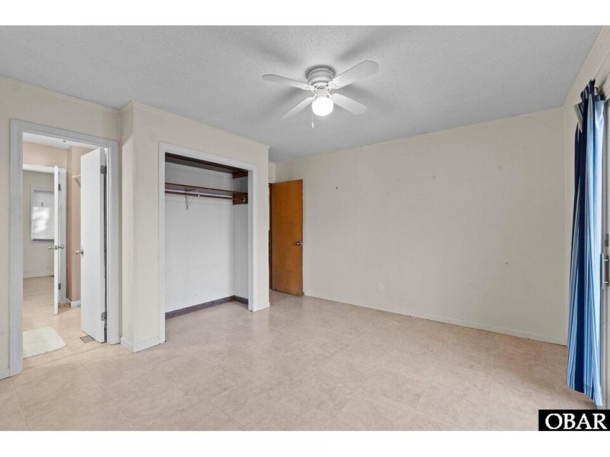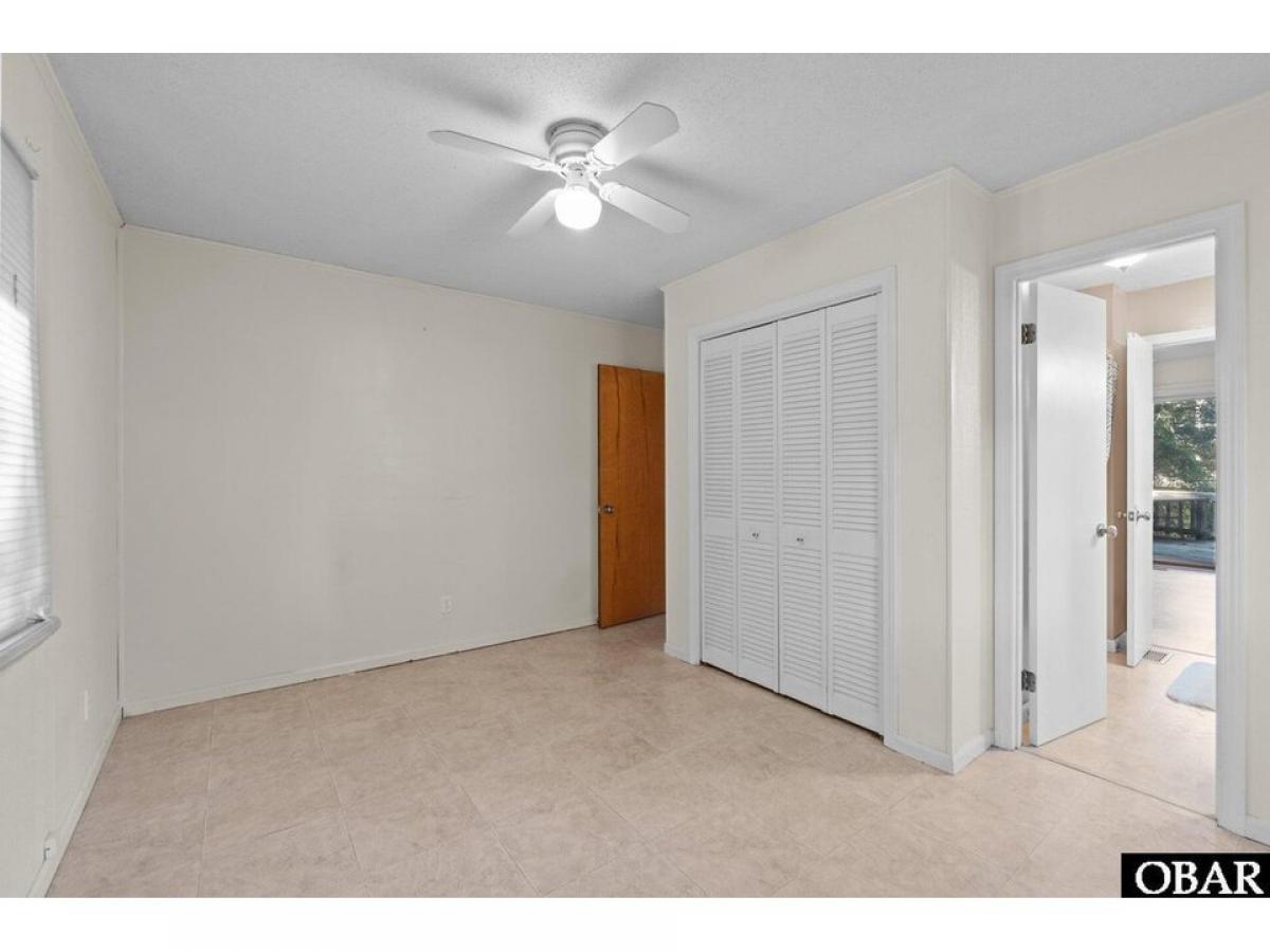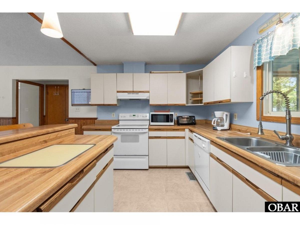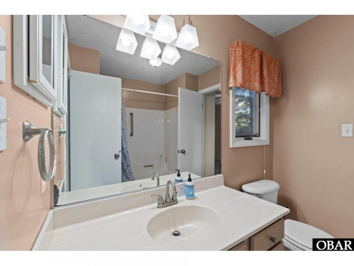 Southern Shores 4 bedroom 2 bath pleasantly tucked in the trees. The popular ldquo;Hrdquo; Plan or also known as the Beach Plan. Open floorplan with a nice kitchen with convenient eat-at bar. A large living area with cathedral ceiling with exposed beams and four skylights, attractive wainscoting, built-in cabinet with shelves and an attractive brick fireplace. Four bedrooms with 2 bedrooms sharing a bath conveniently located on each side of the living area. Two of the bedrooms have their own sliders out to the back deck. Relax on the private 620 square foot back deck surrounded by beautiful trees. Or you could step out front and enjoy the inviting, spacious 22 X 12 screened porch with cathedral ceiling and ceiling fan. Spacious under house parking and 458 square feet of ground floor storage and an outside shower. Large, nicely wooded 18,170 square foot 115 X 159 X 115 X 157 lot gives you plenty of options. Needs paint inside and some TLC to make this a gem. Sold ldquo;As Isrdquo;. Agent and owner do not guarantee the accuracy of the Lighthouse dimensions and floorplans. See associated documents for County As-Built Survey, Permits, Insurance Info, and Floorplans. Combo lockbox, EZ to Show!!!