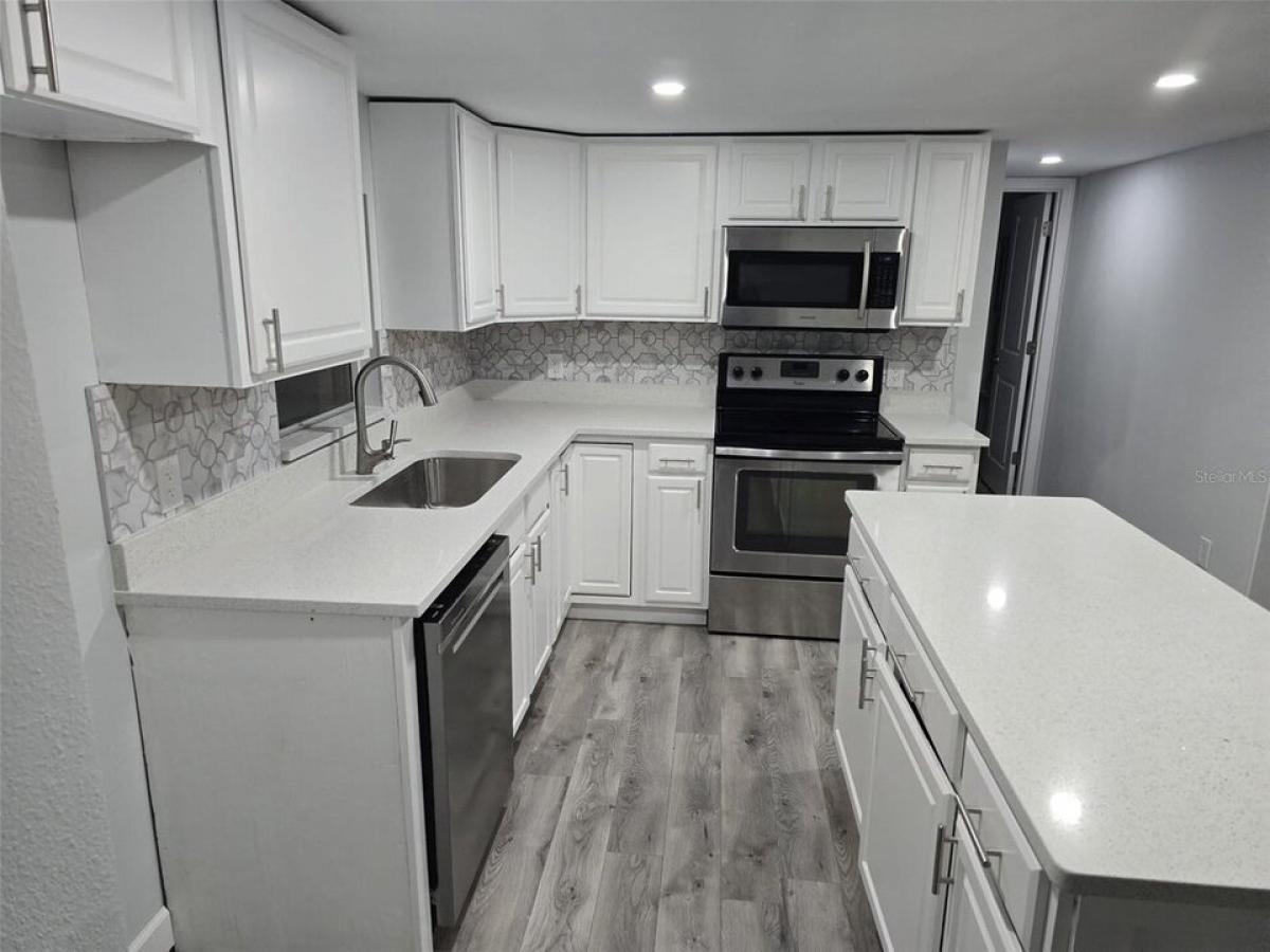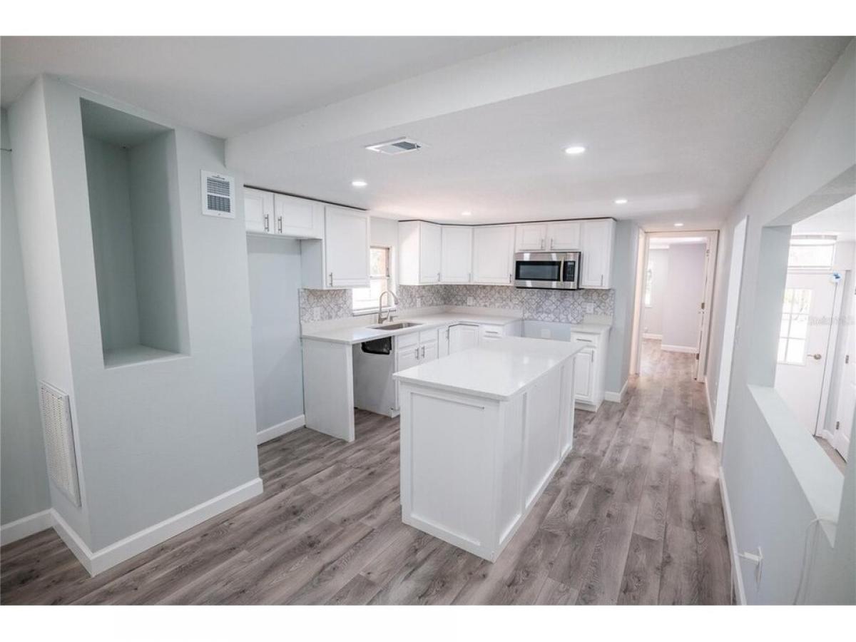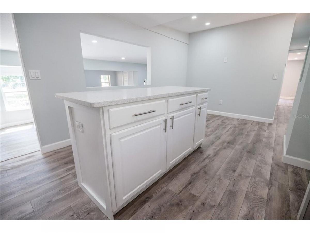 For a complete REAL walk through of this home find the Video or Virtual Tour button somewhere on this page! Beautifully renovated brick home featuring three spacious bedrooms, two and a half updated bathrooms, and a versatile home office, all nestled on a generous half-acre lot. Step inside to a light-filled, airy interior with waterproof wood laminate plank flooring throughout and fresh, modern paint that creates a warm and inviting atmosphere. The open-concept living room offers an ideal space for unwinding after a long day or gathering with family and friends. The stylish kitchen is a chefrsquo;s dream, complete with a large center island adorned with gleaming quartz countertops, crisp white cabinetry, and stainless steel appliances including a range, dishwasher, and microwave mdash; perfect for cooking or entertaining. The expansive primary suite offers a peaceful retreat with ample closet space and a private en-suite bath featuring a contemporary vanity and a beautifully tiled walk-in shower. Two additional generously sized bedrooms share a full bathroom with a tile-surround tub and shower combination. Convenience meets function with an indoor laundry room equipped with storage cabinetry and a tankless water heater. The detached garage includes an attached workshop area, offering endless possibilities for customization mdash; whether for hobbies, storage, or future expansion. The oversized lot provides plenty of room to store your boats, RVs, trailers, and other recreational gear, making it ideal for outdoor enthusiasts. Located in Lady Lake mdash; known as the ldquo;Home of Lakes and Sunshinerdquo; mdash; yoursquo;ll enjoy access to pristine lakes, scenic parks, renowned golf courses, and an array of outdoor and indoor activities. Quaint antique shops, delightful restaurants, and convenient shopping options are just minutes away. If yoursquo;re seeking a private, serene retreat with space to live, work, and play, this is the perfect place to call home!