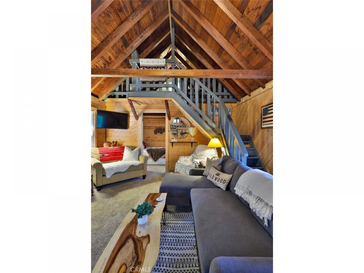 Enjoy excellent off-street parking with sturdy cement steps leading down to the welcoming front entrance. A charming cement patio provides the perfect spot to sip your morning coffee while soaking in the mountain ambiance. Step inside this cozy mountain retreat and instantly feel at home with its open beam ceiling and rustic tongue-and-groove woodwork, creating the perfect cabin atmosphere. A wood-burning fireplace adds warmth and charm, ideal for snowy winter nights. This home features one bedroom and a full bath with a bathtub, plus two additional sleeping loftsmdash;one with two twin beds and the other with a queenmdash;perfect for hosting guests or renting as a vacation getaway. Accommodating up to eight guests, there#039;s plenty of space for relaxation. The partially fenced backyard offers ample room to enjoy the outdoors. Conveniently located near town and Lake Gregory, you#039;ll have easy access to year-round fishing, scenic walking trails, and fun summer activities. This property also comes fully furnished. Recent updates include energy-efficient windows, and the roof is approximately four years old. Don#039;t miss out on this charming mountain retreat!