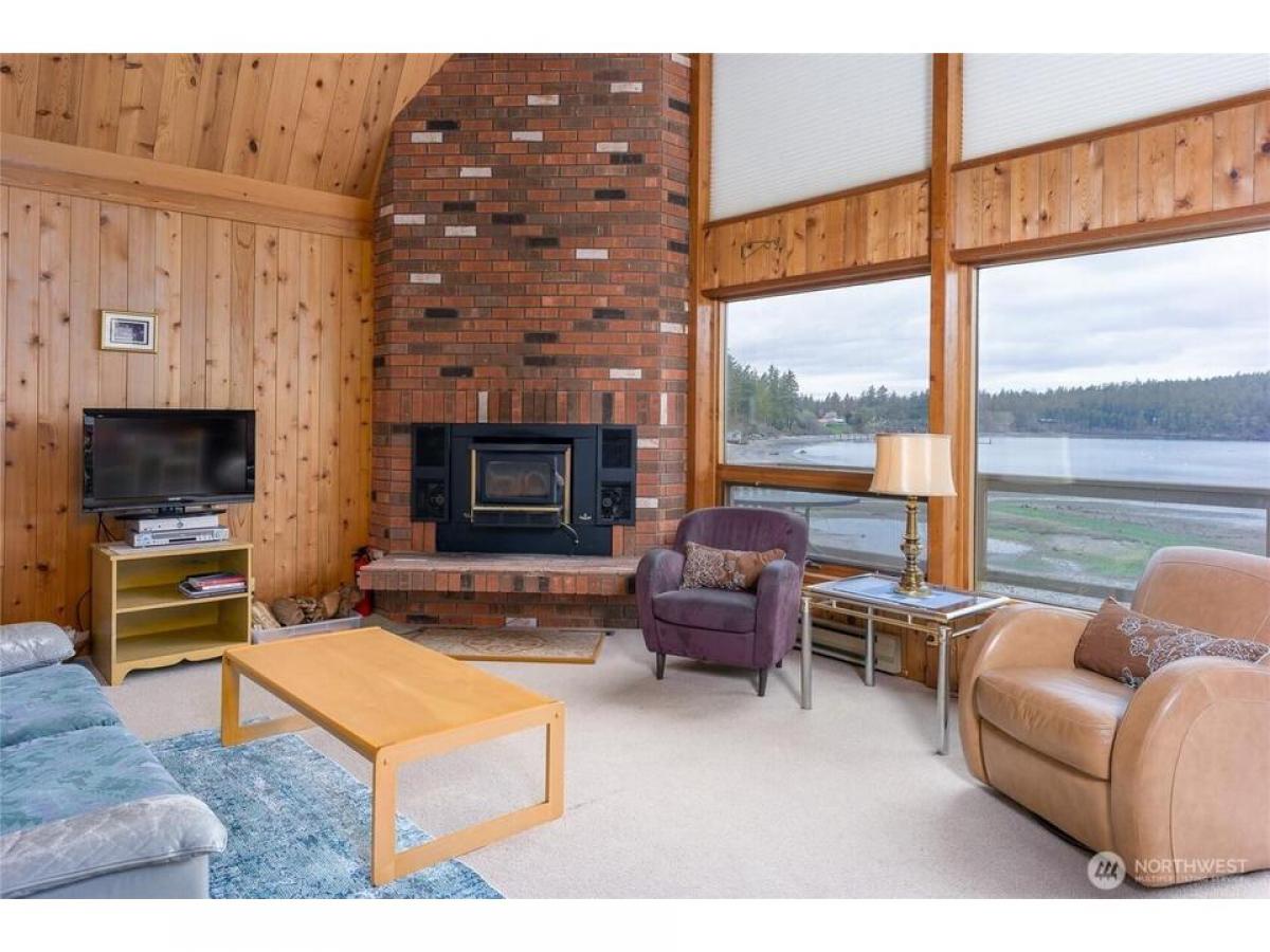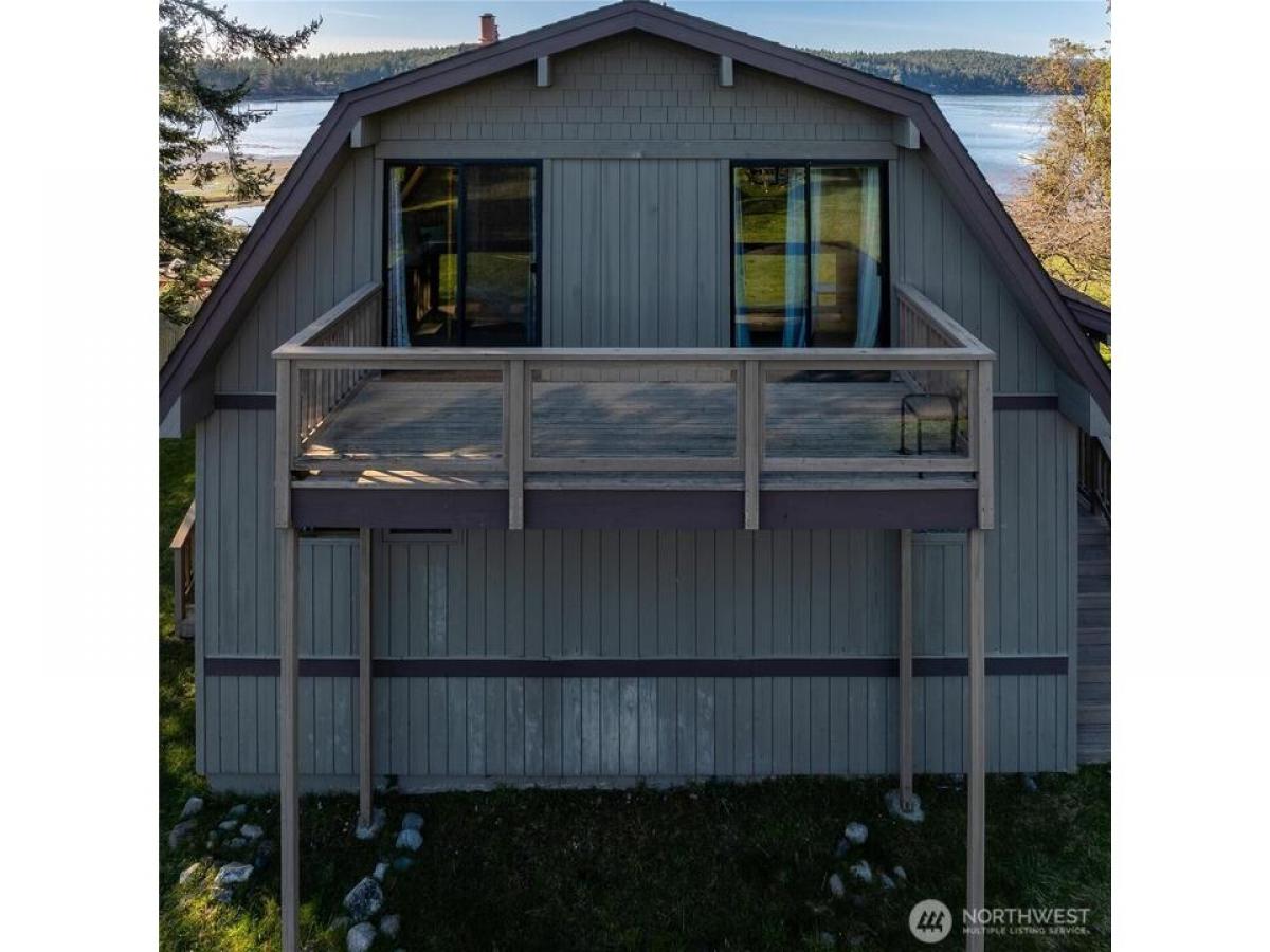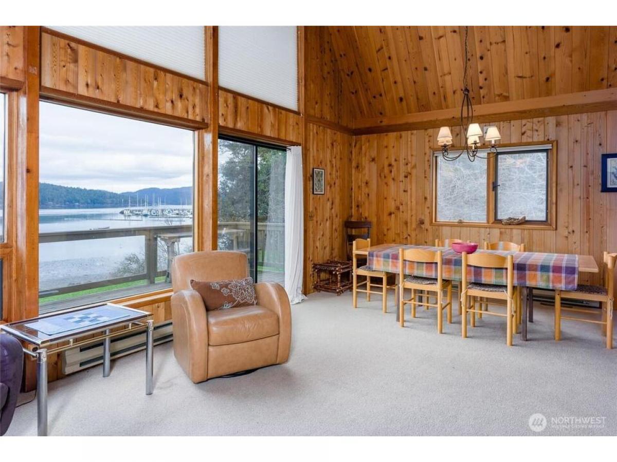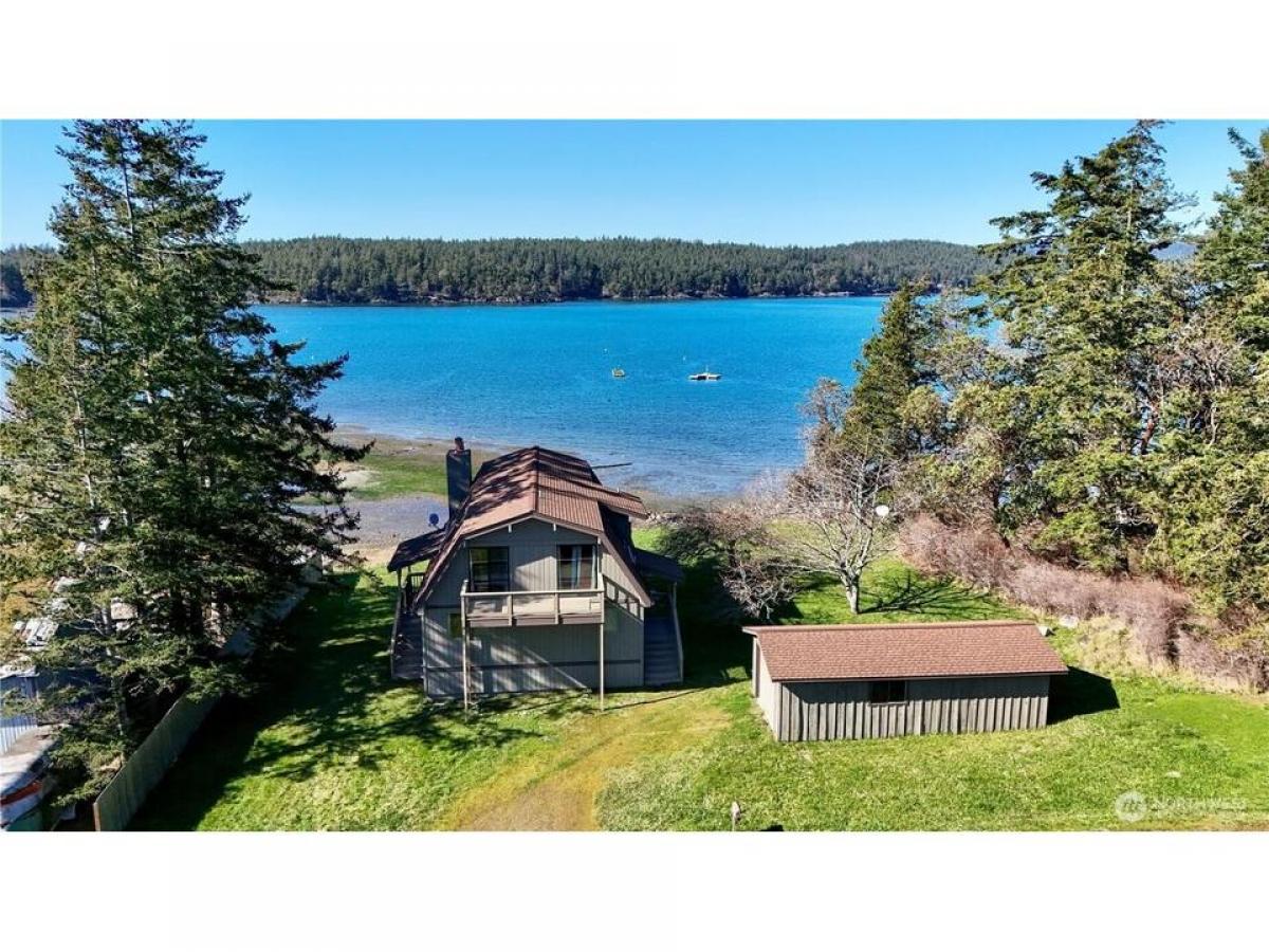 Beachcomb, boat, and birdwatch at this waterfront cedar home with midcentury cabin vibes on Lopez Island. Enjoy an unobstructed view of Shoal Bay, Spencer's Landing Marina, and all the summer sunsets from the great room and main deck of the 2582 sf house with a mooring buoy and private beach: 93 ft of NW-facing waterfront and 75 ft of private tidelands. Two bedrooms, two full baths, large bonus room on main level, finished daylight basement, new water heater, renovated kitchen with newer appliances and washer/dryer, two woodstoves, fruit trees, and garage. The upper deck and bedrooms overlook Swifts Bay. Convenient location around the corner from the marina, 2 miles to the ferry, and close to the village, parks, trails, and more.