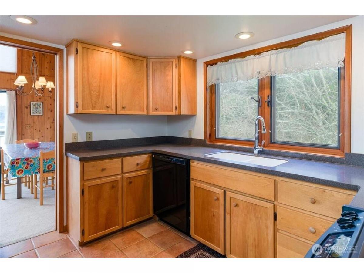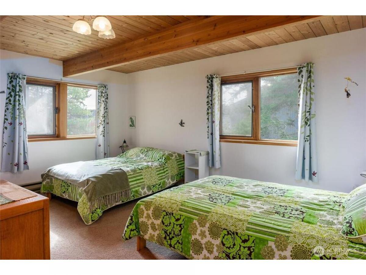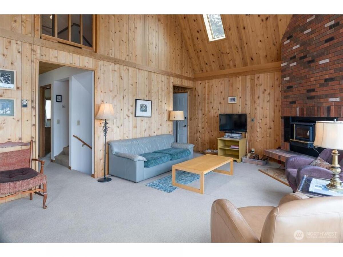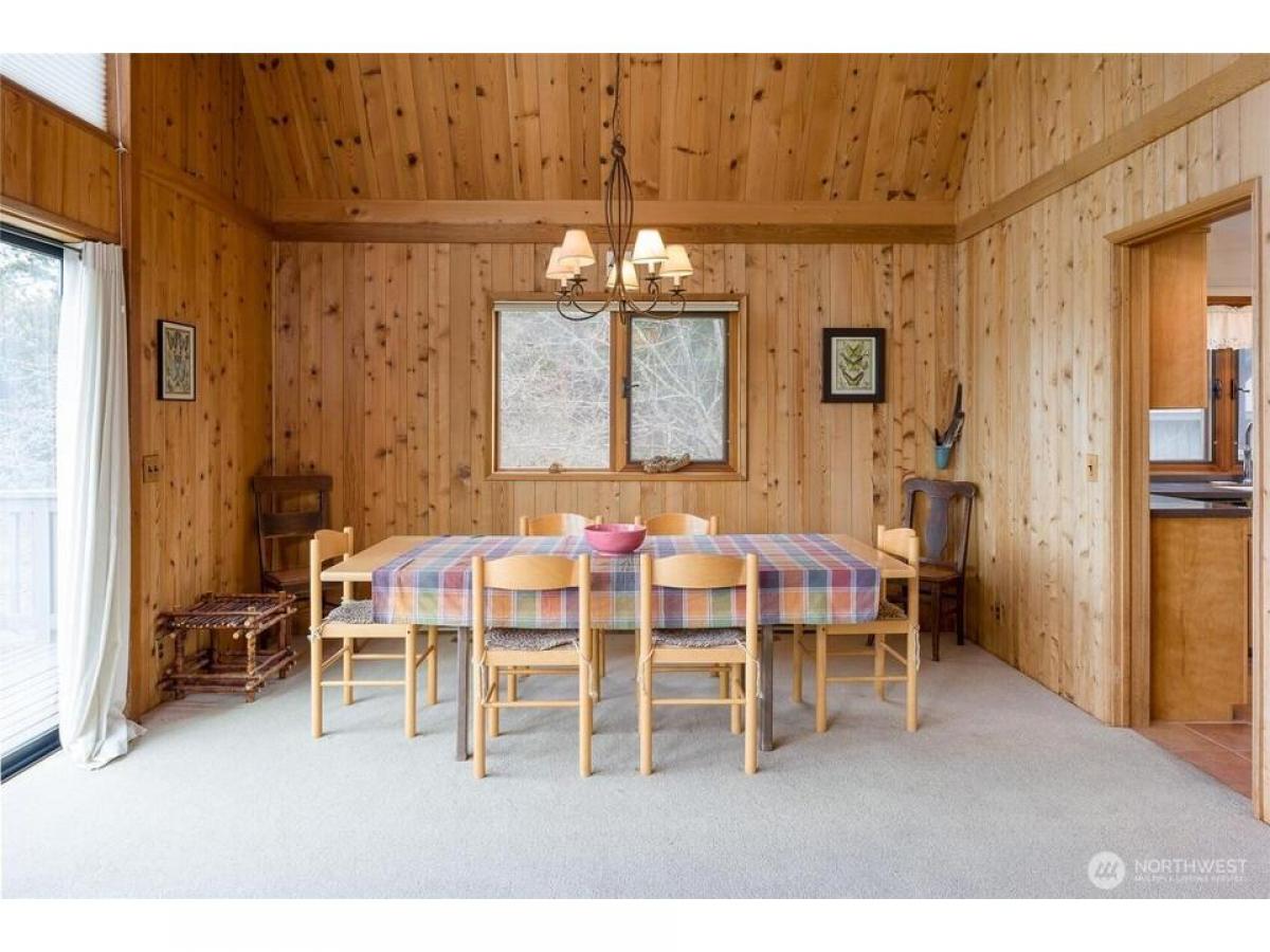 Beachcomb, boat, and birdwatch at this waterfront cedar home with midcentury cabin vibes on Lopez Island. Enjoy an unobstructed view of Shoal Bay, Spencer's Landing Marina, and all the summer sunsets from the great room and main deck of the 2582 sf house with a mooring buoy and private beach: 93 ft of NW-facing waterfront and 75 ft of private tidelands. Two bedrooms, two full baths, large bonus room on main level, finished daylight basement, new water heater, renovated kitchen with newer appliances and washer/dryer, two woodstoves, fruit trees, and garage. The upper deck and bedrooms overlook Swifts Bay. Convenient location around the corner from the marina, 2 miles to the ferry, and close to the village, parks, trails, and more.