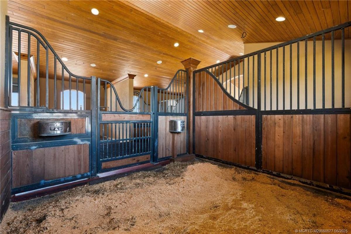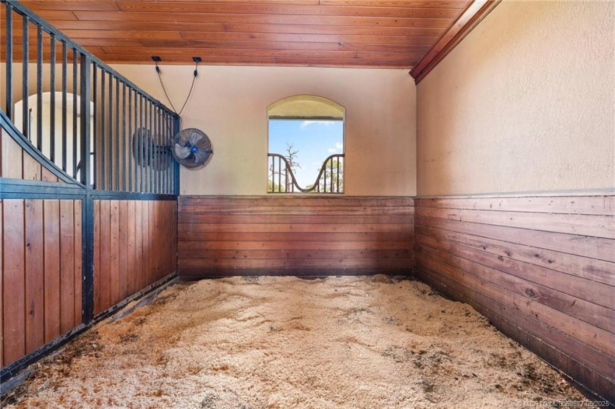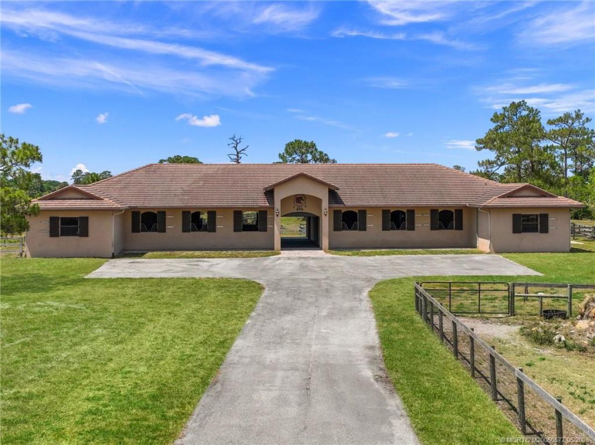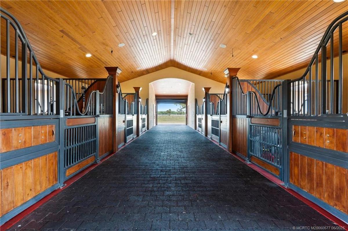 Beautifully desіgned "Wеllingtοn" inѕріred CBS 10-stall barn fеaturіng a 2x6 truss system, 3/4 plywood roof with durable flat tile, impact windows, and a complete shutter system for added protection. Equipped with Nelson automatic waterers and feeding bowls. Center aisle showcases rubber interlocking pavers and includes multiple wash racks. The property features a luxurious one-bedroom, one-bath owner’s apartment with high-end finishes, as well as groomsmen’s quarters with a full kitchen, bath, and Murphy bed. Additional amenities include an office with a laundry room, a lounge with a full bath and individual lockers. Set on 20 acres with seven well-maintained paddocks, utility barn with workshop and storage space, and two additional stalls with automatic waterers.Three picturesque ponds enhance the serene setting. This turnkey equestrian estate blends functionality, comfort, and elegance for both horses and humans. Additional building pad in place to design and build your dream home.