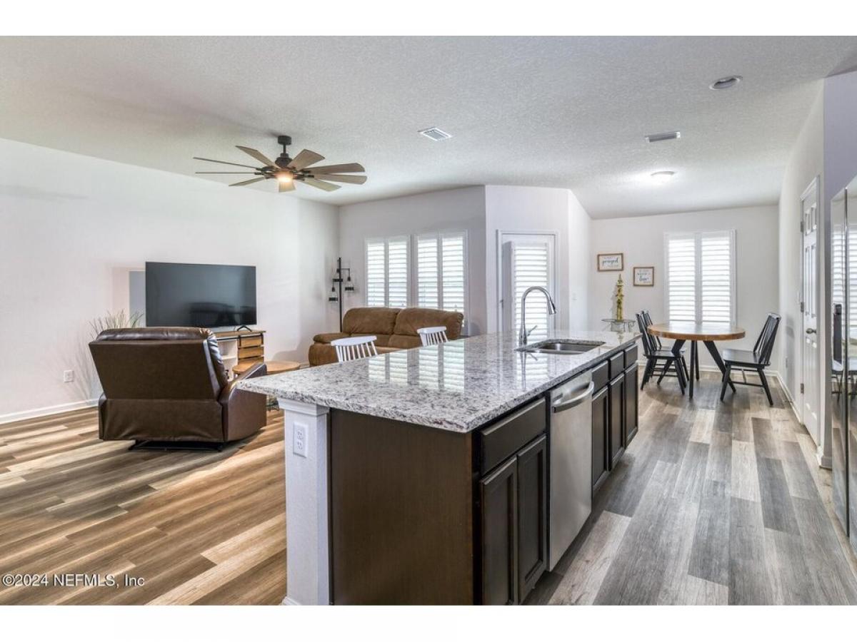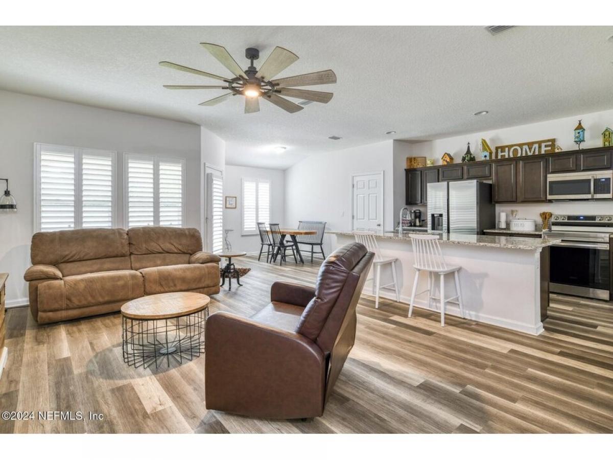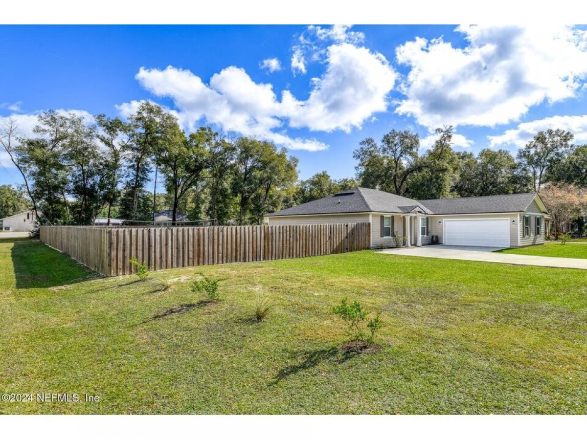 Gorgeous 4 bedroom 2 bath home in The Fairways on 1/2 acre corner lot! This like-new home features an open floor plan with 9 ft ceilings and plantation shutters throughout. The large Great room has luxury vinyl plank flooring, upgraded lighting fixtures and lots of natural light. The kitchen showcases nice cabinetry, an oversized island, stainless appliances and beautiful granite countertops. A split floor plan offers a spacious owner#039;s suite and the attached bath has dual vanities, separate water closet, granite countertops and a big walk-in closet. The 3 additional bedrooms share a spacious hall bath with two sinks and tub/shower combo. Inside laundry room includes the washer and dryer. The huge privacy fenced yard is awesome for backyard games, bar-b-ques and offers pets room to roam. Attached 2 car side entry garage, covered back lanai and wide driveway for extra parking. Located close to the Palatka Golf Course, Ravine Gardens and near to up and coming downtown Palatka.
