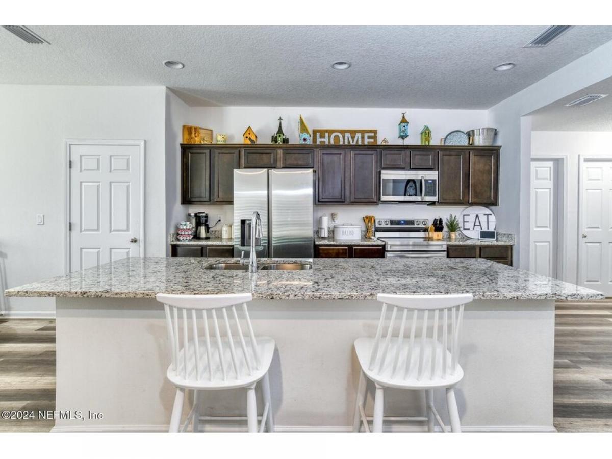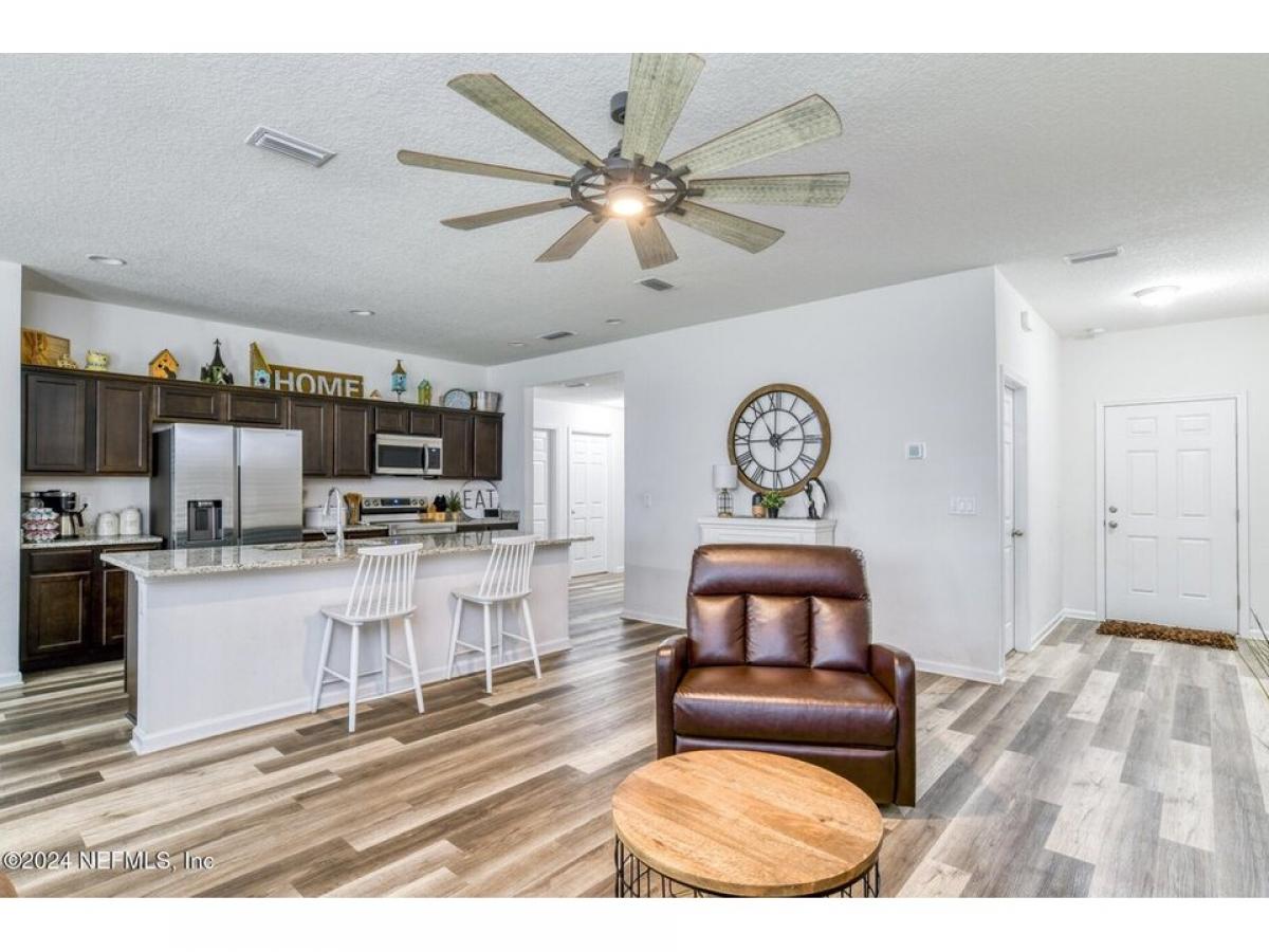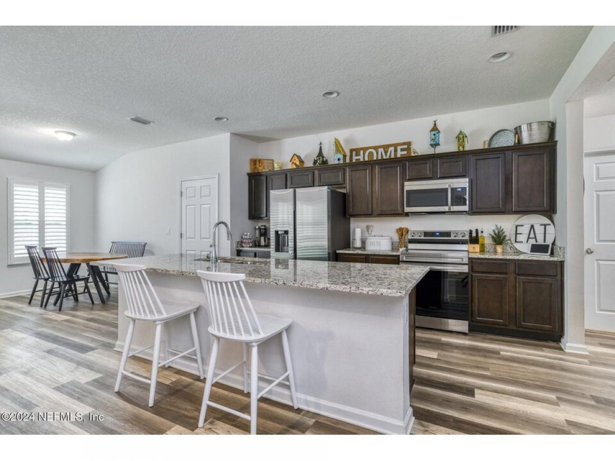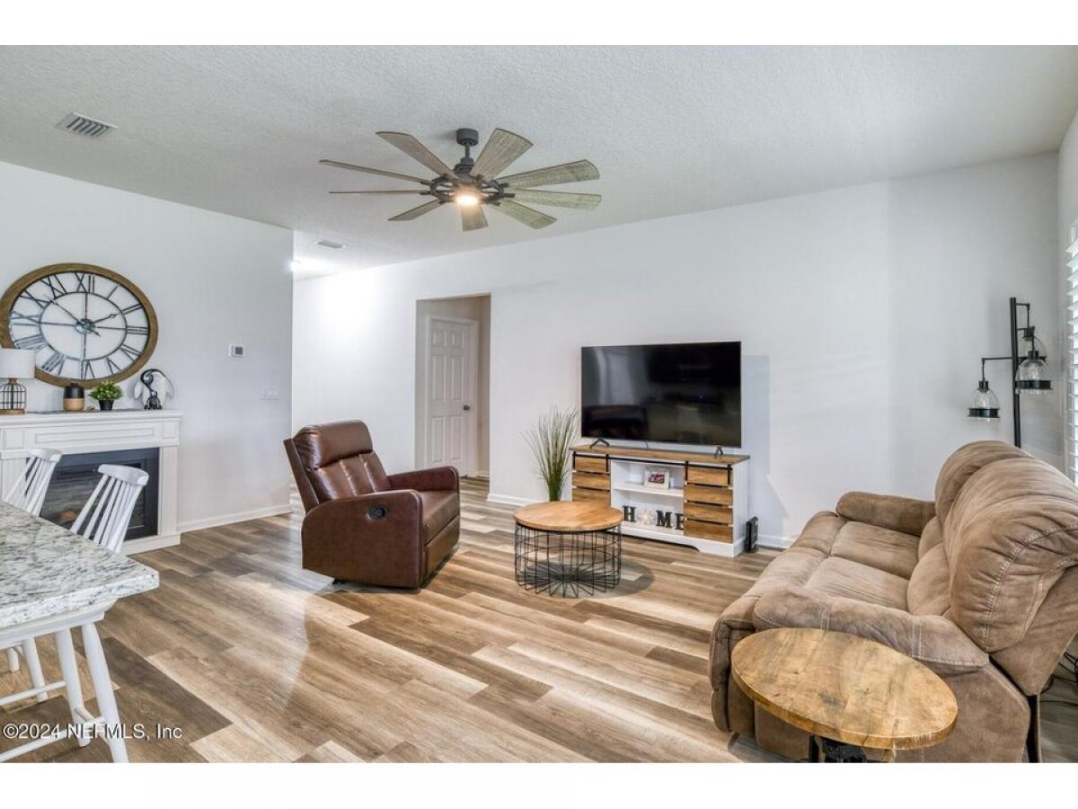 Gorgeous 4 bedroom 2 bath home in The Fairways on 1/2 acre corner lot! This like-new home features an open floor plan with 9 ft ceilings and plantation shutters throughout. The large Great room has luxury vinyl plank flooring, upgraded lighting fixtures and lots of natural light. The kitchen showcases nice cabinetry, an oversized island, stainless appliances and beautiful granite countertops. A split floor plan offers a spacious owner#039;s suite and the attached bath has dual vanities, separate water closet, granite countertops and a big walk-in closet. The 3 additional bedrooms share a spacious hall bath with two sinks and tub/shower combo. Inside laundry room includes the washer and dryer. The huge privacy fenced yard is awesome for backyard games, bar-b-ques and offers pets room to roam. Attached 2 car side entry garage, covered back lanai and wide driveway for extra parking. Located close to the Palatka Golf Course, Ravine Gardens and near to up and coming downtown Palatka.
