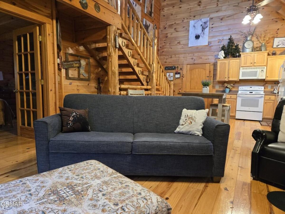 Check out this three level log home in a fantastic Resort Community in Pigeon Forge! Wonderful location--so close to shopping, restaurants, attractions and not too far from the Great Smoky Mountains National Park! This home is being sold fully furnished and ready to become a short-term investment rental or a great second home--a perfect get-a-way for your family! This home features a full finished basement with a spacious rec. room with pool table and more, a set of bunk beds tucked away in the corner and a full ensuite. The upper level is the loft bedroom with private bath. Roomy kitchen, living room and dining area and a full ensuite on the main floor. Step out to a private covered porch complete with hot tub and chairs for relaxing. Property is priced below appraisal that was completed November 2024.