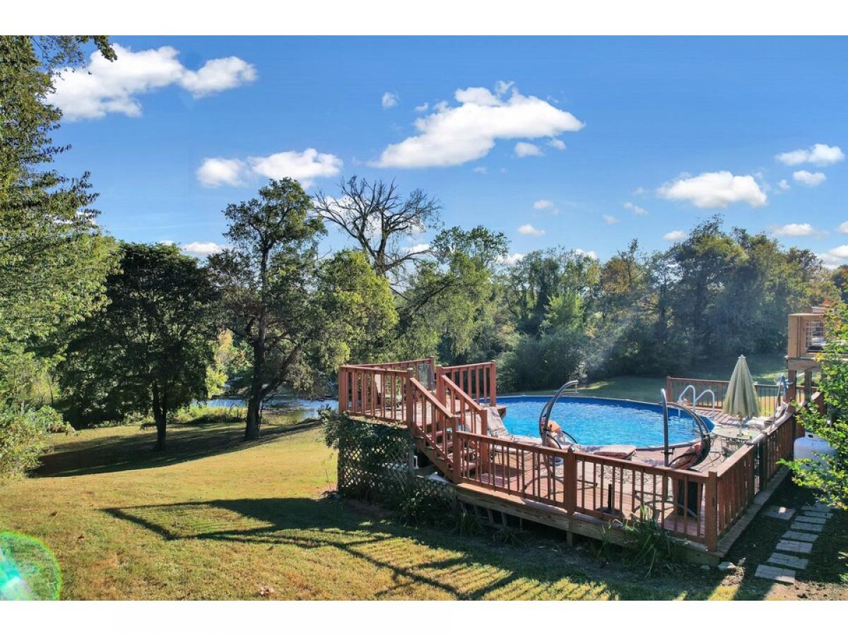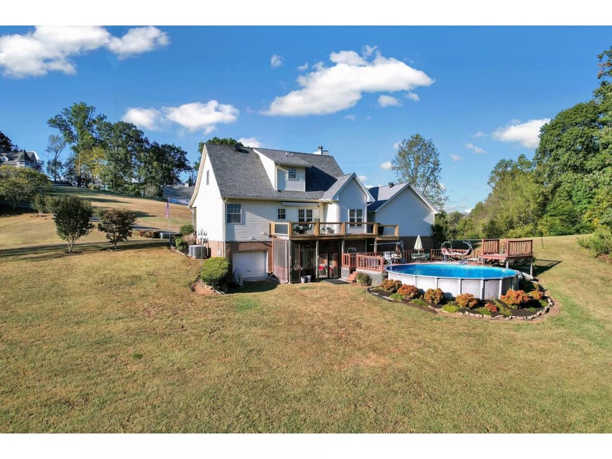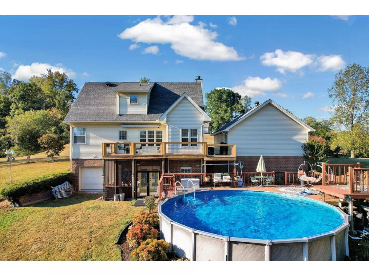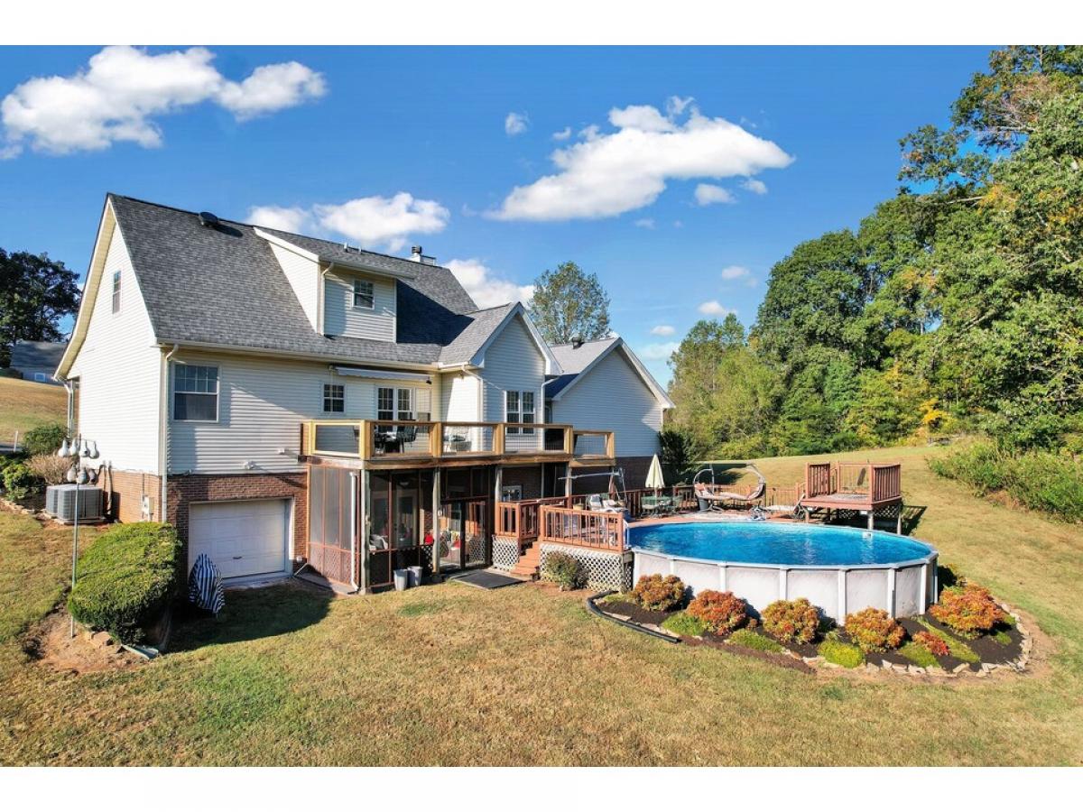 Experience luxury living in this stunning 3-level haven spanning 3,026 sq ft, adorned with crown molding and hardwood floors throughout. The entrance welcomes you with soaring ceilings and an open layout, featuring a cozy living room with gas fireplace, a light-filled kitchen with granite countertops and brand-new Samsung appliances. The master suite offers a personal sanctuary with a spacious bath and walk-in shower. Upstairs, find 2 oversized bedrooms and a full bath with jetted tub. Downstairs, discover a private office, full bath, safe room, and a sprawling great room with gas fireplace. Step outside to a screened porch and a 28-foot round pool. Additional features include ample storage, a pantry, laundry room, central vacuum, motorcycle garage, and a detached garage with a breezeway. Situated on 5 acres in a gated community, enjoy river access and breathtaking views. Conveniently located near McGhee Tyson airport and the Great Smoky Mountains, this home offers endless adventures.