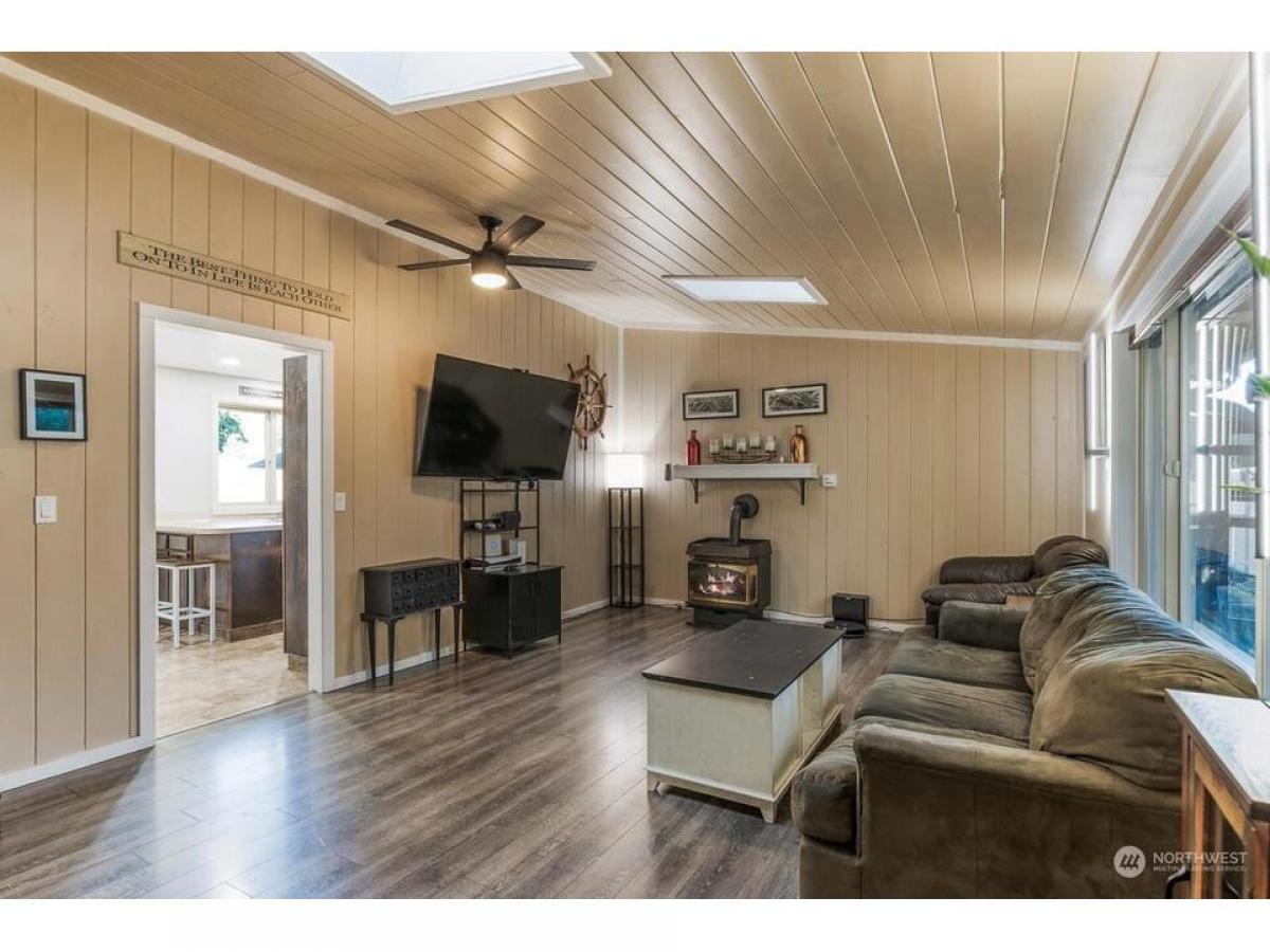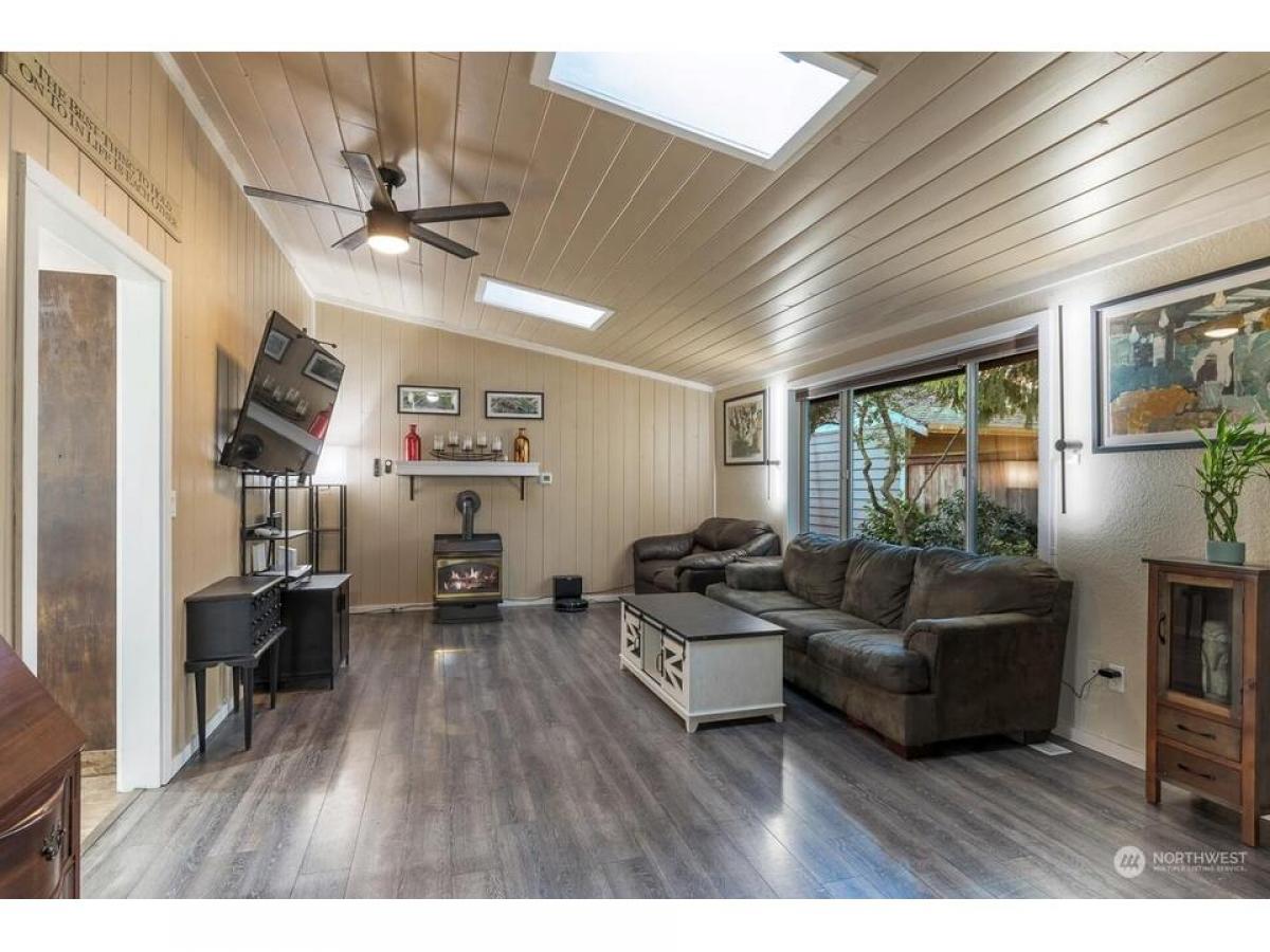 Welcome to your private sanctuary, where peace quiet await. Charming 3-bedroom, 1 *-bath home offers thoughtful blend of comfort function. Kitchen features an eating space, pantry some newer appliances, complemented by a reverse osmosis water filtration system. Vaulted living room adorned w/painted shiplap walls ceilings wraps you in warmth, while skylights, overhead fan cozy fireplace create bright inviting retreat. Outside a fully fenced yard, shed, greenhouse delightful outdoor living spaces for relaxing or entertaining. Oversized 2-car garage w/shop space, carport ample on-property parking allows room for all. Nestled in prime location minutes from downtown, ferries, schools, parks stores-giving privacy convenience.