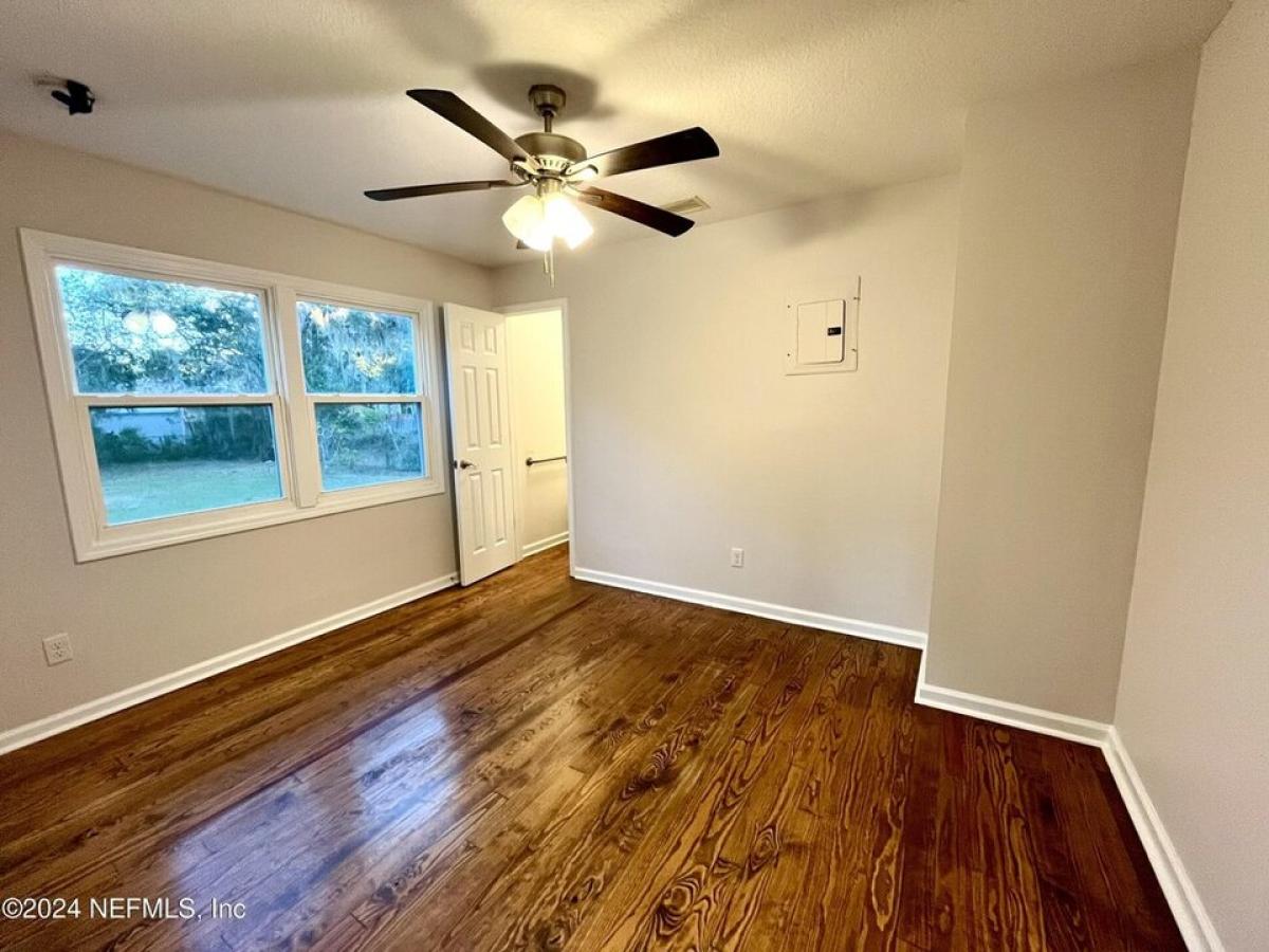 BACK ON THE MARKET! Buyers financing fell through. Cozy three-bedroom, one-and-a-half-bathroom residence situated in the heart of the city. Recent renovations include newly installed gas stove, windows, hardwood floors, a metal roof, updated plumbing and electrical systems. The interior and exterior electric panels were replaced in January 2025. The property is fully fenced and boasts a spacious backyard. The residence is conveniently located within a short drive to St. Augustine and its renowned beaches. Virtual staging is used on some photos.