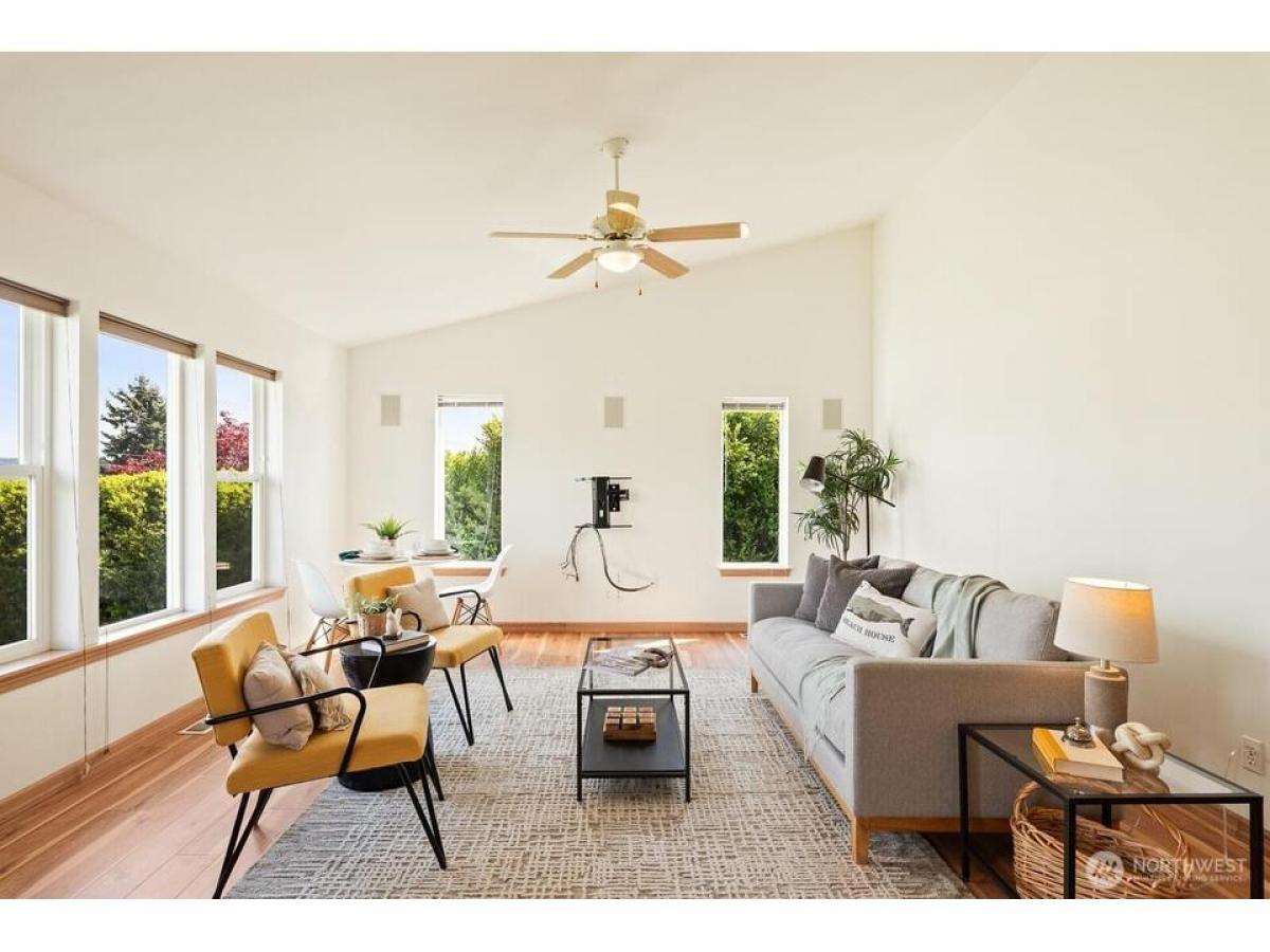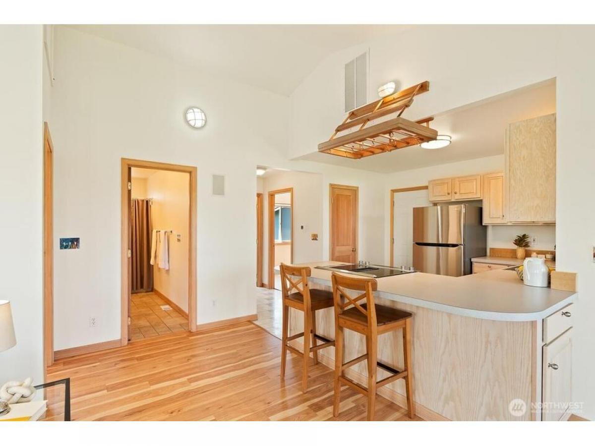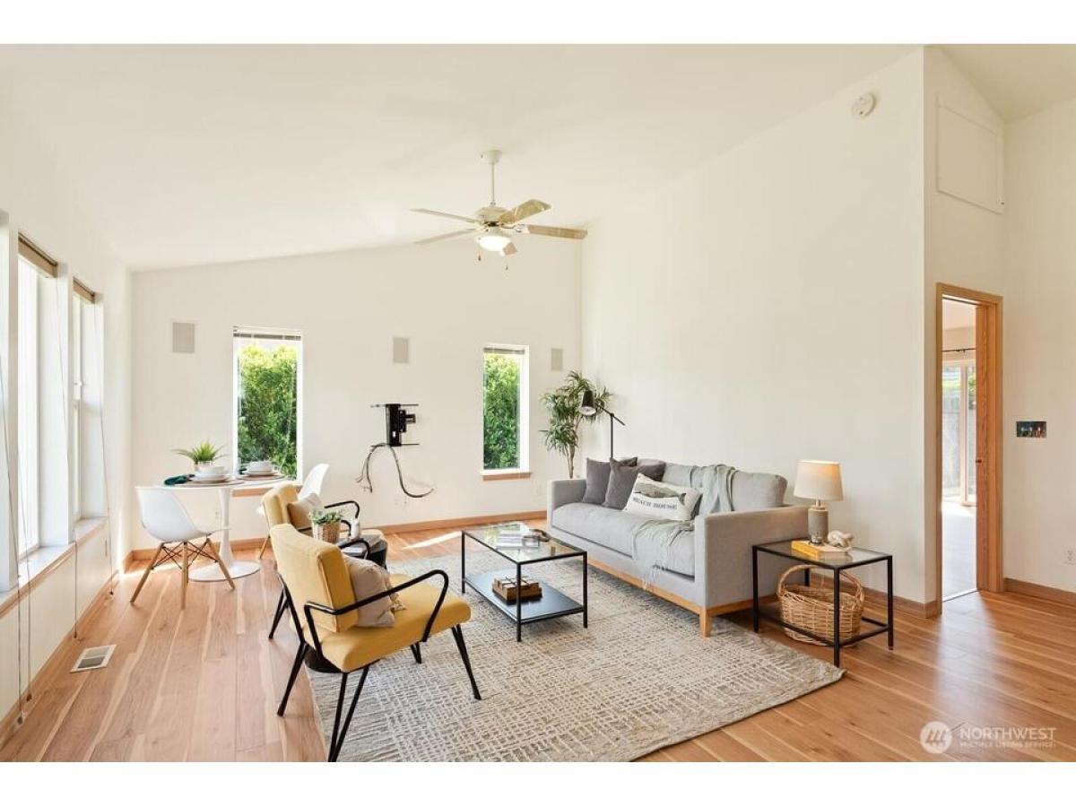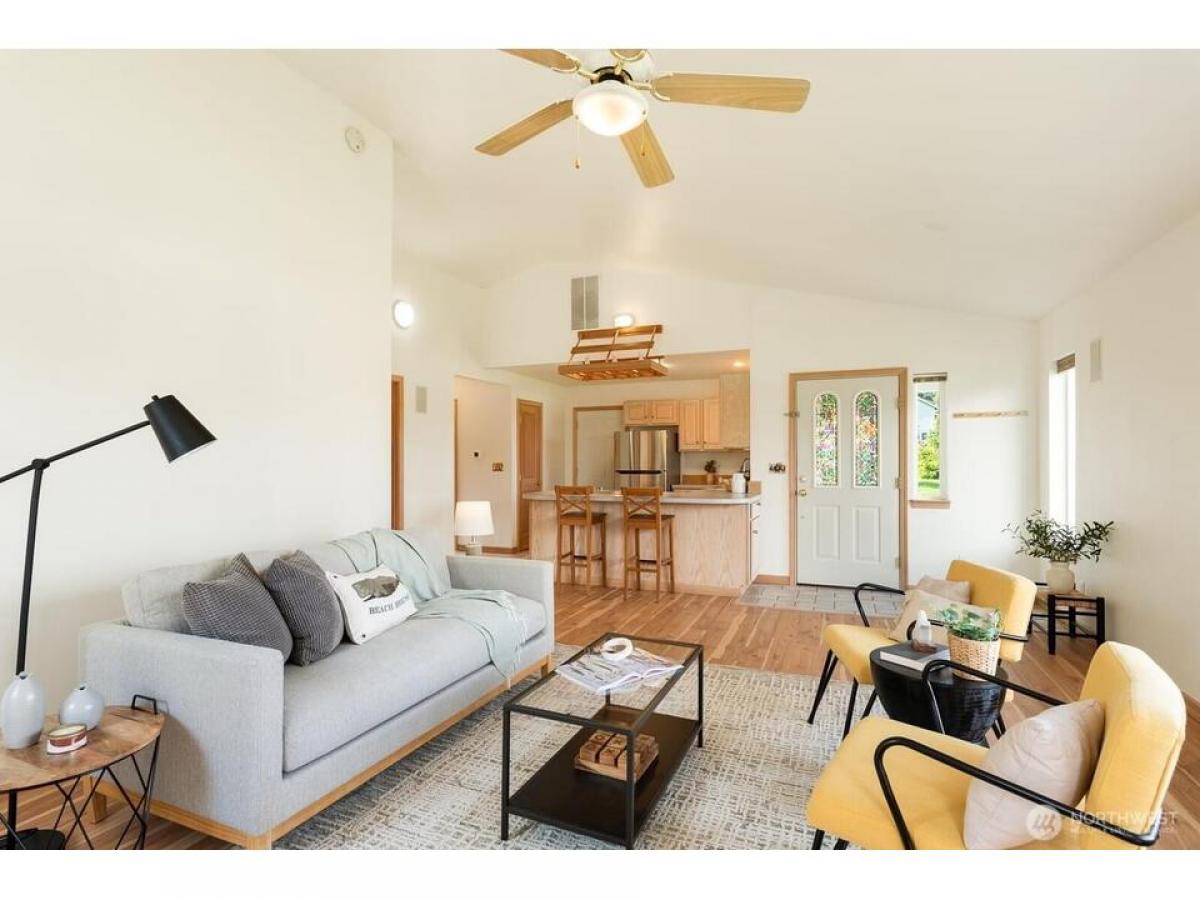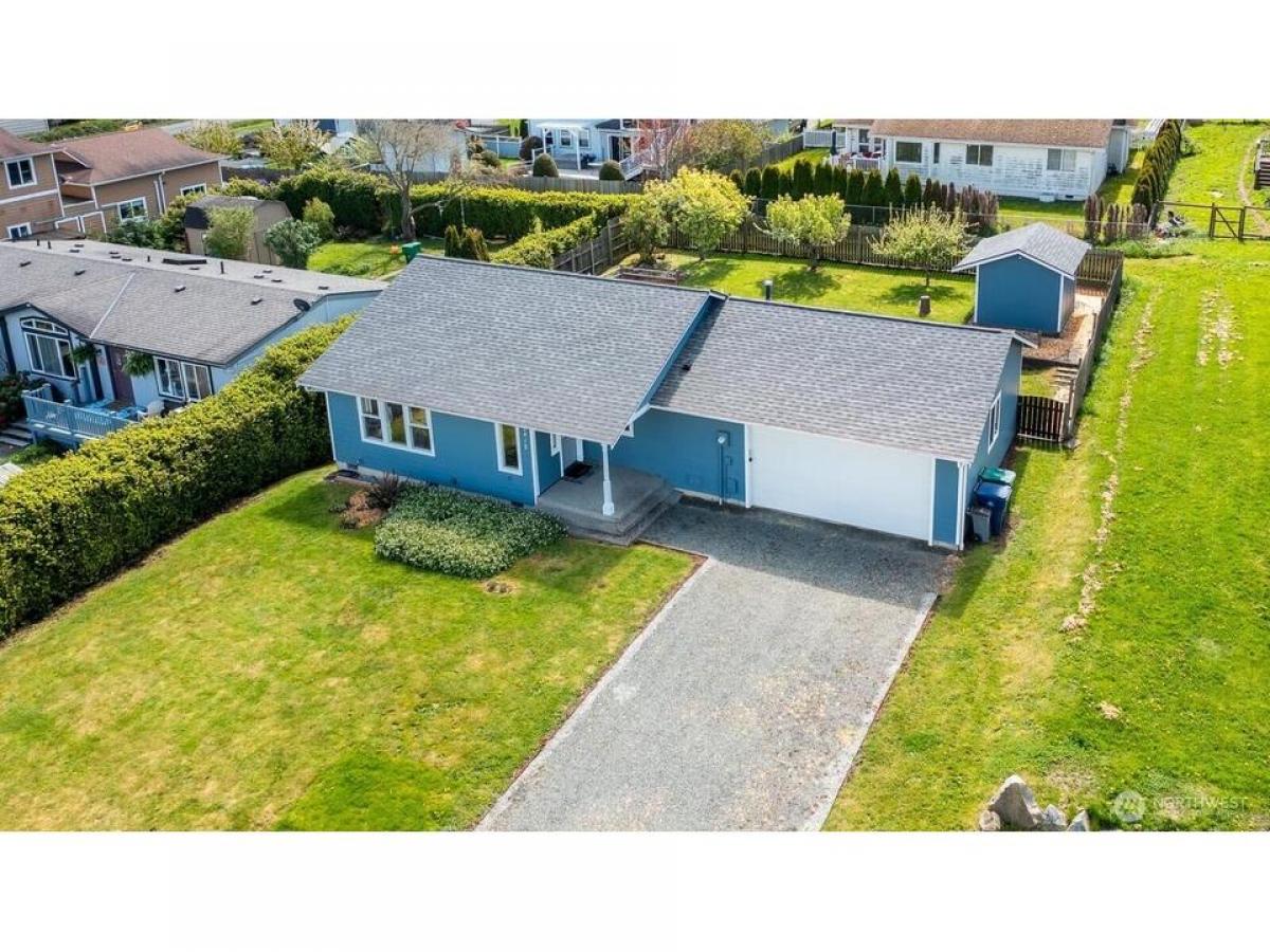 Darling one-level home with fresh, cozy vibe meticulously cared for feels practically brand new. Welcomed in w/vaulted-ceiling living room with surround sound, opens to generous kitchen featuring eat-at peninsula, pantry nearly all newer appliances. Enjoy 2 bedrooms, one is a spacious main with slider to back deck plus full bath addtl 1/2 bath conveniently located in garage. Laundry room with newer washer/dryer offers access to backyard abundant storage throughout. Oversized 2car garage with workbench, attic storage extra panel for generator. Outside a large deck extends living space fully fenced yard includes fruit trees w/versatile shed for tools or hobbies newer roof. Just minutes from Community Forestlands, town ferries.