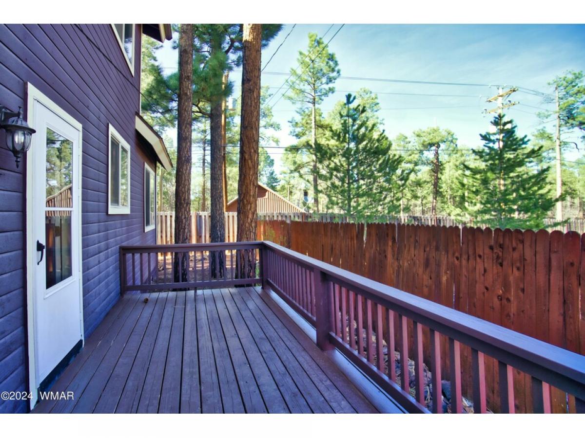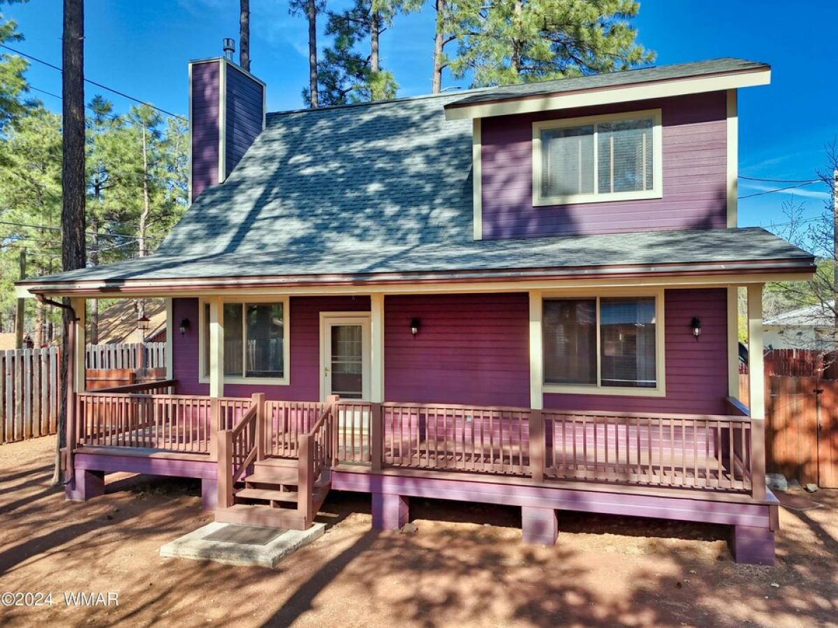 Charming home located in the heart of Pinetop. NO HOA! Tucked away in the tall pines with an expansive covered front deck to enjoy the sounds of the whispering pines. Just a short distance to National Forest. Offers new carpet, new A/C and High Efficiency heater, new interior paint, new shower enclosure in Master Suite, open concept floor plan with large loft which could be used for addiotnal sleeping or an office/den. Exterior decks just painted, privacy fencing & more! Would make a great getaway or short term rental...