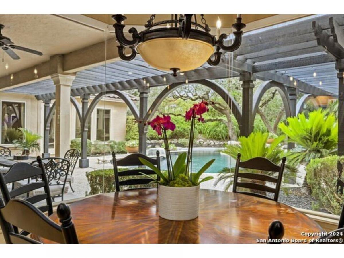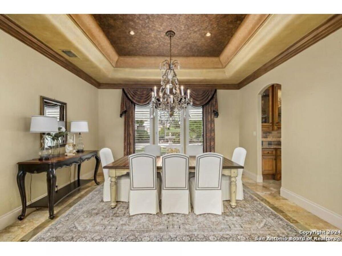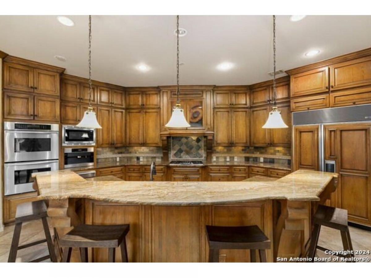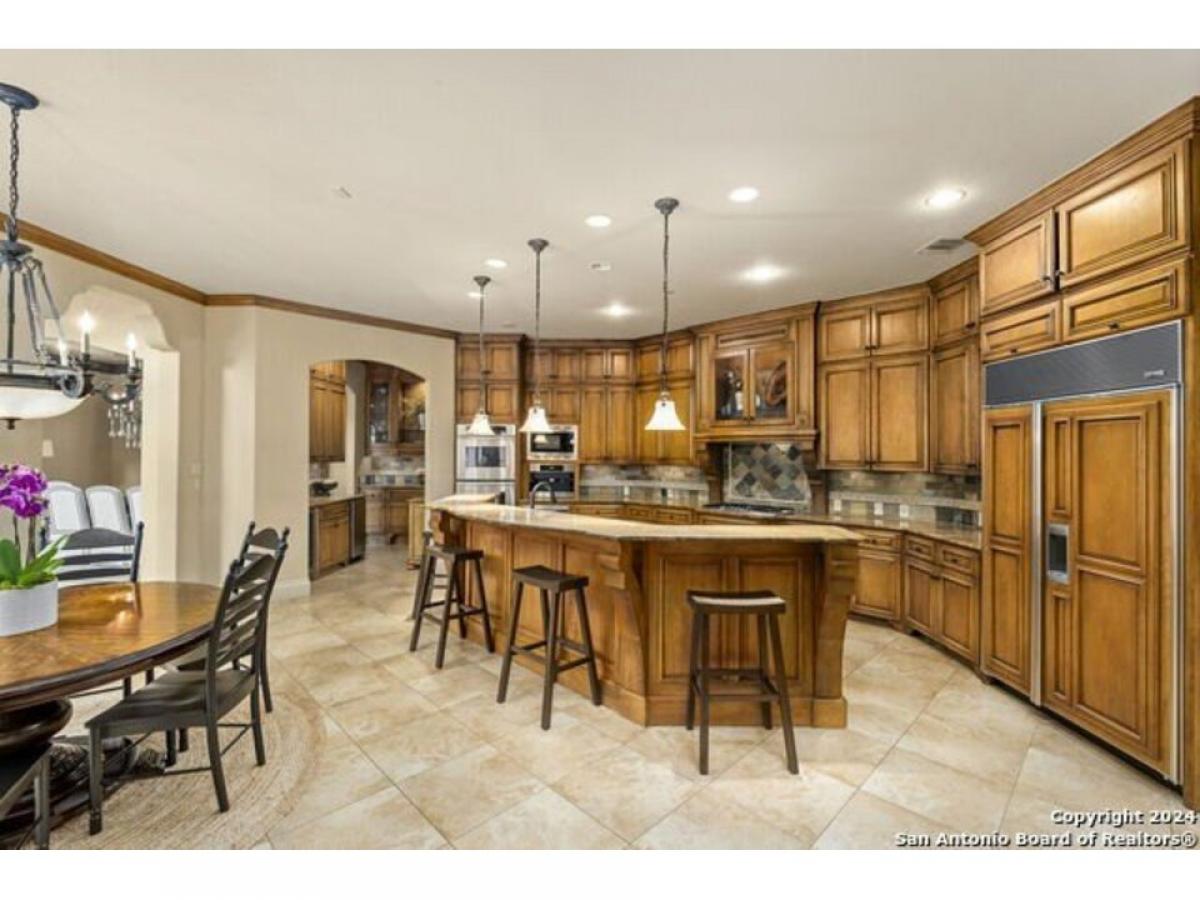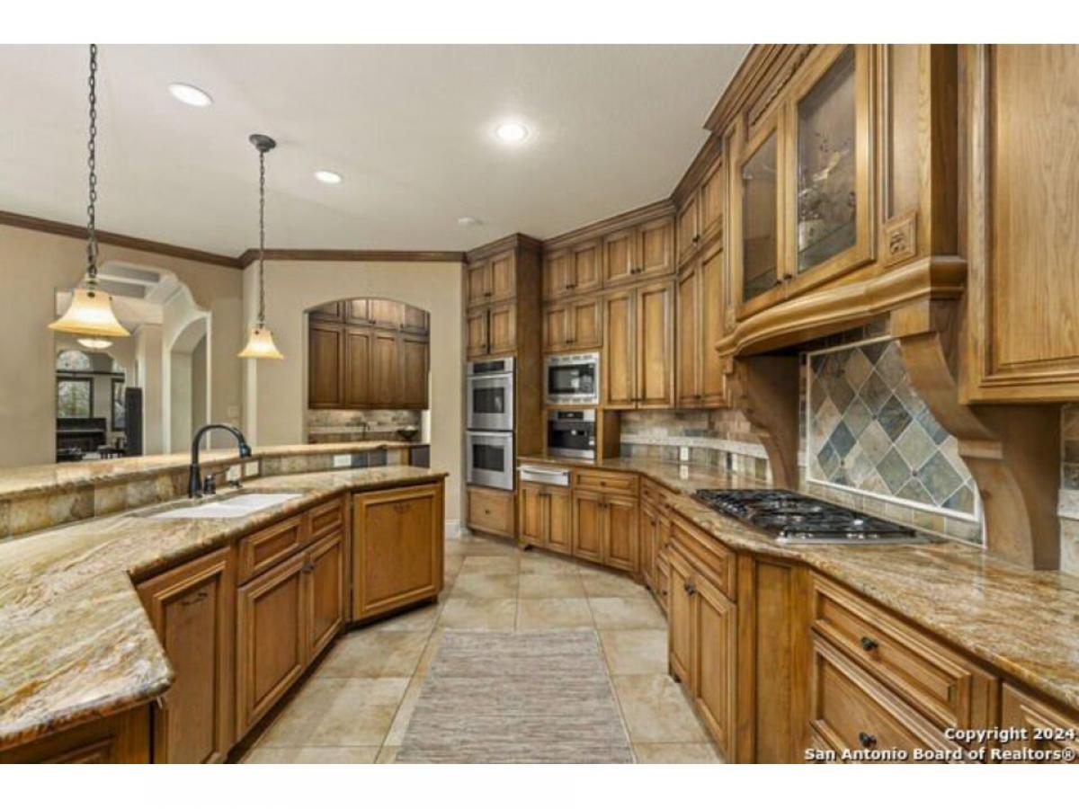 Located in Bentley Manor, this Spanish Revival residence, masterfully balances open, inviting spaces with private retreats for solitude. Through beautiful double-arched wooden doors, you#039;re welcomed into a home filled with natural light, expansive windows, and elegant travertine flooring beneath high ceilings. The living room showcases custom built-ins and an intricate beamed ceiling that adds depth and architectural interest. The gourmet kitchen is outfitted with Thermador, Sub-Zero, Bosch, and Miele appliances, a large walk-in pantry, and a butler#039;s pantry complete with a wine fridge, sink, and Hoshizaki ice maker. Located on the main floor, the primary suite is thoughtfully designed with two walk-in closets, an en suite bath featuring dual toilets and a bidet, along with a flexible adjoining room. A convenient secondary bedroom with an en suite bath is also situated on the main level. Upstairs, three additional bedrooms, each with en suite baths, accompany a game room that opens to a balcony overlooking the tranquil grounds. Outdoors, a large covered patio with outdoor fireplace and grill overlook your Keith Zars-designed pool and spa, private putting green, and lush landscaping, creating an ideal sanctuary. Landscape lighting adds to the tranquility of the setting, perfect for evening relaxation. Additional features include a three-car garage and gated driveway.