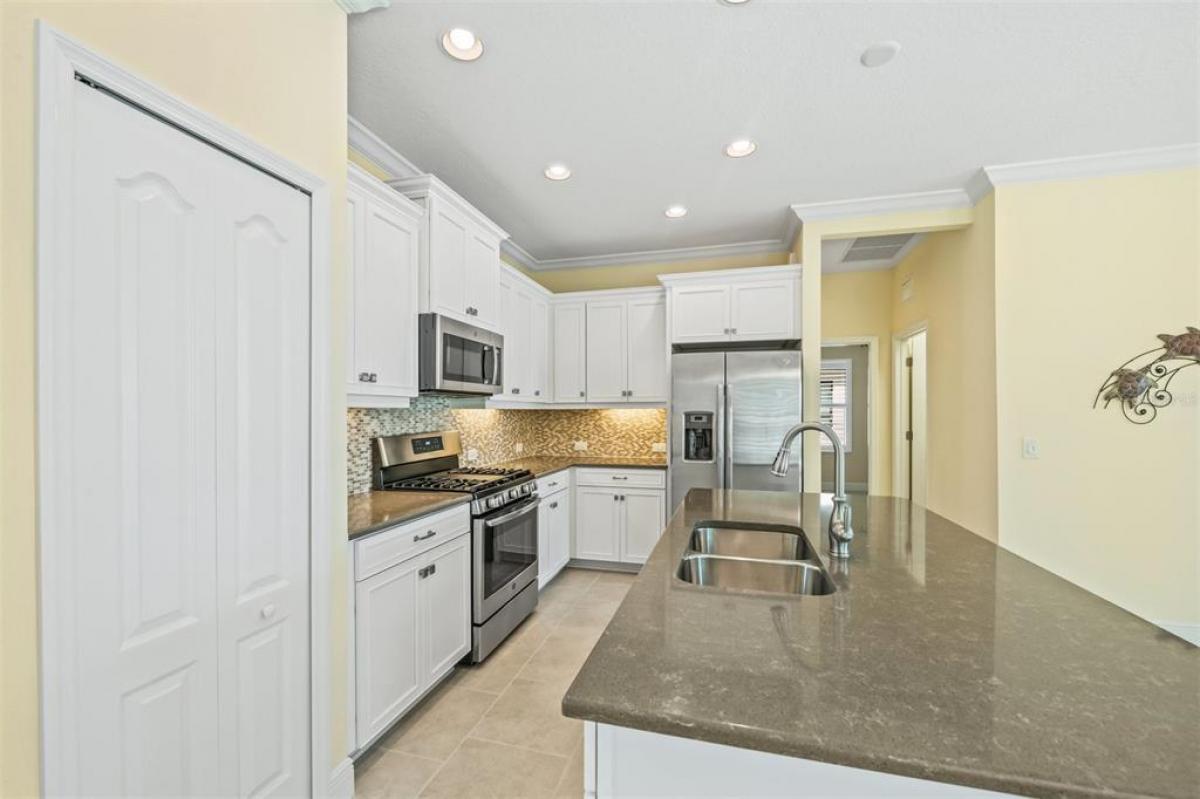 This stunning water view home in the highly desirable Neal Community of Milano is a must see! The Anthem II is a well thought out floorplan consisting of 3 bedrooms, 2 full bathrooms and a den. The kitchen is highlighted by solid wood cabinets with crown molding, under cabinet lighting, tastefully tiled backsplash, stainless steel appliances, quartz countertops, closet pantry and a large island. The adjoining dining area and great room are perfect for entertaining or for quiet evenings at home. The den features recessed lights and large windows for a nice bright space that can be used for a variety of purposes. The owners suite showcases a large walk-in closet, ensuite bathroom with large glass enclosed walk-in shower and dual vanities. The two guest bedrooms share a guest bath which features a tub/shower combo. The extended covered lanai with long lake views is the perfect spot to enjoy your morning coffee or to wind down your day with an adult libation. Additional features of this home include; garage extension of 4 feet making it 24 feet deep, IMPACT RESISTANT WINDOWS AND DOORS, additional insulation in the walls, and crown molding in most rooms. Milano has low HOA fees and no CDD yet has an abundance of amenities for its residents to enjoy including; pickleball, bocce, pool, hot tub, dog park and a pool-side fire pit. Milano is centrally located with easy access to I-75, downtown Venice, the beautiful gulf beaches, the Atlanta Braves spring training facility and many dining and shopping options.
