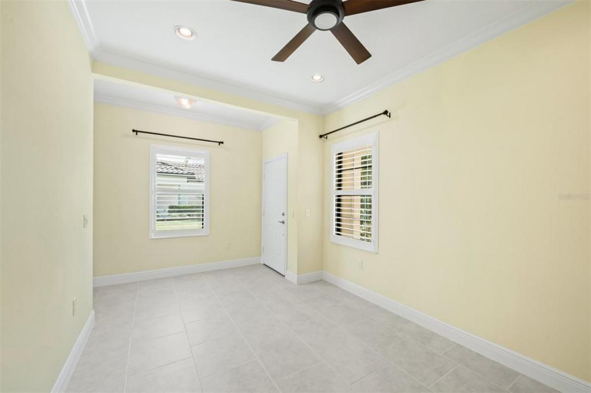 Under contract-accepting backup offers. Short Sale. This stunning water view home in the highly desirable Neal Community of Milano is a must see! The Anthem II is a well thought out floorplan consisting of 3 bedrooms, 2 full bathrooms and a den. The kitchen is highlighted by solid wood cabinets with crown molding, under cabinet lighting, tastefully tiled backsplash, stainless steel appliances, quartz countertops, closet pantry and a large island. The adjoining dining area and great room are perfect for entertaining or for quiet evenings at home. The den features recessed lights and large windows for a nice bright space that can be used for a variety of purposes. The owners suite showcases a large walk-in closet, ensuite bathroom with large glass enclosed walk-in shower and dual vanities. The two guest bedrooms share a guest bath which features a tub/shower combo. The extended covered lanai with long lake views is the perfect spot to enjoy your morning coffee or to wind down your day with an adult libation. Additional features of this home include; garage extension of 4 feet making it 24 feet deep, IMPACT RESISTANT WINDOWS AND DOORS, additional insulation in the walls, and crown molding in most rooms. Milano has low HOA fees and no CDD yet has an abundance of amenities for its residents to enjoy including; pickleball, bocce, pool, hot tub, dog park and a pool-side fire pit. Milano is centrally located with easy access to I-75, downtown Venice, the beautiful gulf beaches, the Atlanta Braves spring training facility and many dining and shopping options.