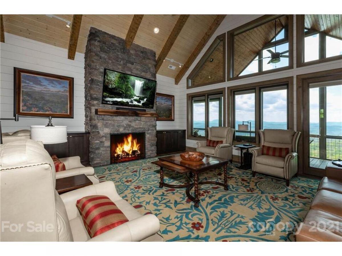 A Mountain Home Masterpiece offers sweeping layered views of the Blue Ridge Mountains! Upon entry, you see the high vaulted ceiling, hardwood floors, and breathtaking views. The great room features a two-story rock fireplace, open to the foyer, dining area, and incredible kitchen. This stunning home includes Custom Cherry wood cabinets with leaded glass, Macaubas Gold Quartzite countertops, and a full slab island with seating for four Thermador Professional S/S appliances. Expansive vaulted ceiling master suite with bath, dual showers, double hammered copper drop-in sinks with Venetian bronze accessories. This home is move-in ready. The lower level consists of a rec room which opens out to additional entertainment space on the back deck, an ensuite bedroom, two additional guest bedrooms, and baths. Truly a unique property for your mountain hideaway.