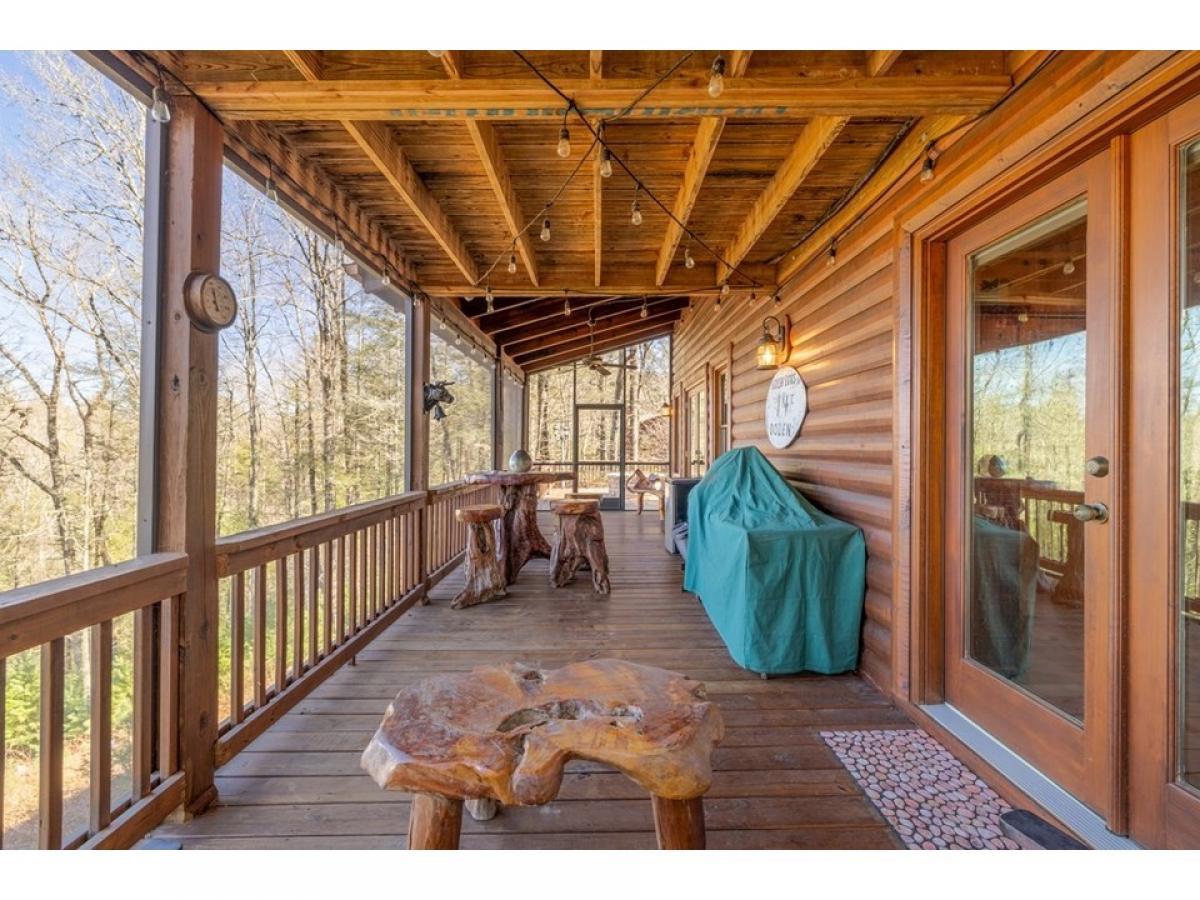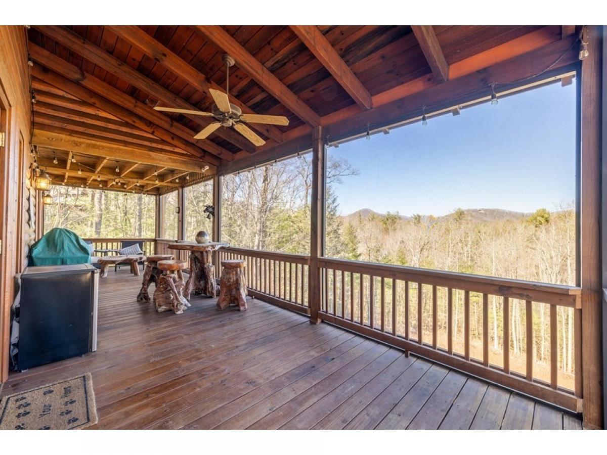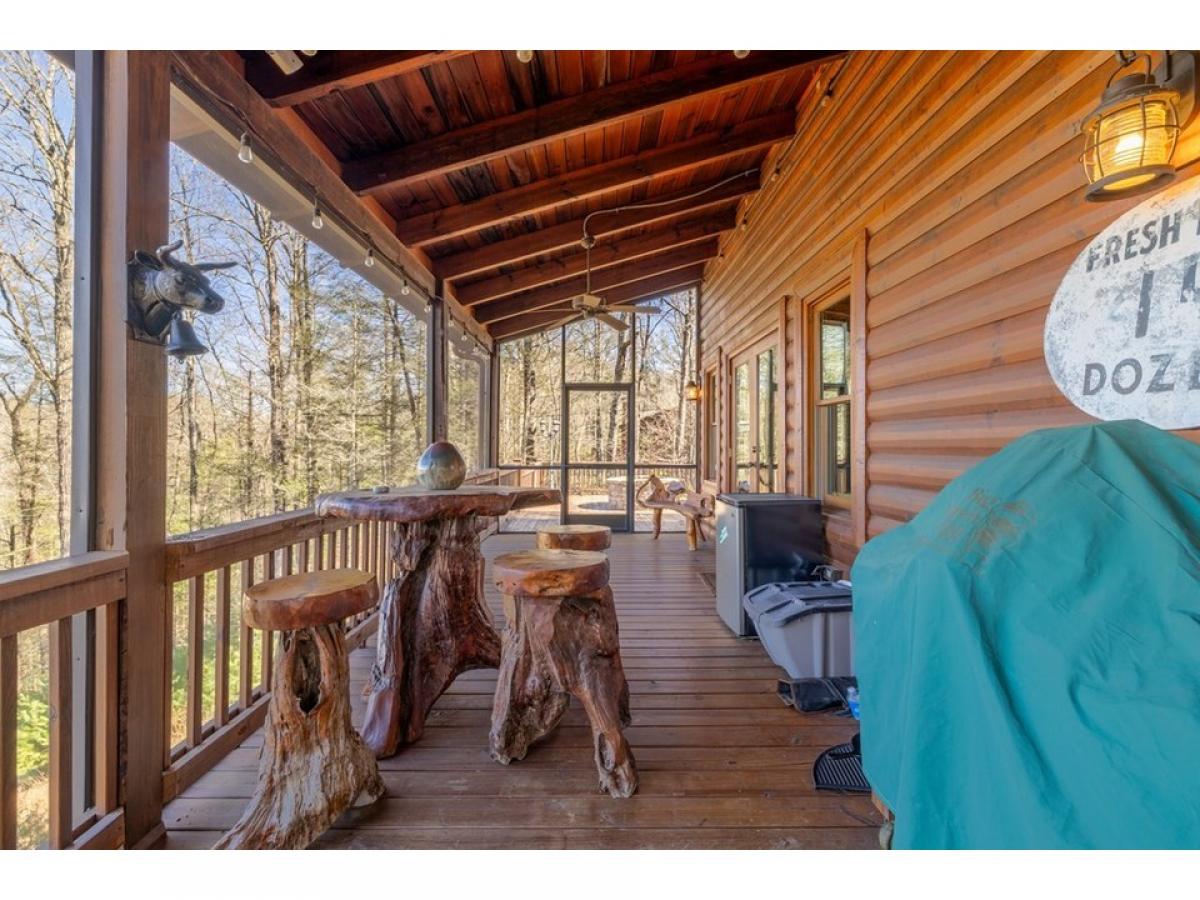 Tucked Away minutes from downtown Blue Ridge ..Quaint Mountain Majestic View Cabin...whimsical and welcoming 3+bedroom/3bath rustic charmer exudes fun & relaxation! Situated on private wooded tract overlooking relaxing mountain views, large covered porch, party deck with stone firepit, storage building, massive stone fireplace enriches great room & dining room, kitchen boasts plentiful cabinets + bar area, loft is great for reading nook or home office, spacious bedrooms & baths, large closets throughout, full finished terrace level has cozy guest quarters along with den/rec room, tastefully furnished, plentiful parking area & easy access, meticulously maintained, close to creeks & hiking trails, conveniently located in upscale, rustic community with paved roads. Great for full time living or that much needed getaway...perfect vacation rental potential, turn key and ready for move in!