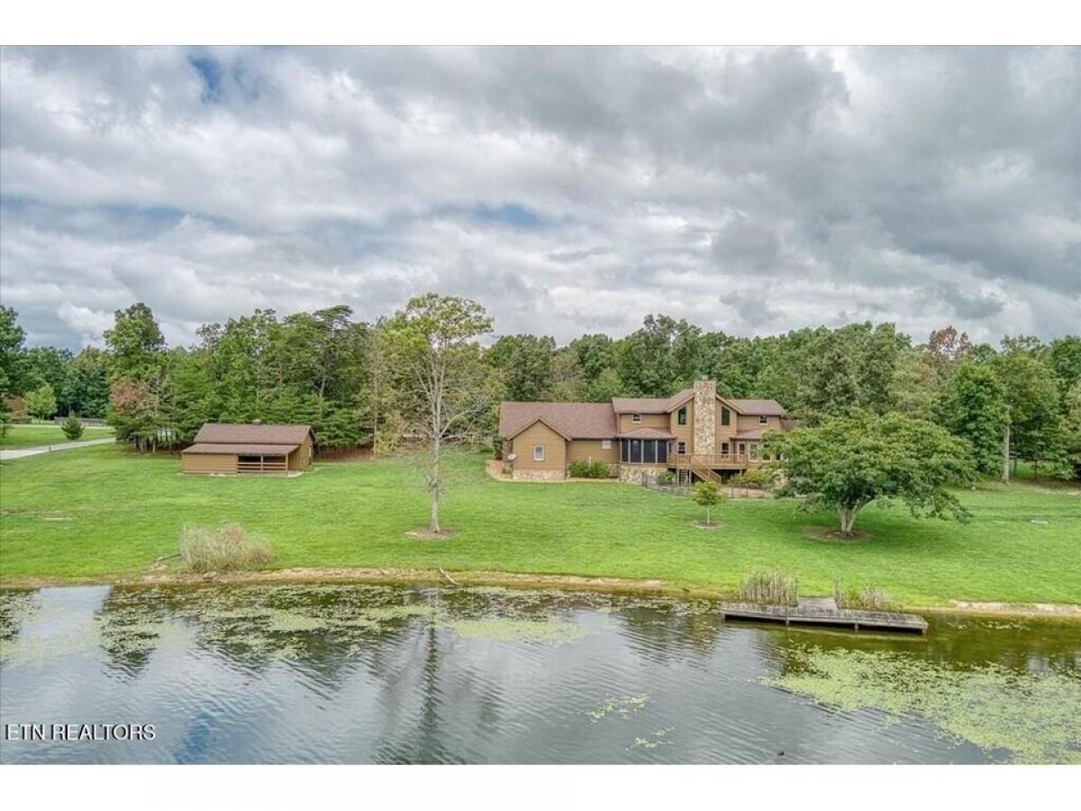 LAKE VIEW FOR DAYS FROM THIS STATELY LOG HOME AND SHOP ON 1.95 ACRE LOT! This 3 bedroom 3.5 bath home includes a generous 2 car garage with extra room for storage, a detached utility shop/garage, a year round sunroom and a screened in porch each with a fantastic view of the lake! The primary en-suite is on the main floor with 2 spacious bedrooms and sitting room upstairs. Enter to a welcoming great room with a soaring ceiling and stone fireplace, next to the grand kitchen with custom hickory cabinets and oversized island. Other features include new HVAC, recent exterior stain, private dock, fiber optic internet, oak floors , safe room, and lawn irrigation system . Long Branch Lakes is a gated equestrian community located near Fall Creek Falls State Park. Amenities include swimming and picnic facilities, a general store, tennis courts and of course fishing or kayaking on one of the many lakes. Come experience the tranquil lifestyle this home offers today! Buyers to verify information.