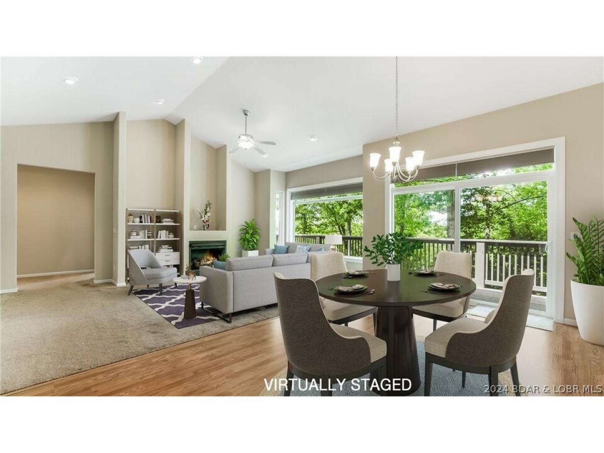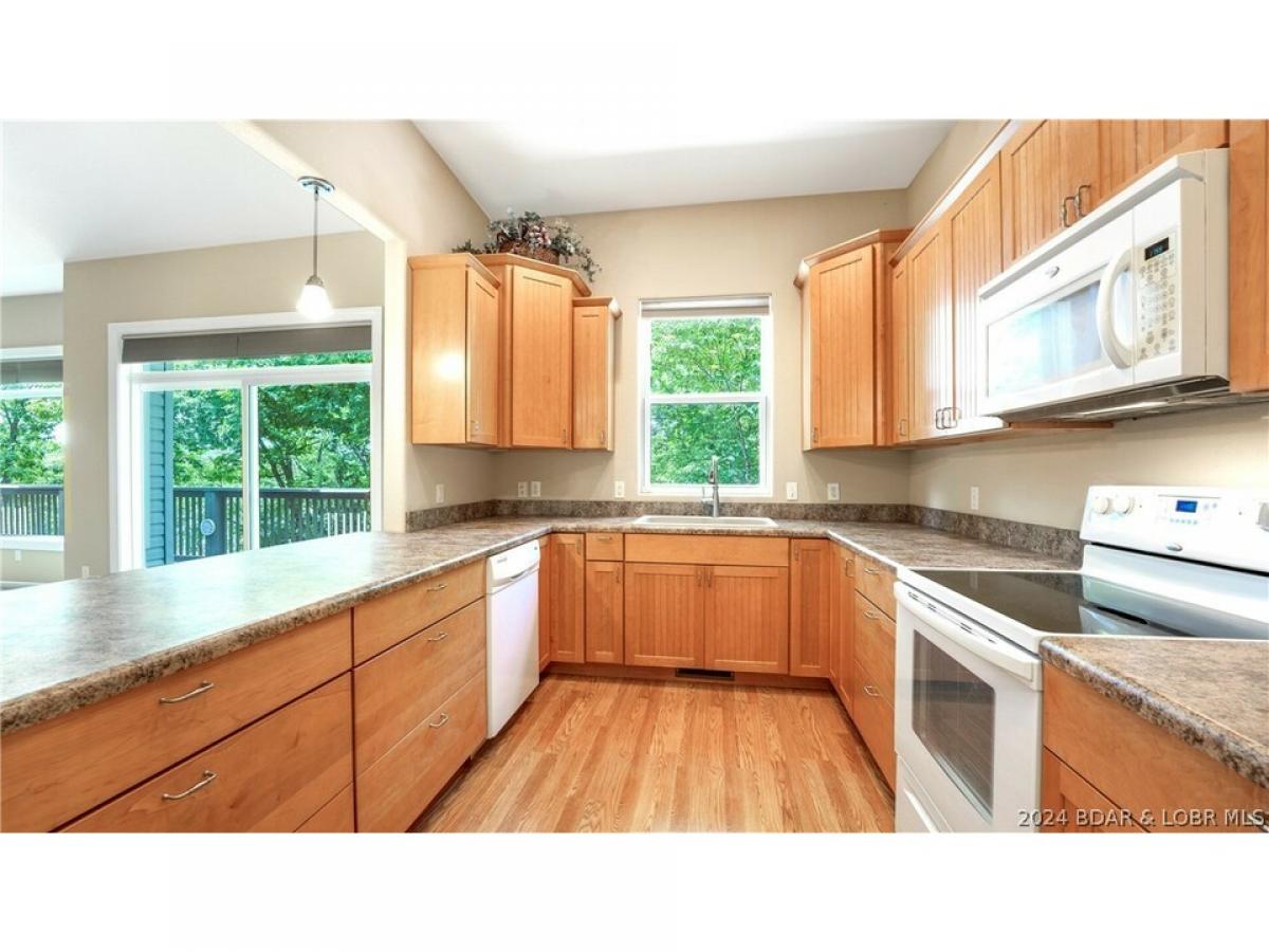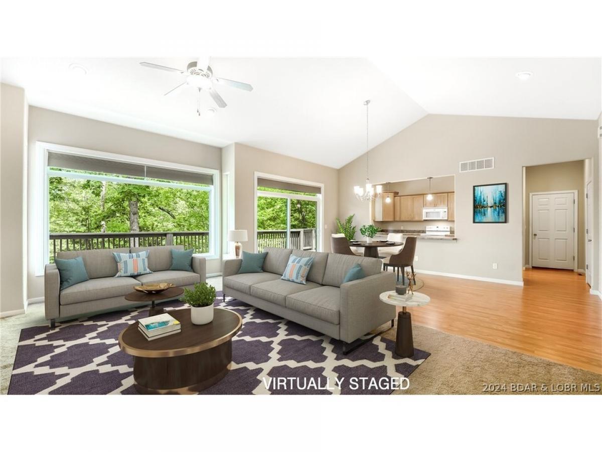 IMPRESSIVE 2006 Custom Built Home that offers a SIMPLE and AFFORDABLE LAKE LIFE-STYLE! Mature trees and larger lot creates a park like setting bringing beauty and privacy. This Ranch style home with true main level living! Grand living room boasts of vaulted ceilings and is open to dining and kitchen areas. Exceptional outdoor space as the deck spans the length of the home. Lakeview can be opened wider with tree trimming. Generous mastersuite with private bath, dual vanity, walk-in shower, huge walk-in closet. 2 Guest bedrooms including one with a pocket door that could be used as an office. Full sized laundry room also on the main level. Endless opportunities in the lower level which is a walk-out style with patio door that opens to a huge deck featuring more Lakeview's. Plumbing is set for an extra bathroom. Ready for a boat ride or swim? Take your golf cart or car to the community dock, 10 x 30 Sip & PWC Slip are included! Great location in Linn Creek's Cove off the 31MM, close to numerous waterfront restaurant's. This one-owner home is truly special and pride of ownership shows!
