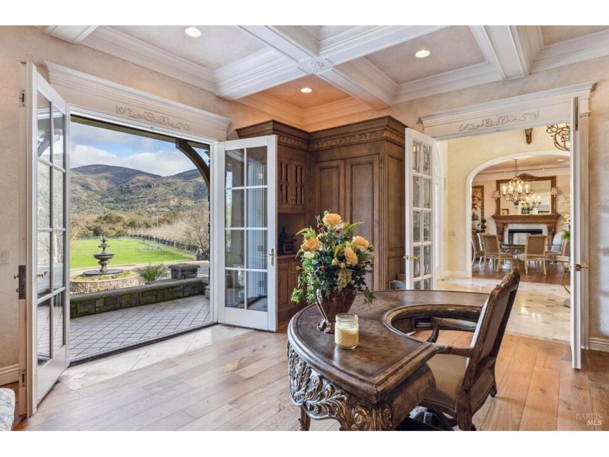 Owner May Carry to Qualified Buyers. Indulge in the quintessential Napa Valley lifestyle with this extraordinary 21-acre estate nestled in the serene hills of Napa#039;s East side. Originally crafted as an equestrian haven, this property offers the potential for transformation into a prestigious winery and vineyard. With 8+/- plantable acres, and boasting two wells, it features a sprawling 42,000 sq. ft. equestrian pavilion complete with two apartments offering picturesque balcony vistas, ten stalls, tack and grooming quarters. Additionally, there#039;s a vet clinic, breeding barn, feed storage, and a shop with convenient roll-up doors. The magnificent centerpiece is the bespoke 6,000 sq. ft. main residence, showcasing three en suite bedrooms and two half baths. Meticulously designed with timeless elegance, it showcases handcrafted architectural accents throughout. The expansive chef#039;s kitchen boasts dual islands and is fully equipped for lavish entertaining. Flowing seamlessly into the family room and bar, French doors invite you to the poolside oasis, enveloped by a sprawling lawn shaded by majestic oaks. Completing the ensemble is a charming pool house with its own bath and kitchen facilities.