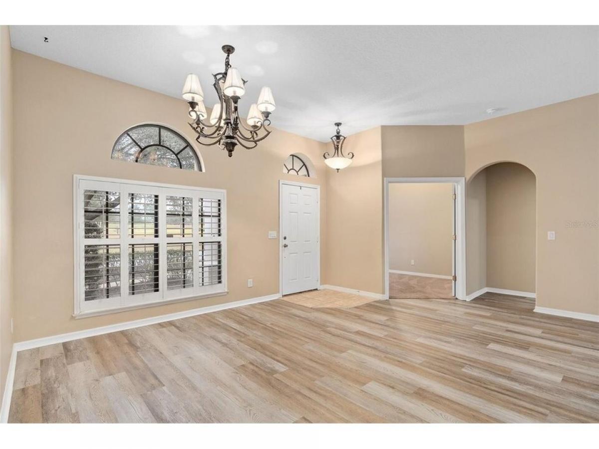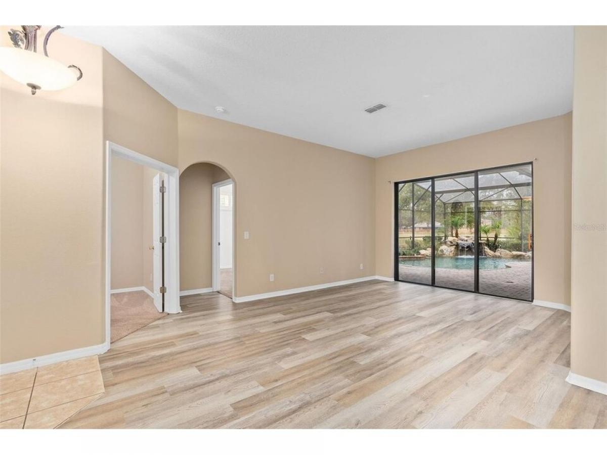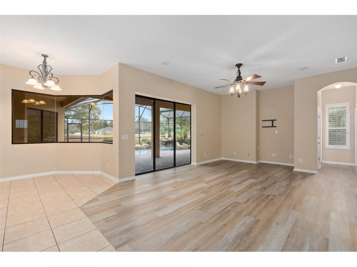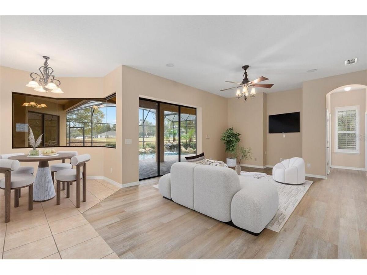 SEVERAL PHOTOS VIRSTUALLY STAGED to show the possibilities! Lovely 4 bedroom, 3 full bath home nestled in the beautiful golf community of Village At Black Bear, which wraps around popular Black Bear Golf Course (public course). A measure of privacy is afforded with this home as it occupies an end lot with views of the 11th hole, par 3 green and conservation! From the moment you enter, you are greeted with the open and warm living space with views from pocket slider to pool, waterfall, spa and conservation. Open floorplan flows effortlessly affording easy entertaining and family living. 3-way split is easy amp; private with interior boasting an abundance of natural light, high ceilings amp; Plantation Shutters (except for sliding doors). Primary Suite is generous size with slider opening to pool deck area! Spacious en suite is full of natural light and generous amount of closet space! Large Kitchen with eat-ing area opens to family room, which is quite the space! Breakfast bar can easily accommodate 6! 3-door pocket slider in Family room can open to allow flow of traffic while entertaining or just to enjoy the perfect day! Kitchen boasts an abundance of cabinetry including 42quot; upper wood cabinetry, pull out drawers in many of the lower cabinets, stainless appliances and large working island! Secondary bedrooms are ample in size with high ceilings and natural light! Full pool bath offers convenience from pool, spa and backyard! Home has benefitted by NEW POOL PUMP/HEATER (heated by propane tank) 2021, NEW HVAC 2023 and NEW ROOF 2024 and NEW EXTERIOR amp; INTERIOR PAINT 2024. Although you feel you are out in the country, you are close to so much! Within 5-20 minutes, you have grocery, shopping, entertainment, restaurants, hospital, Historic cities of Eustis, Mount Dora amp; Tavares. Within 30-1hr distance is Historic Sanford, Sanford-Orlando airport, Orlando International airport, Disney, theme parks amp; beaches. Toll expressway 429 is minutes away as is CR 44 and Hwy 441 which will convey you to all major hwys. Black Bear Golf Club not only offers a challenging golf game, but also a popular restaurant and membership opportunities for all ages! Don#039;t let this opportunity to make this home yours pass you by!