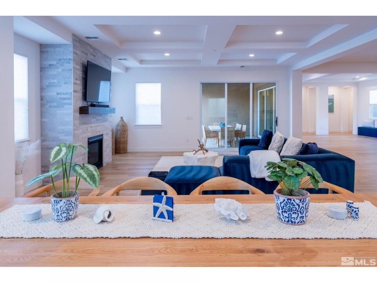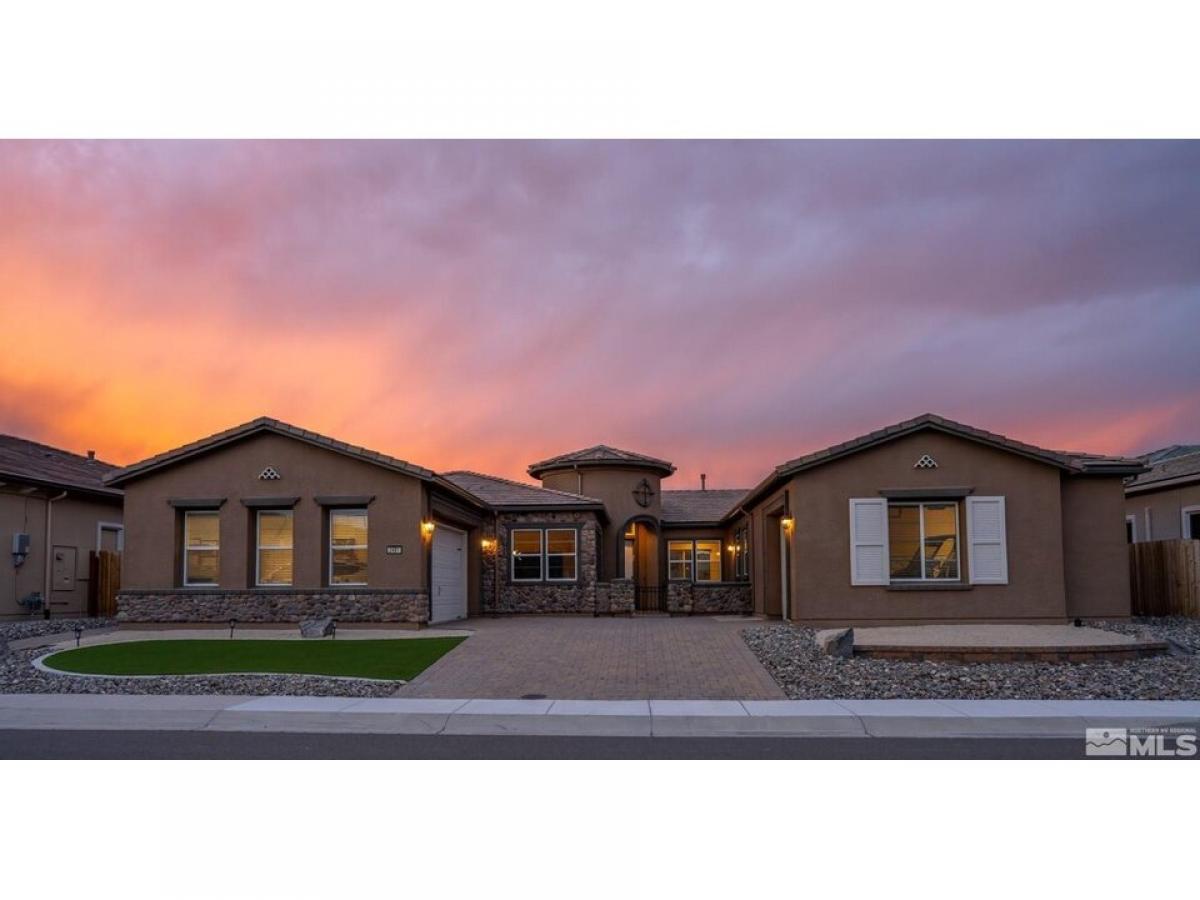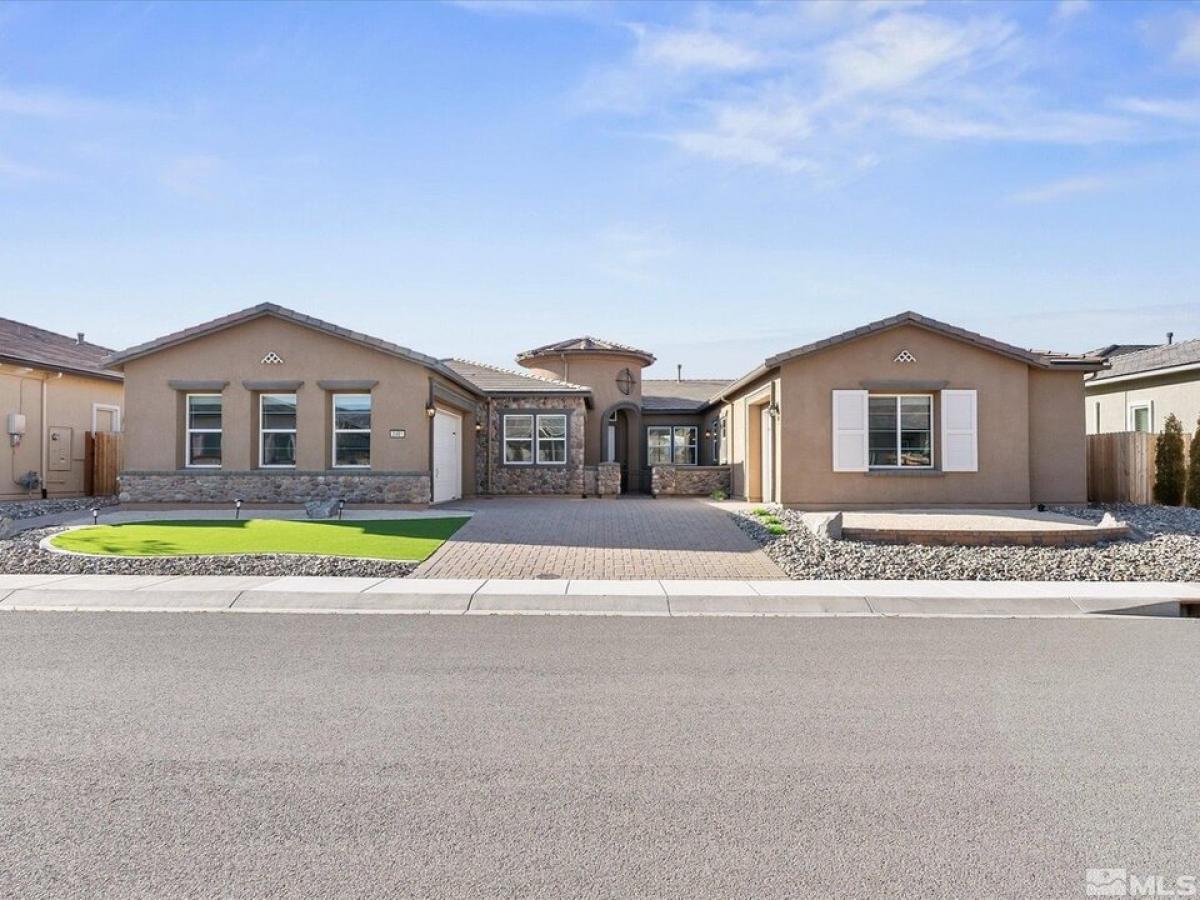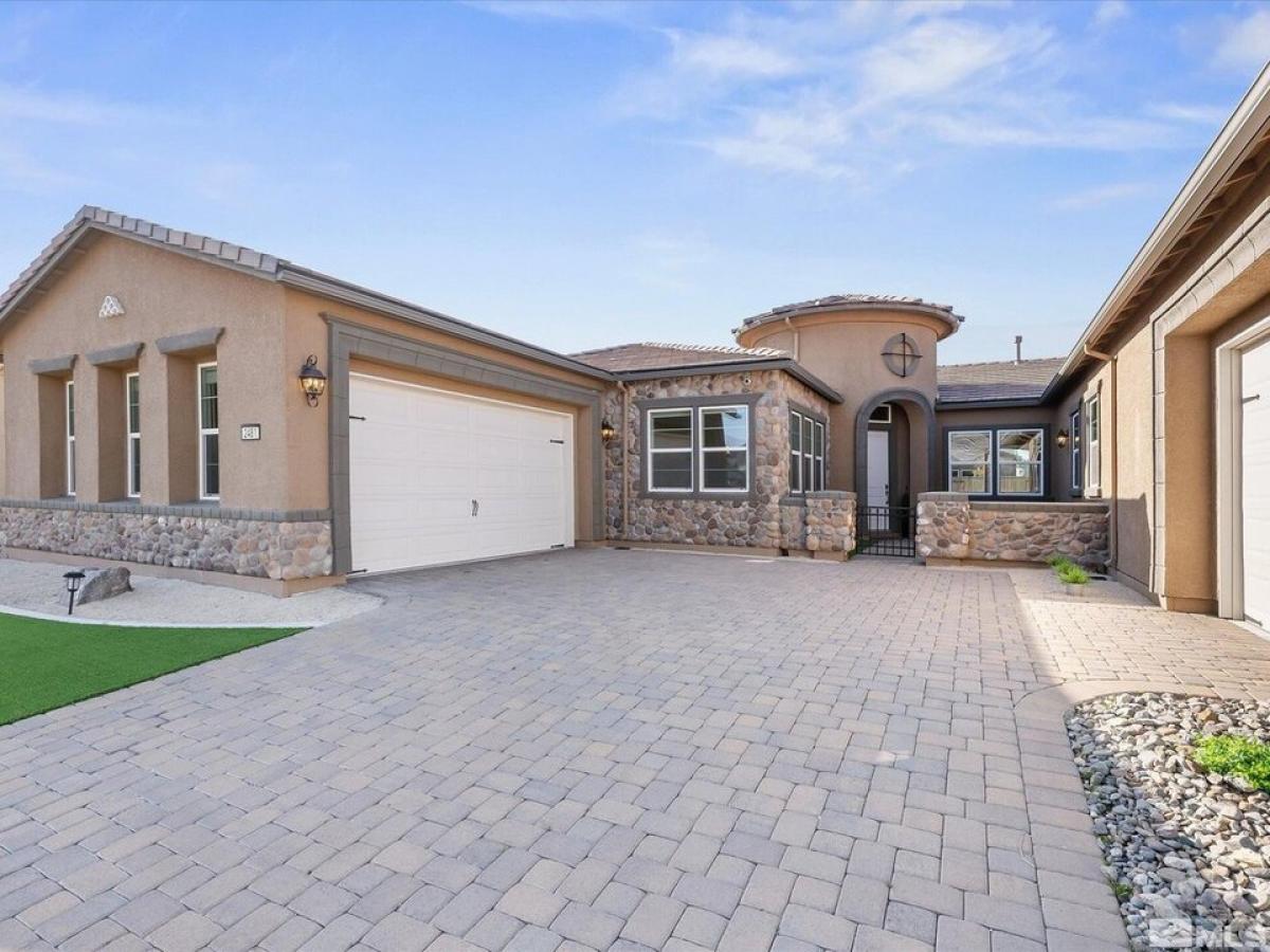Welcome to this stunning, modern, single-story home located in the highly sought-after, gated Sorrento Trail community at Bella Vista Ranch. Offering an open floor plan filled with luxurious upgrades. This is the largest floor plan in the community, featuring 4 bedrooms, 3.5 bathrooms, an office/flex room, and multiple seating areas, including a beautiful living room with a striking stacked-stone surround fireplace and coffered ceilings.